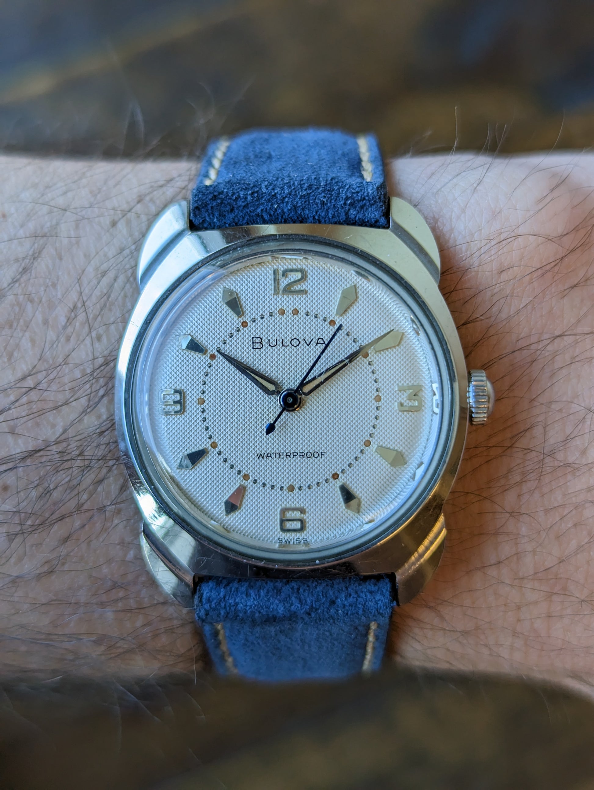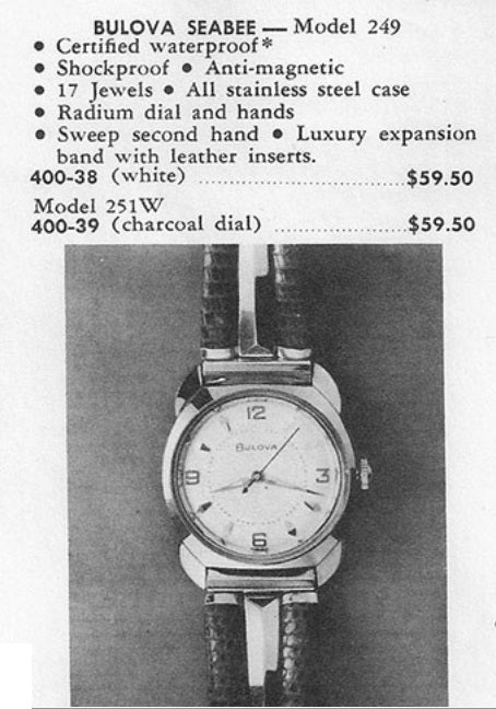 Its first endeaver in waterproof mechanical wristwatches, according to my understanding and research, was with their watertite model. The watertite production began in 1940 and was touted by Bulova for its robust build that was "sealed so that the least drop of water could not enter the case."