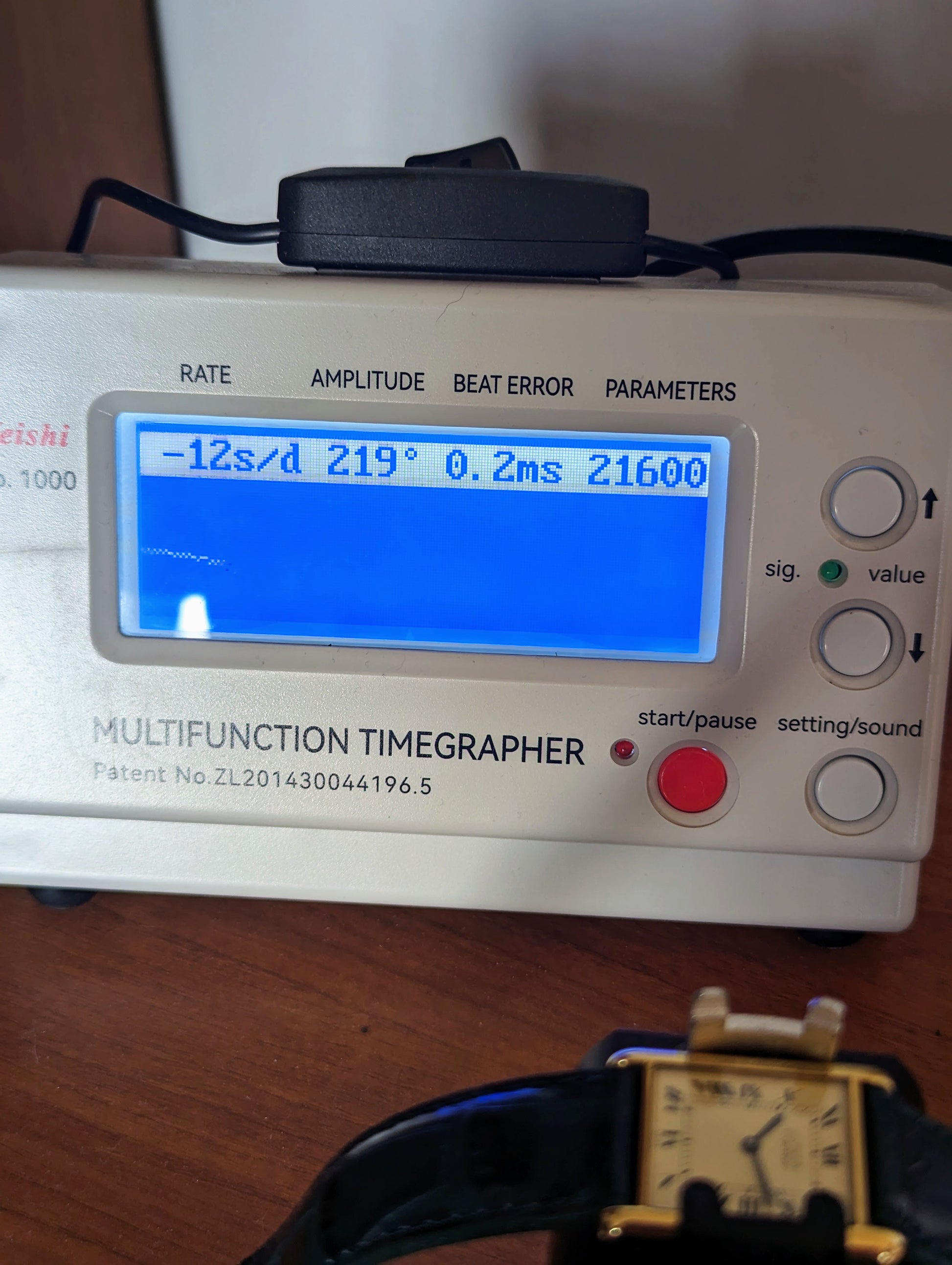MOVEMENT: Cartier marked ETA based manual movement. Service history unknown. The watch winds, sets, runs and is keeps decent time. The watch was placed on a timegrapher that which illustrated that it is losing approximately 12 seconds per day and has an amplitude of 219. The movement can be serviced for $325 + parts (if needed). Just let us know!