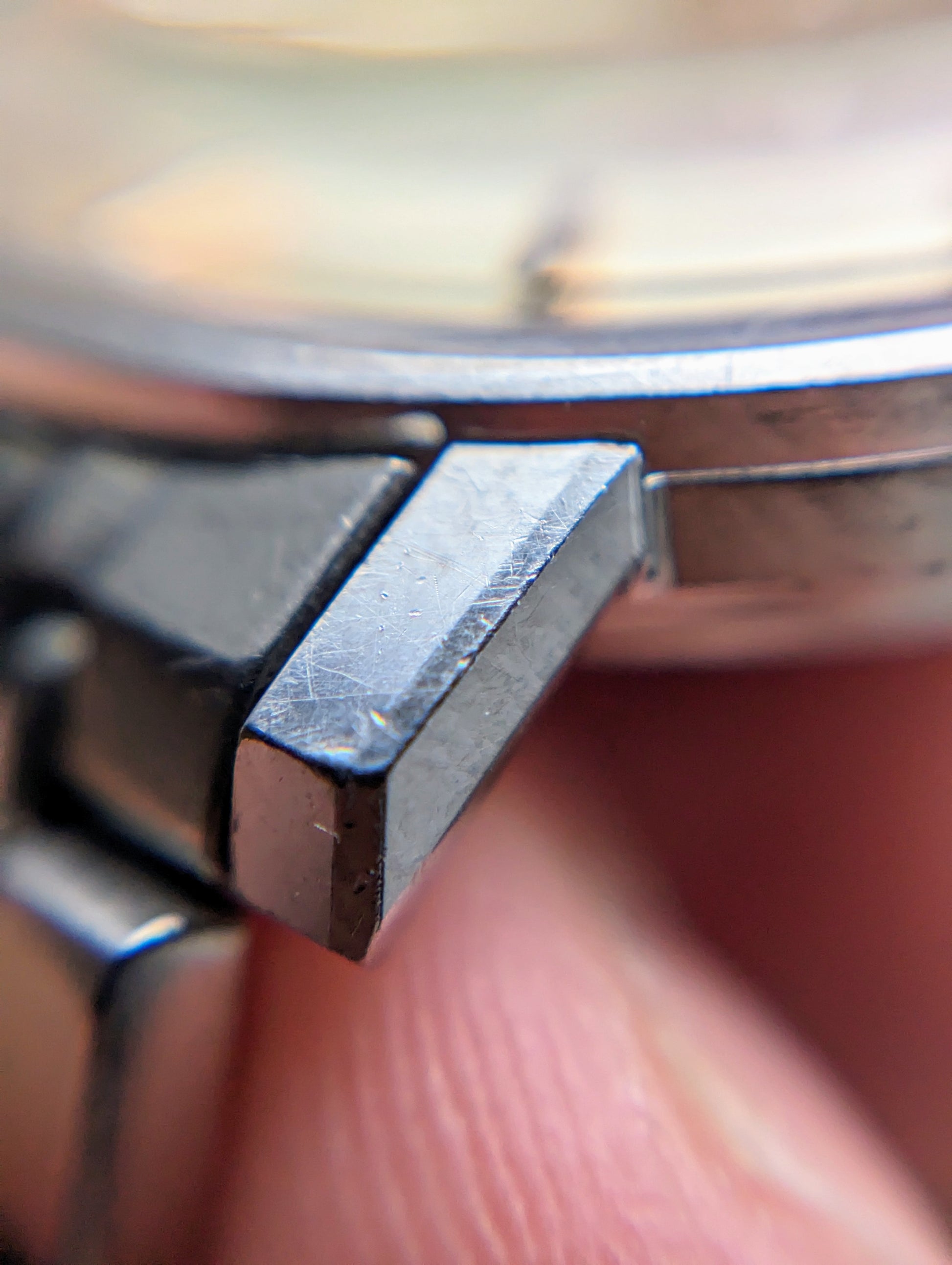 CASE: The 34mm stainless steel case is in great condition and remains unpolished. The case is very crisp and the factory original bevels on all four lugs remain. The case presents with light wear that is even throughout. The case is completed by the watches original crown. The crystal will be replaced during its service.