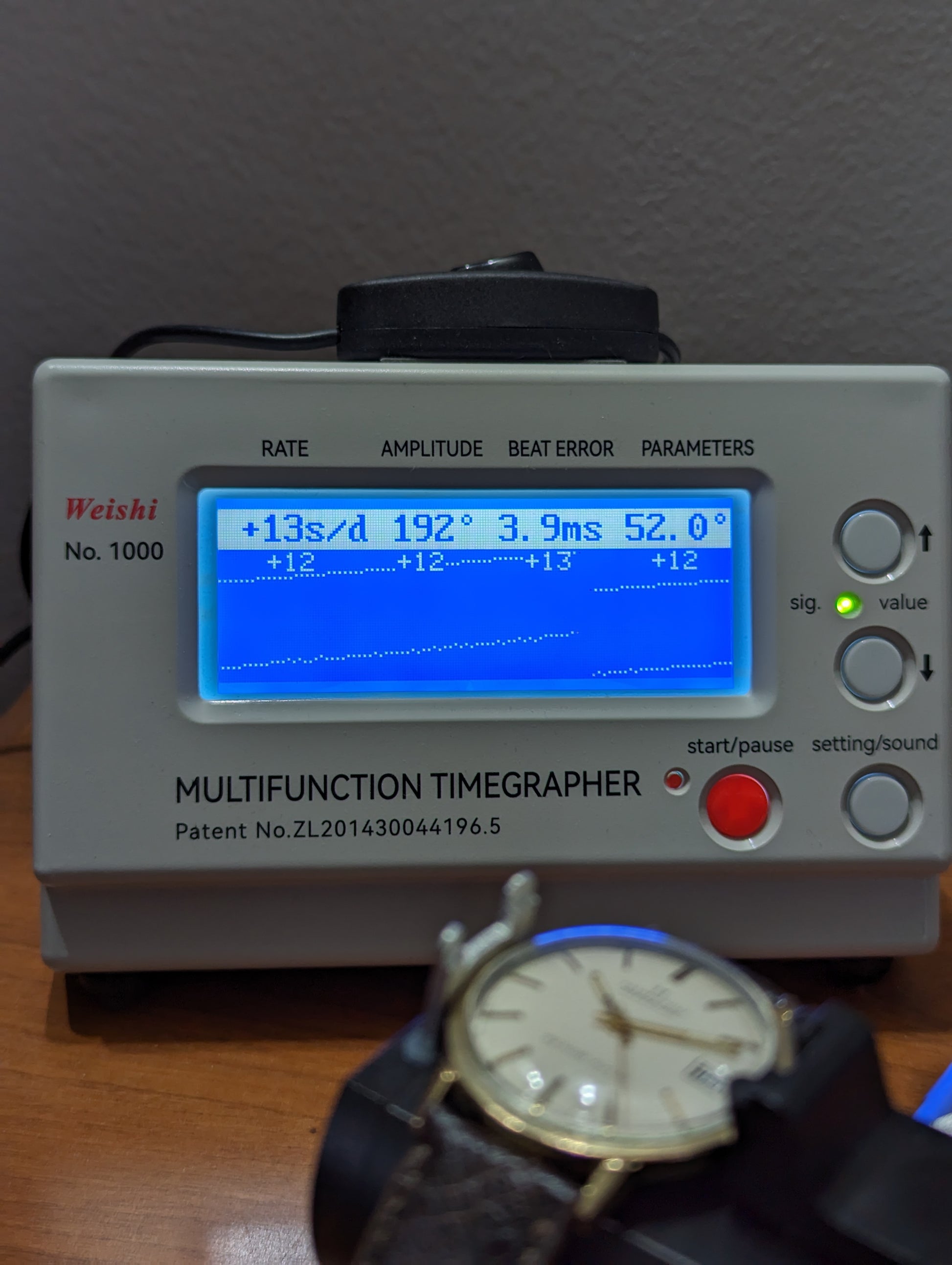 MOVEMENT: The automatic, self winding mechanical movement winds, sets, runs and keeps good time. The service history is unknown. The quickset date function operates normally. The watch was placed on a timegrapher which illustrated that the watch is gaining 13 seconds per day and has an amplitude of 192. The movement can be serviced for $325 + parts. If serviced the watch will come with a 1 year warranty.