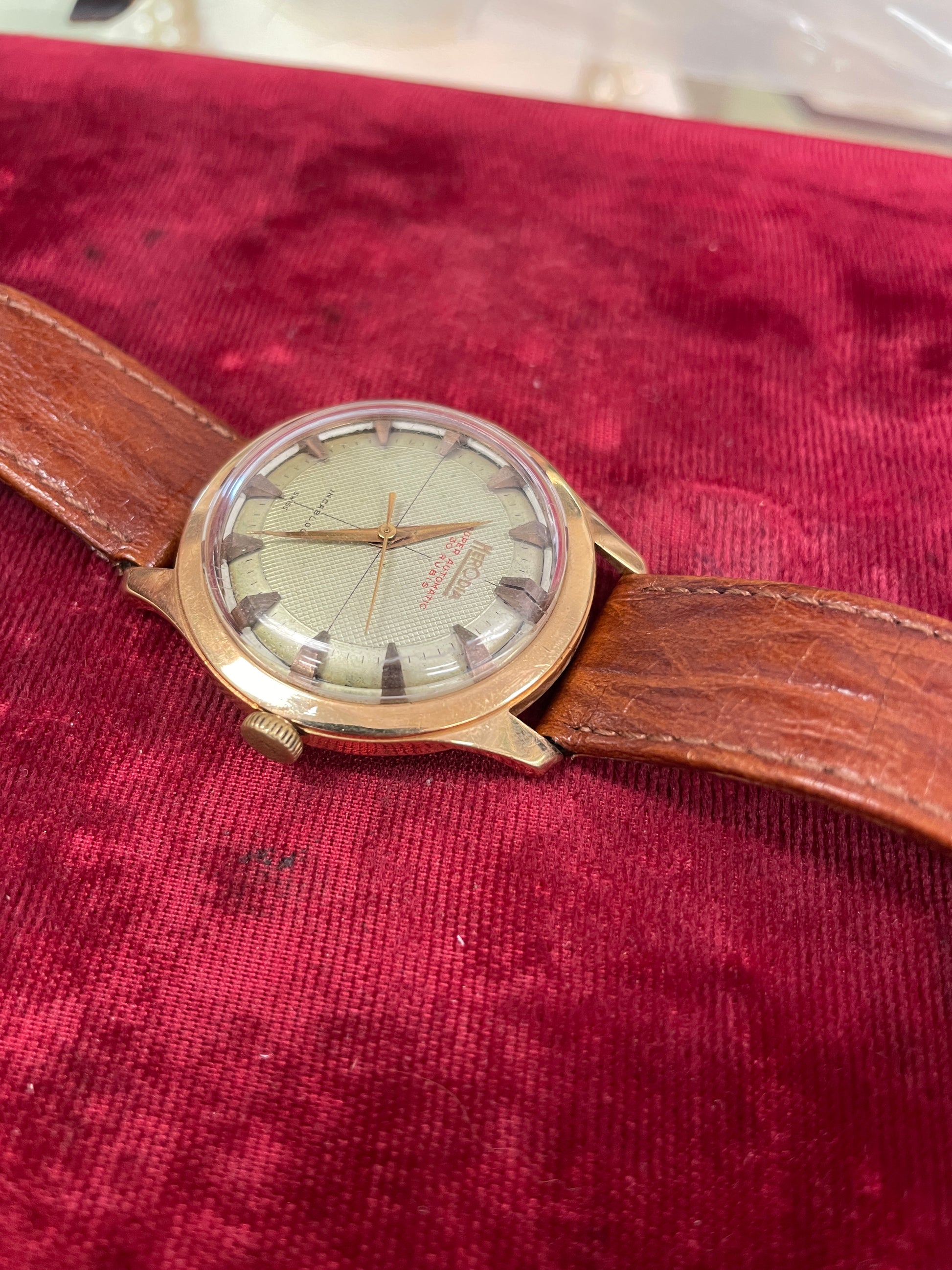 CASE: The 35mm 18kt Rose Gold case is in great condition. The hallmarks on the screw down case back are all present and very crisp. The case appears to be lightly polished in the past and has some light wear commensurate with age.Â