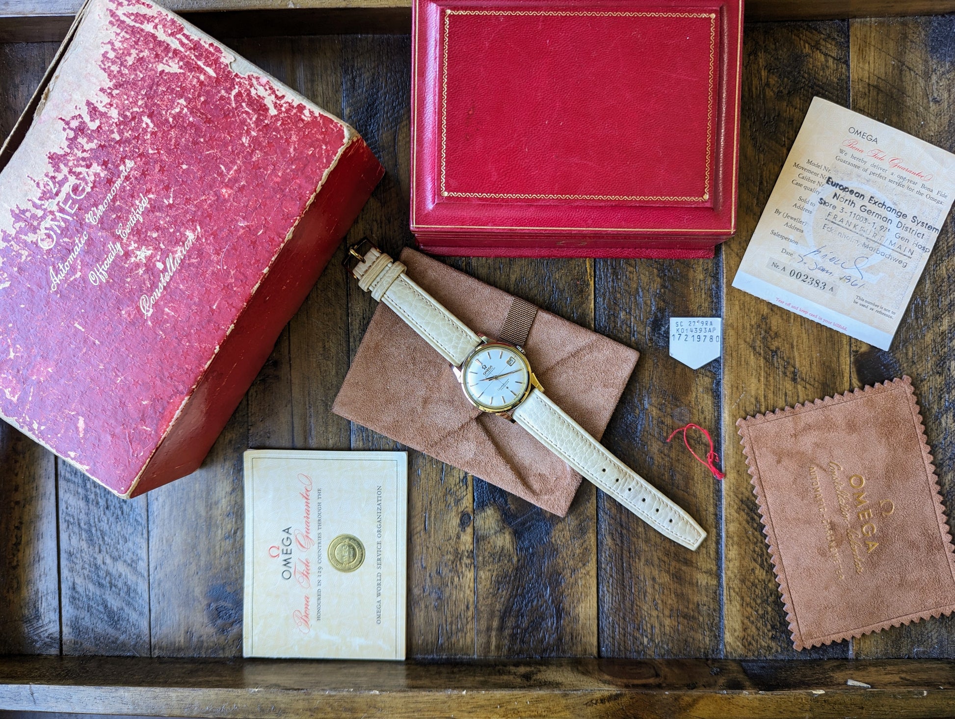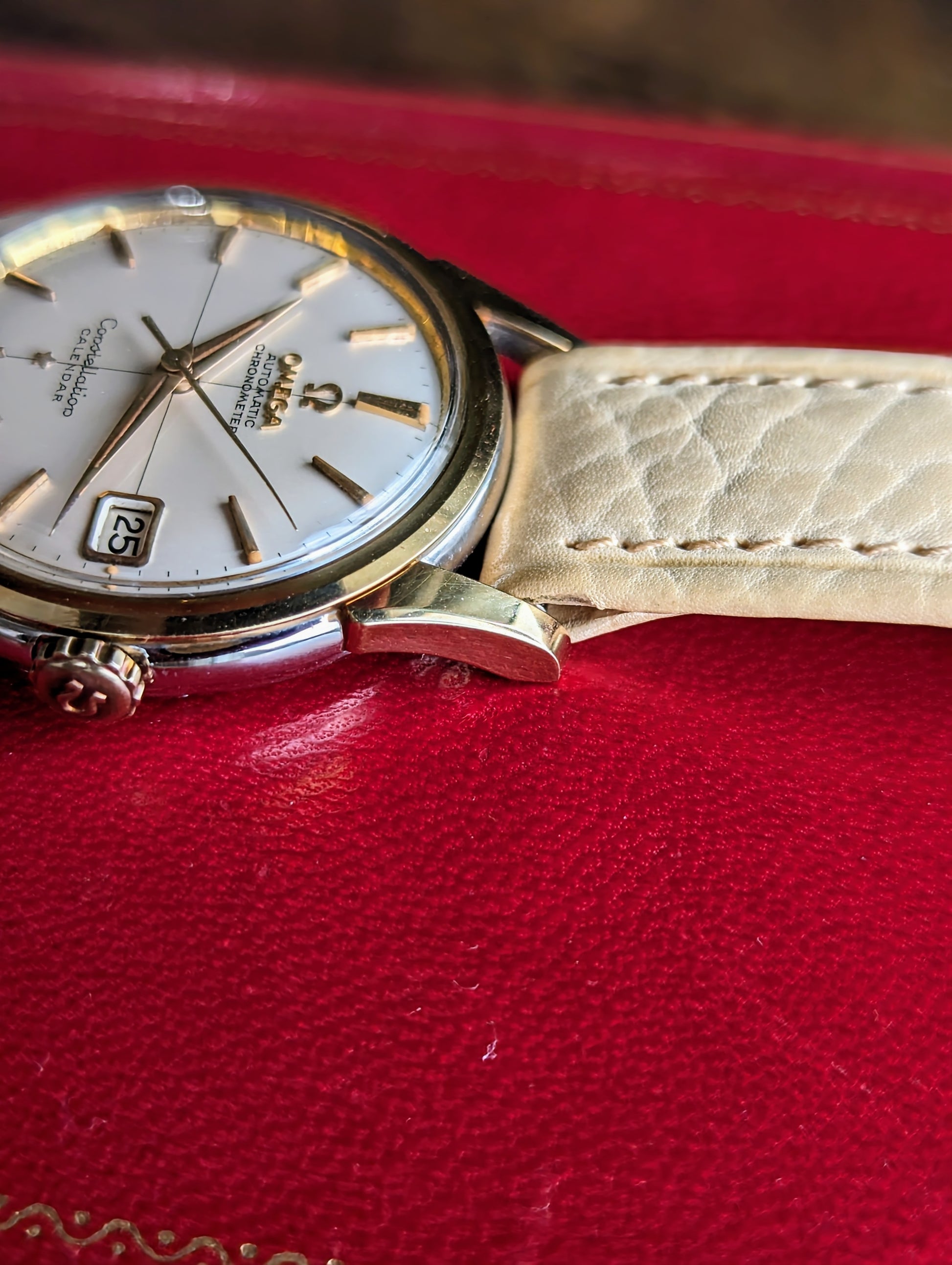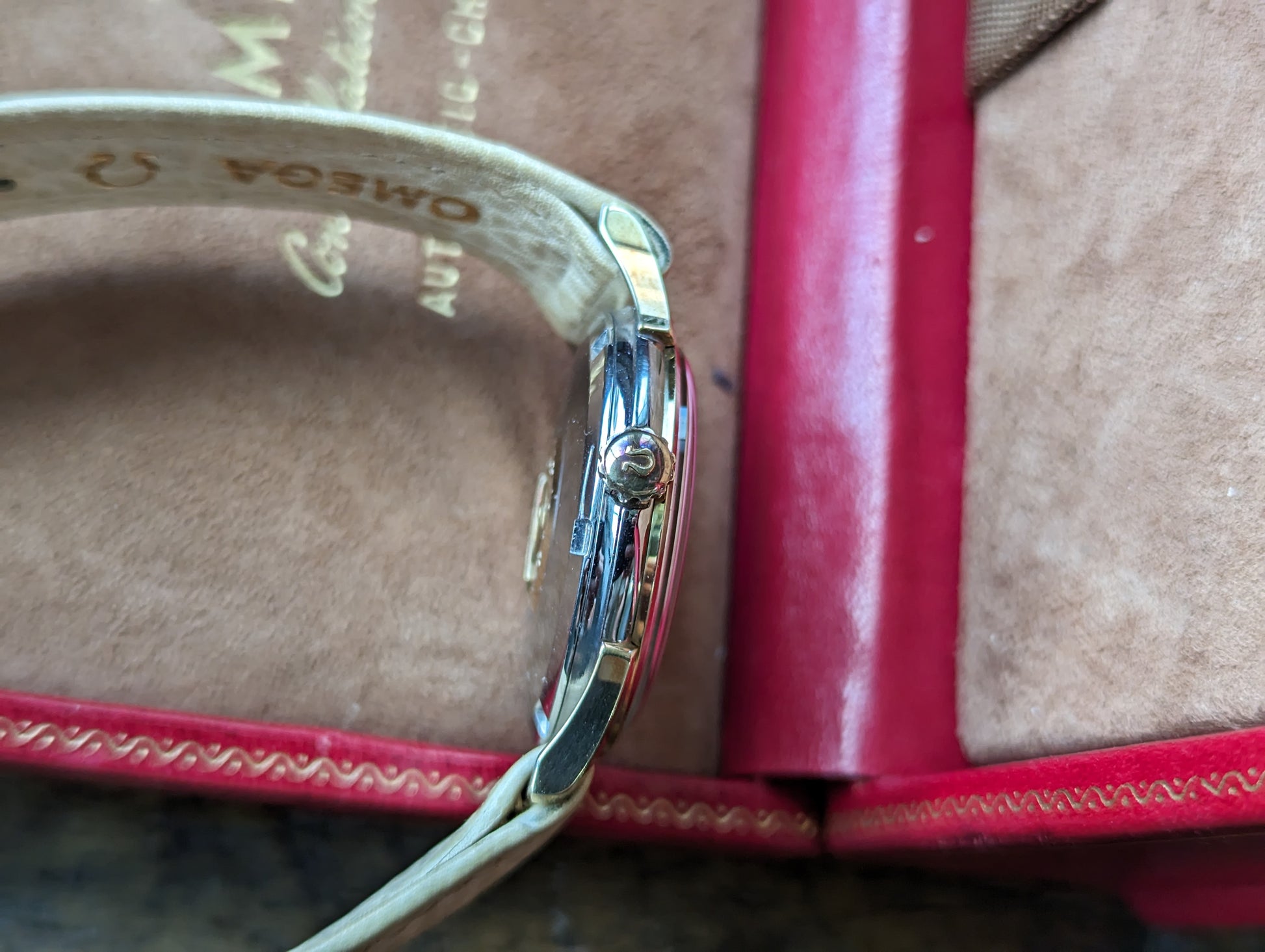 MOVEMENT: Omega automatic caliber 561 chronometer certified. Automatic self winding. 24 jewels, 19800 frequency, 50hr power reserve. Service history is unknown. The watch was not placed on a timegrapher as I didnt want to subject it to any potential wear as there is basically no wear on the case. The watch can be serviced by one of our watchmakers prior to shipment should the buyer be interested. Cost for service without parts is approximately $325. Please just let us know.