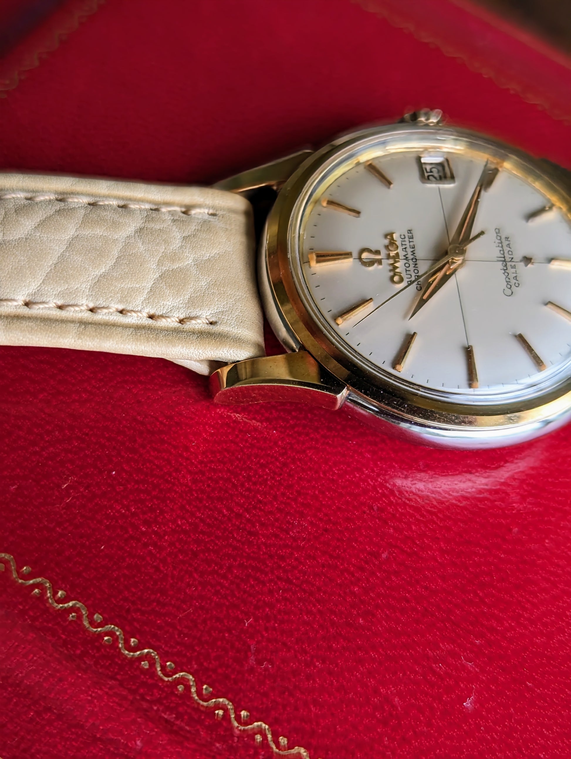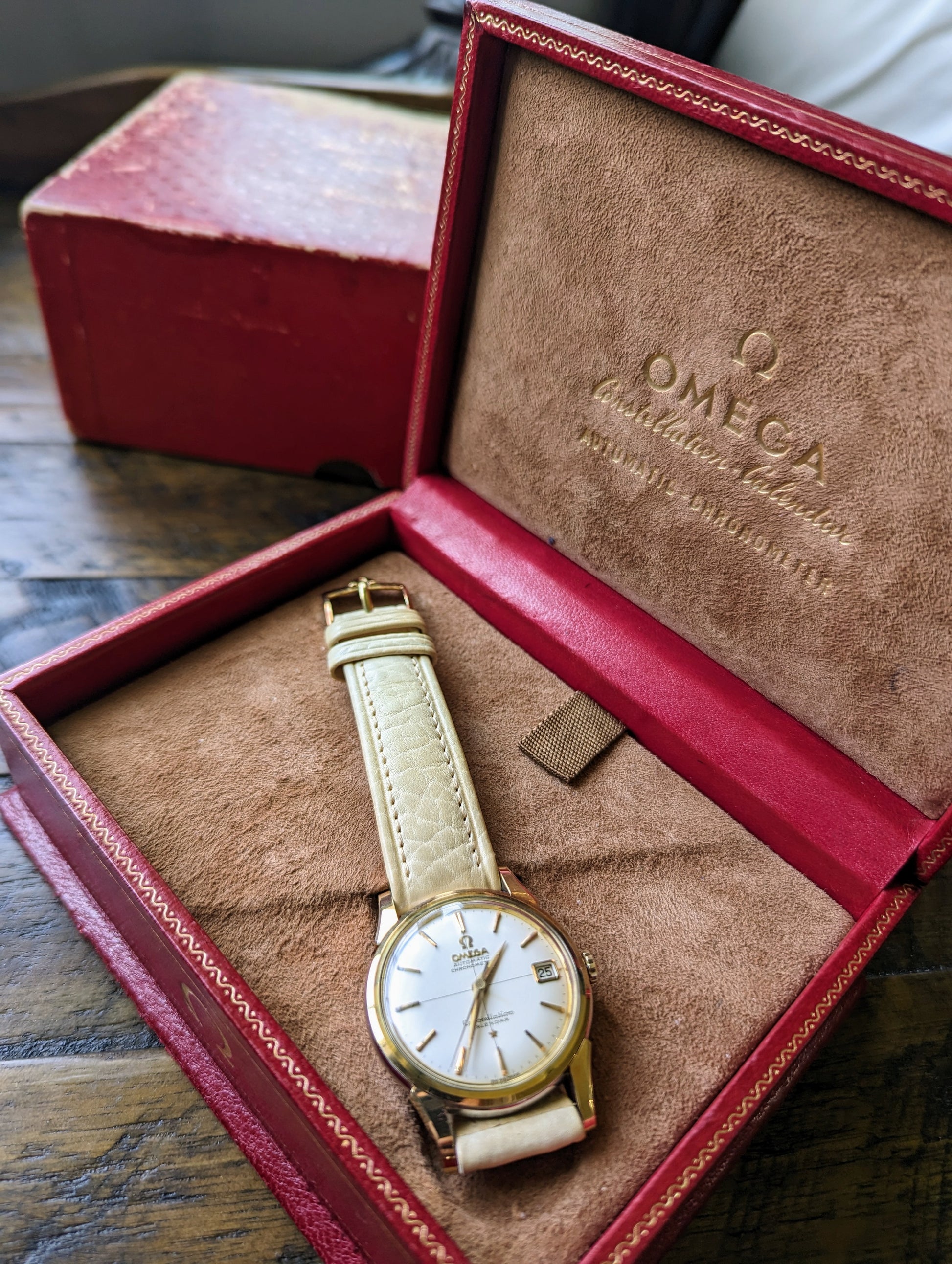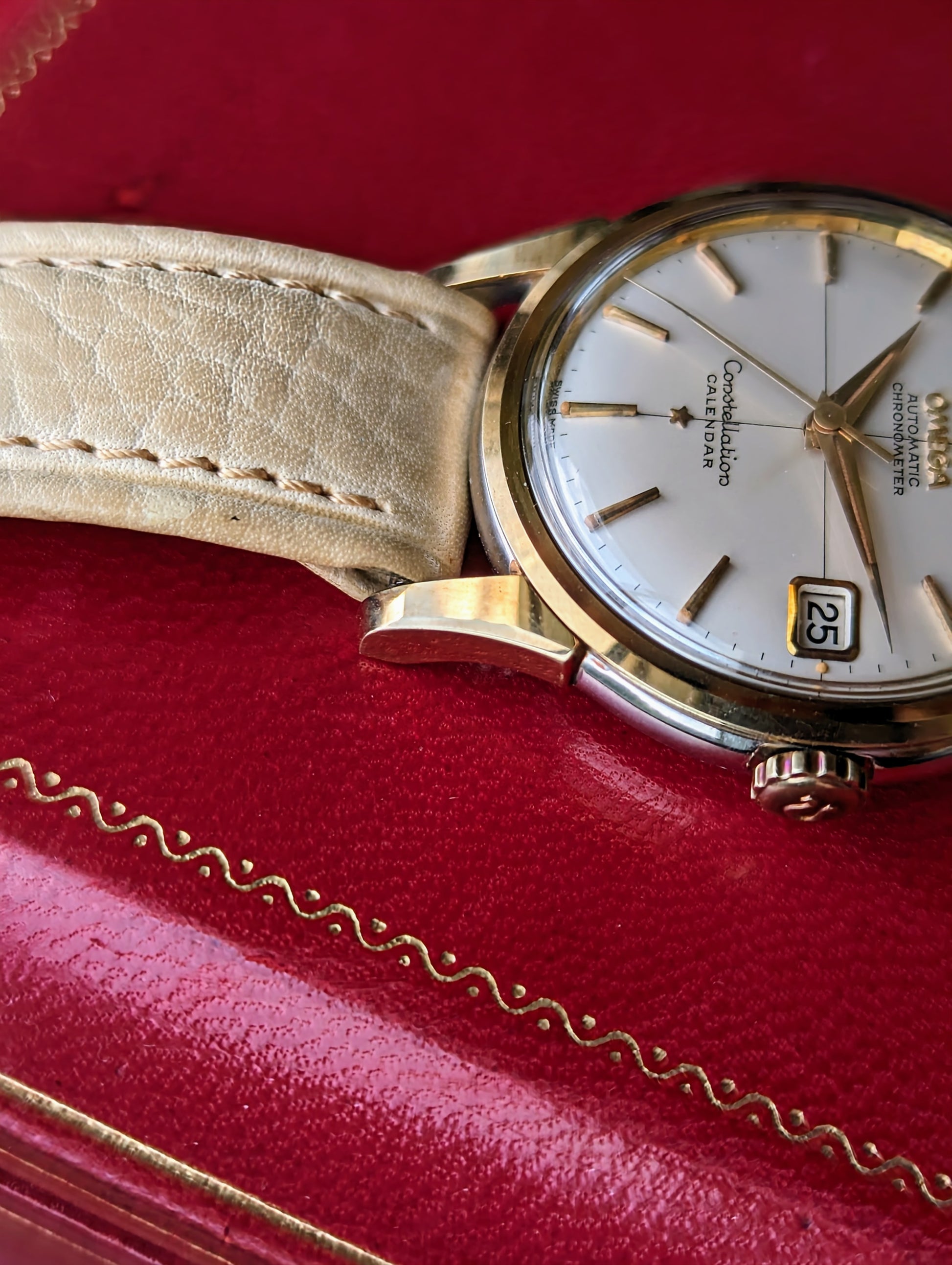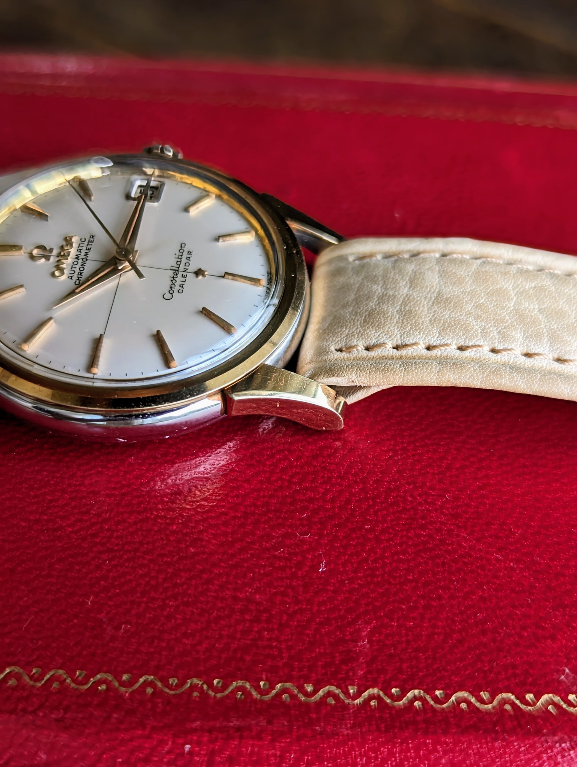 BRACELET: Comes on the watches original strap dating all the way back to 1960. The strap is even in color which is rather uncommon for straps from this era. It is in great condition. There appears to be no fraying on any part of the strap and the threading is intact.