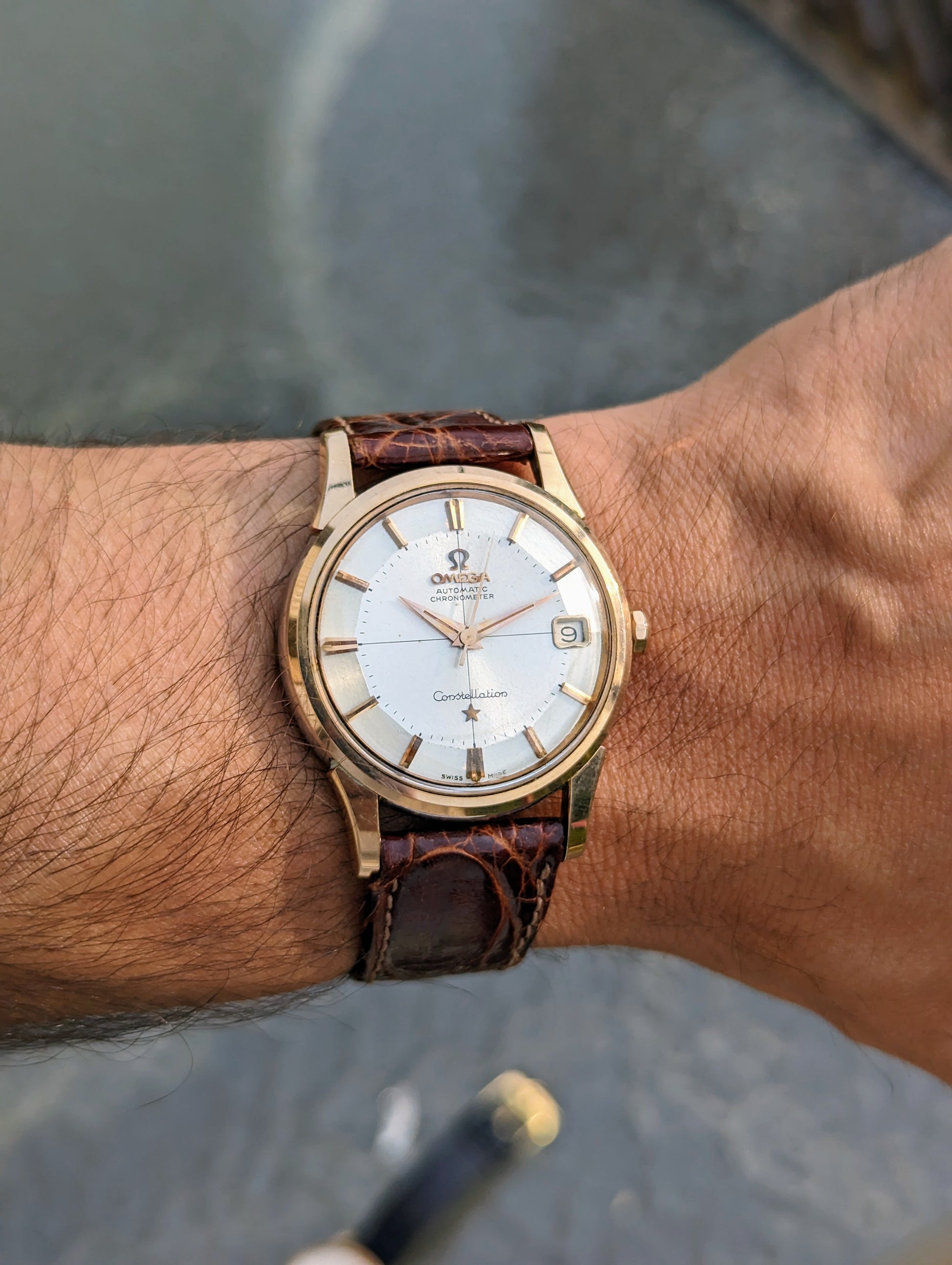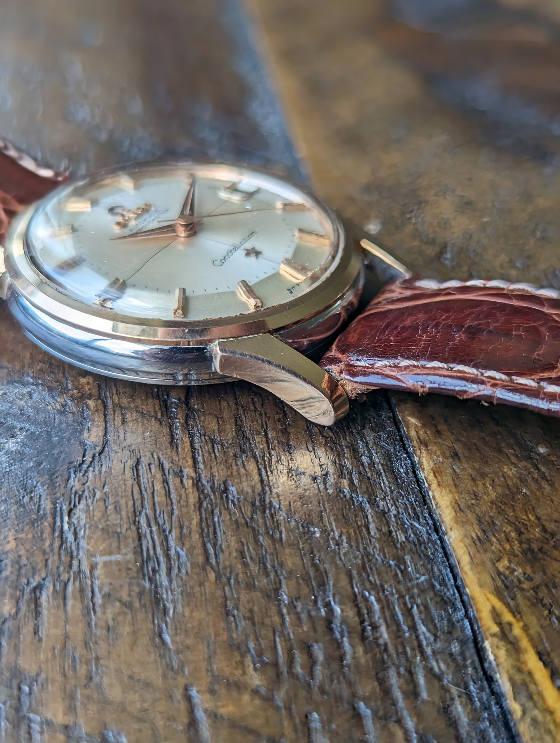 Omega introduced its “Constellation” line in the early 1950’s starting with the reference 2648. The Constellation was Omega’s top-of-the-line model, offering chronometre certified bumper automatic movements and a medallion on the caseback depicting an observatory with 8 stars - each of which represent the 8 records omega set Geneva observatory trials.