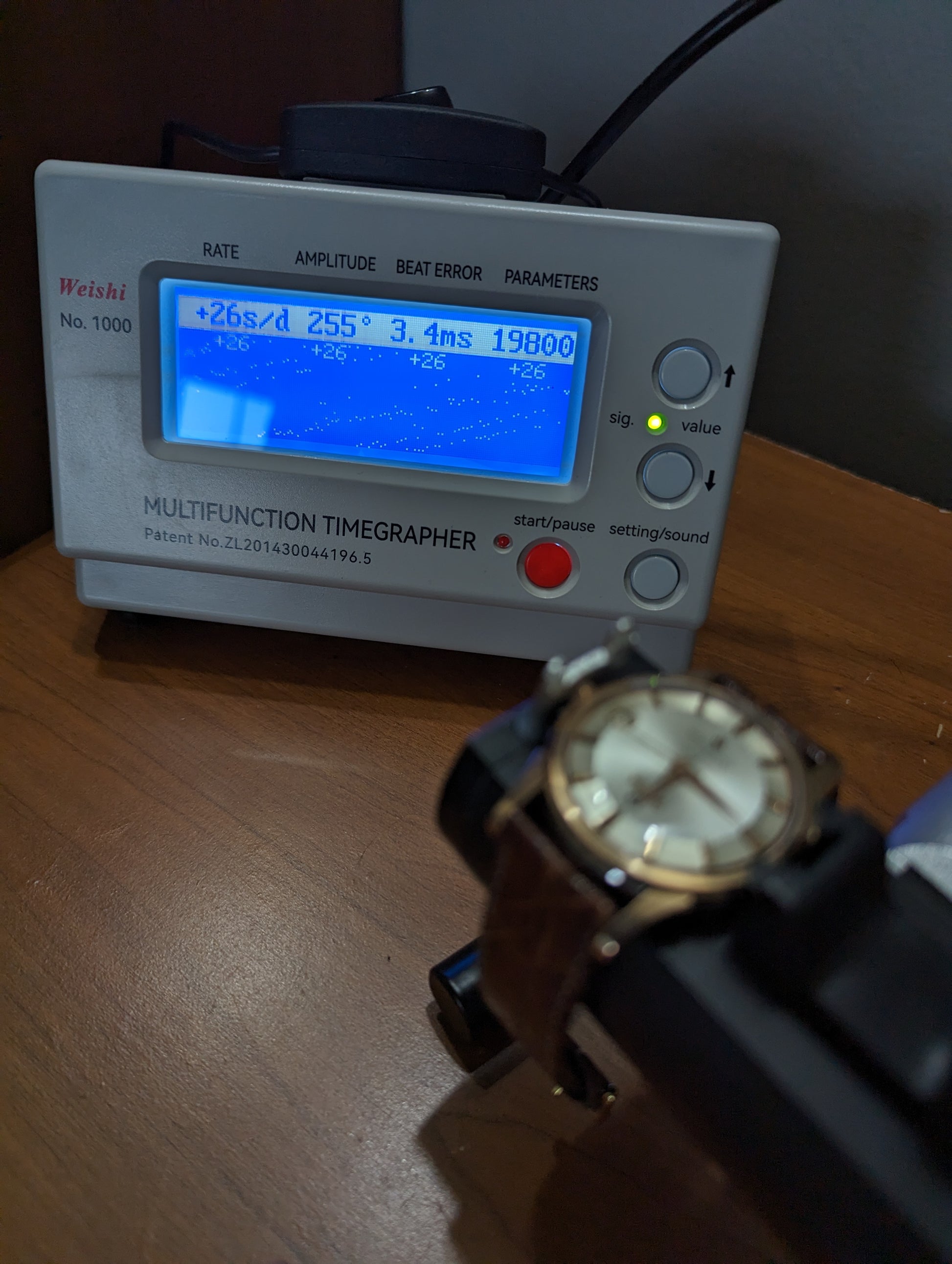 MOVEMENT: Omega automatic caliber 561 chronometer certified. Automatic self winding. 24 jewels, 19800 frequency, 50hr power reserve. Service history is unknown. The watch was placed on a timegrapher and showed that it was gaining approximately 26 seconds a day; however this was only taken in one position so to be taken with a grain of salt. It had an amplitude of 255. The watch can be serviced by one of our watchmakers prior to shipment should the buyer be interested. Cost for service without parts is approximately $325. Please just let us know.