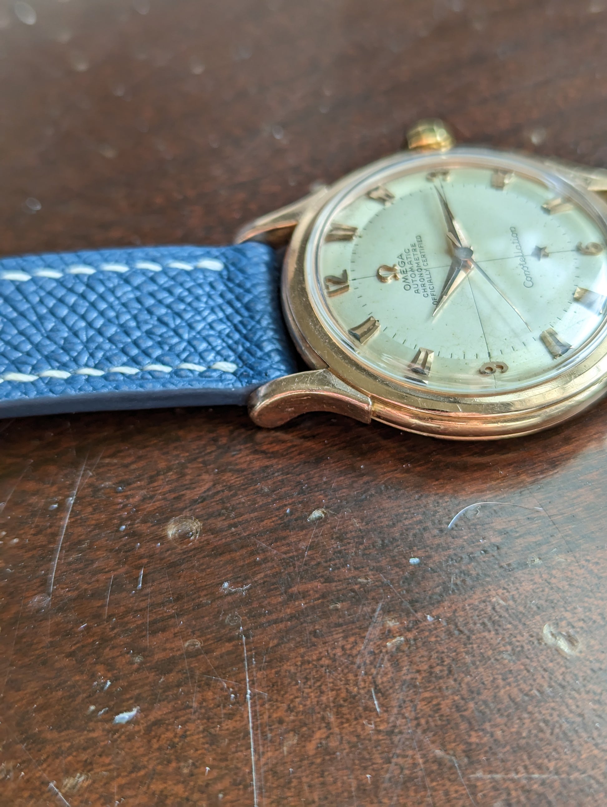 ACCESSORIES: Included with the sale of the watch is a rose gold plated period correct omega buckle that likely originally came with the watch. These are rare as hens teeth when found in rose gold.