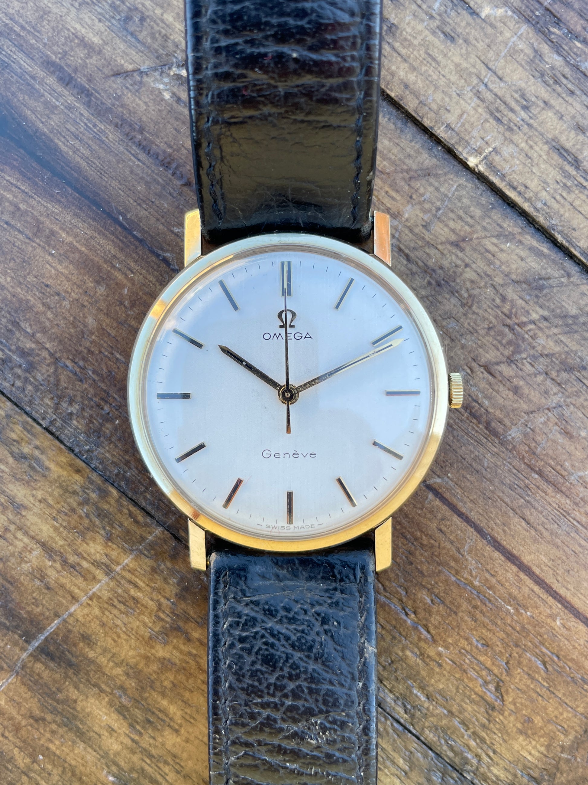 The Omega Geneve line was born in the early 1950's as a commemoration of Omegas achievement with regards to the Geneva testing that had taken place at that time. The line was fitted with movements that were still held in high regards when concerning accuracy but was offered at a cheaper price point when compared to other lines like the Deville or Constellation that were also offered at that time..