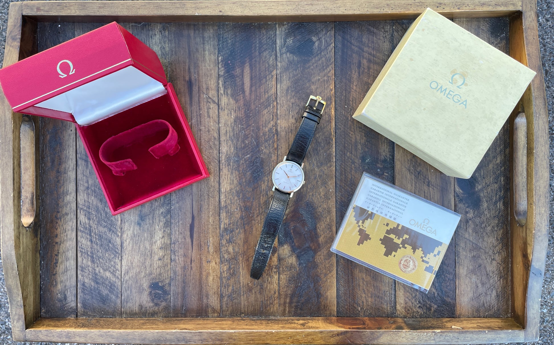 This is one that gets us up in the morning as vintage watch enthusiasts. Seemingly finding a time capsule. A 1972 Omega Geneve - a complete set- with original box, papers, band and buckle. We are thrilled to be offering this in our vintage watch shop.