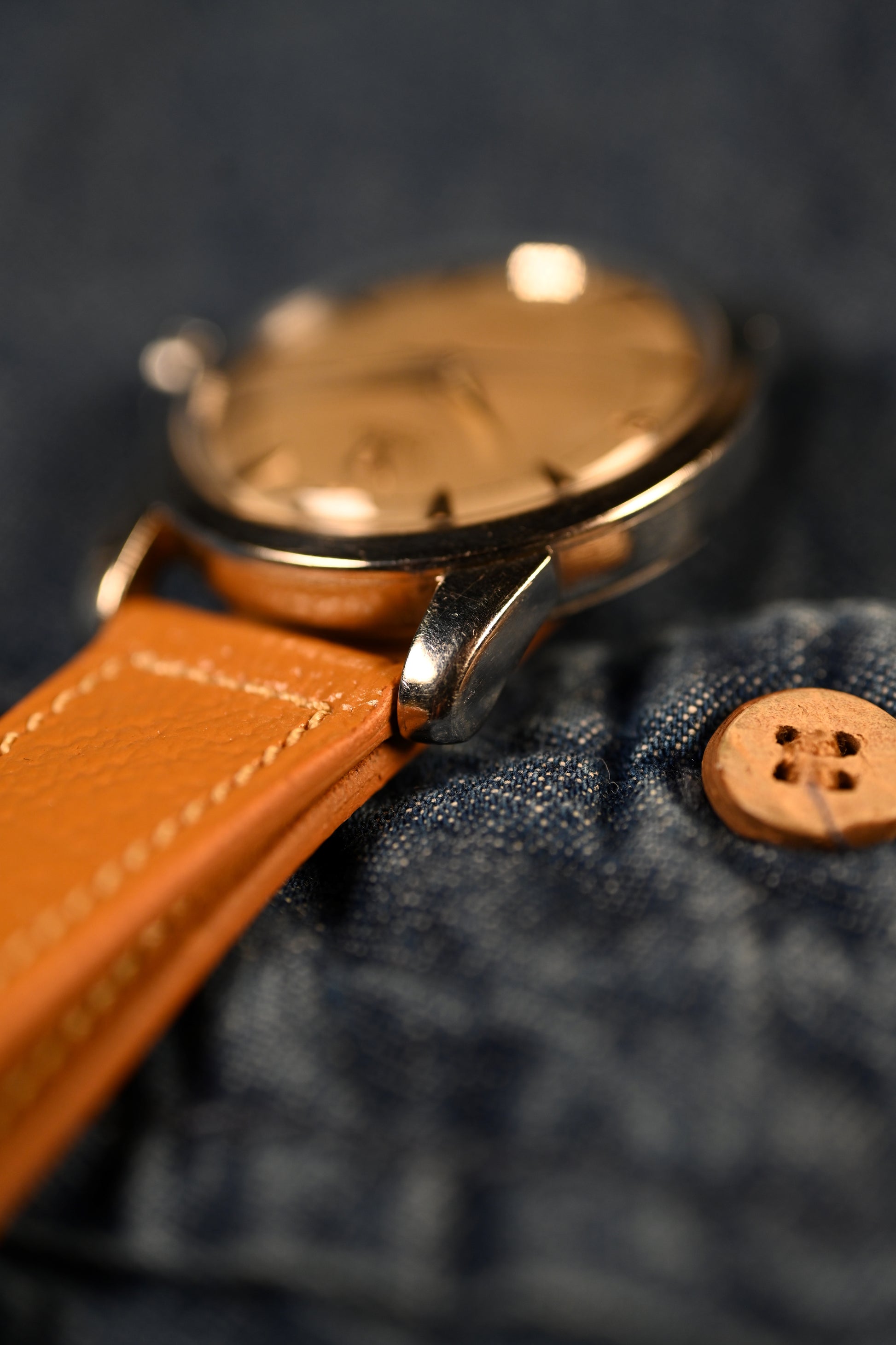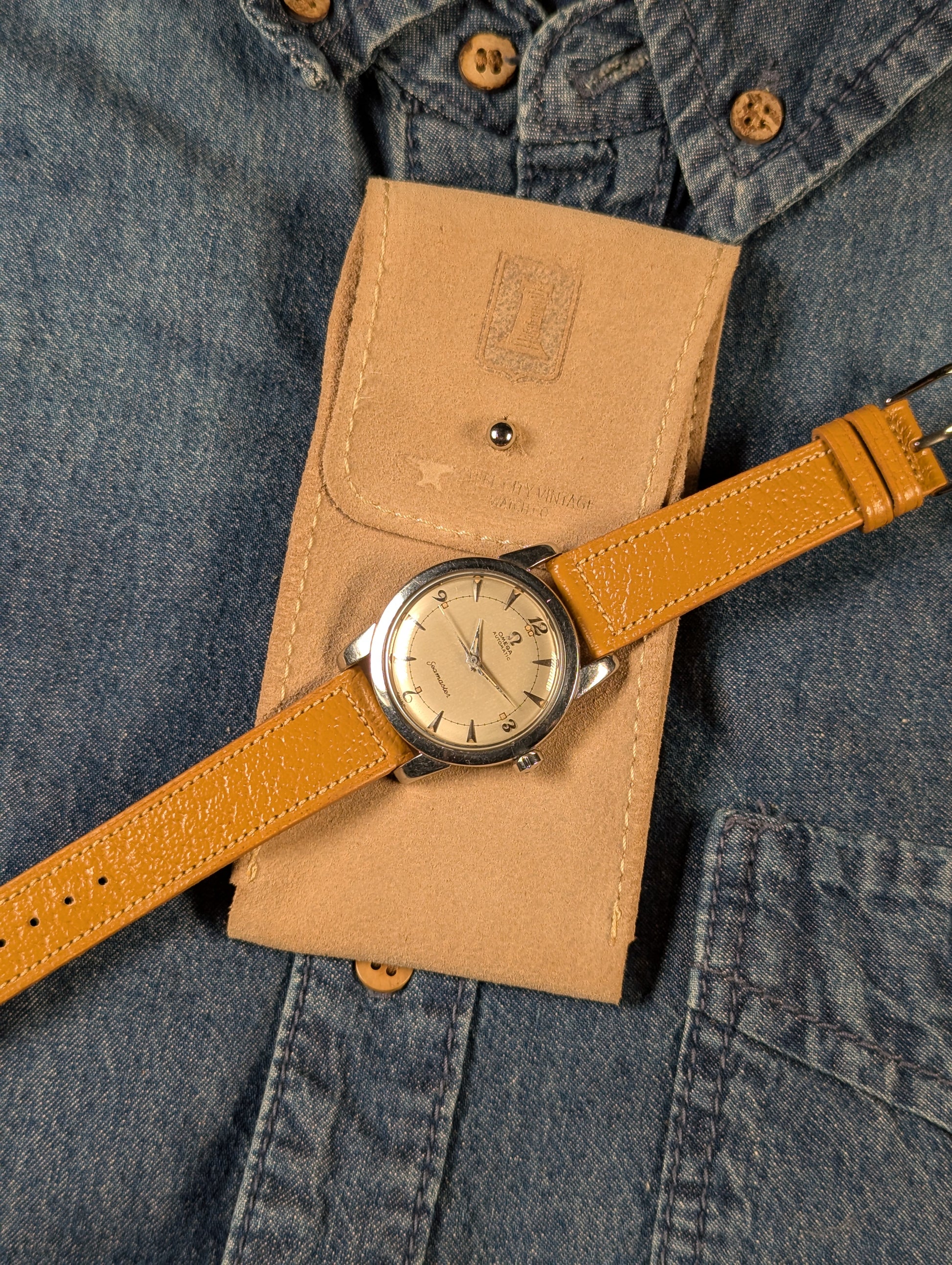 This example, an Omega Seamaster reference 2577, is of particular interest: it features applied Breguet numerals. Breguet numerals have always maintained a special place in the hearts of vintage watch enthusiasts and collectors. Some of the most rare and coveted examples from other watch manufacturers such as Patek Phillipe have featured these numerals. Subjectively speaking I find Breguet numerals to be much more aesthetically pleasing over their Arabic counterparts. We are pleased to offer this uncommon example in our vintage watch shop.