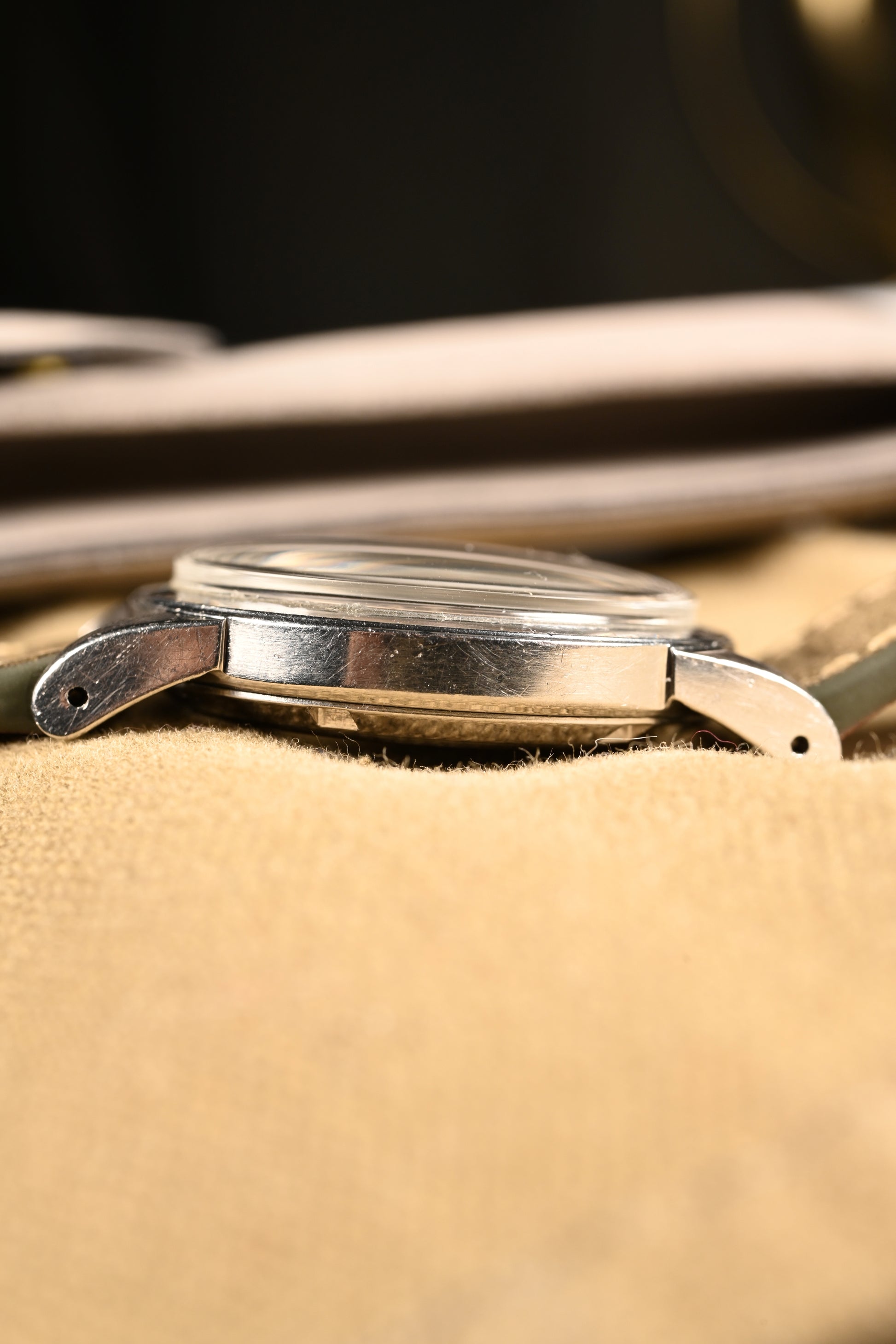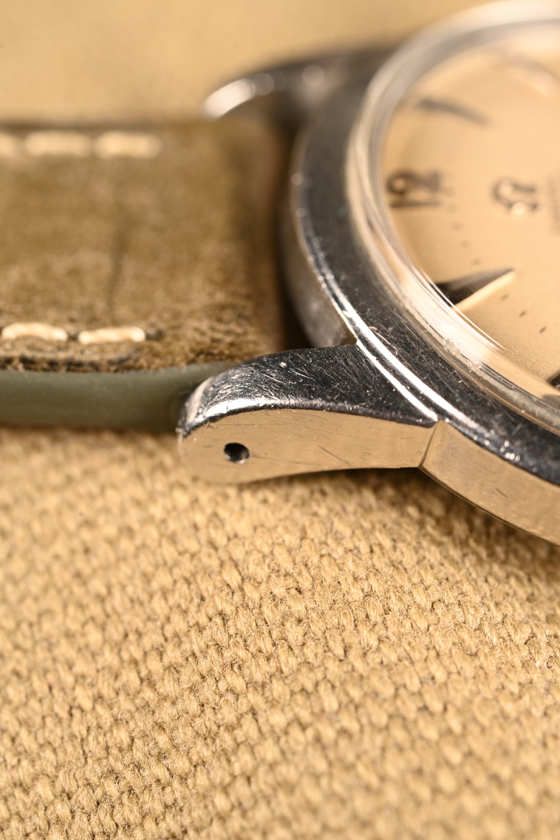 DIAL: We have an original, beautiful silver dial that has taken a light cream patina to it over the age. The dial is in fantastic condition and appears to be free of any imperfections. It features dagger and Arabic style hour markers.