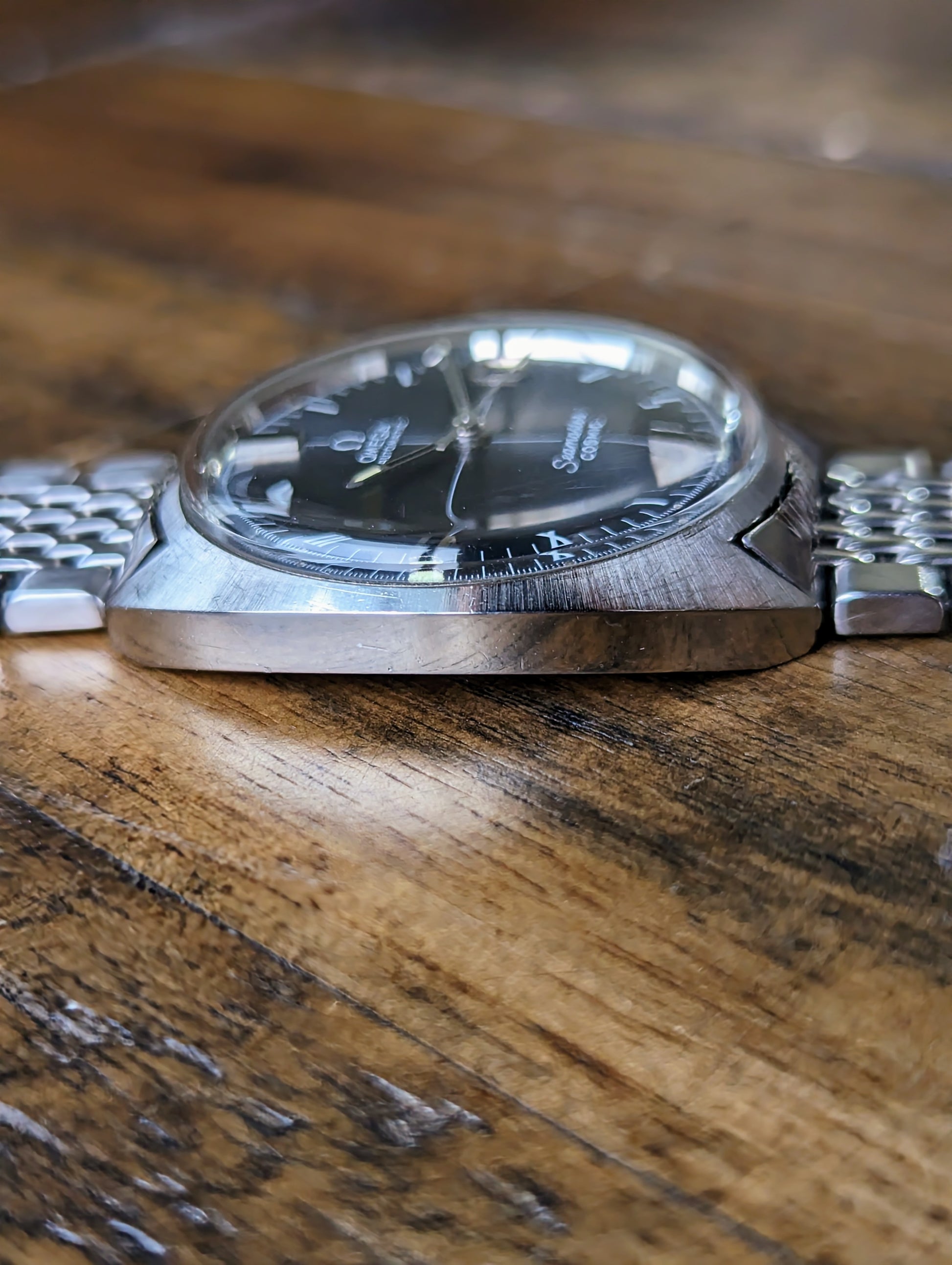 Introduced in 1967 the Seamaster Cosmic offers a lot of options to prospective collectors. Produced into the mid 1970s, the cosmic came in a wide variety of dial options, complications and materials. With its funky C case, these models just oozed 1970s.