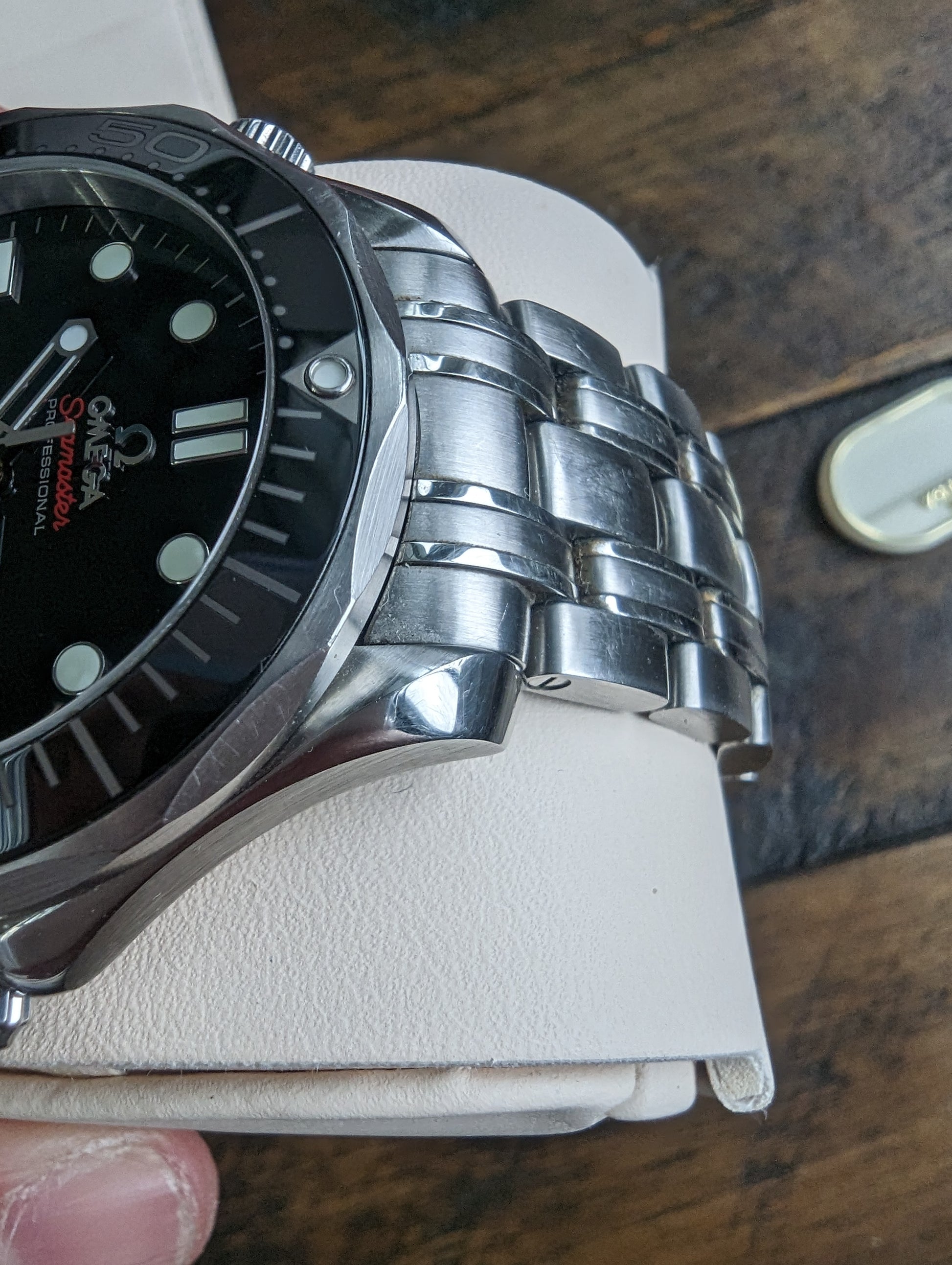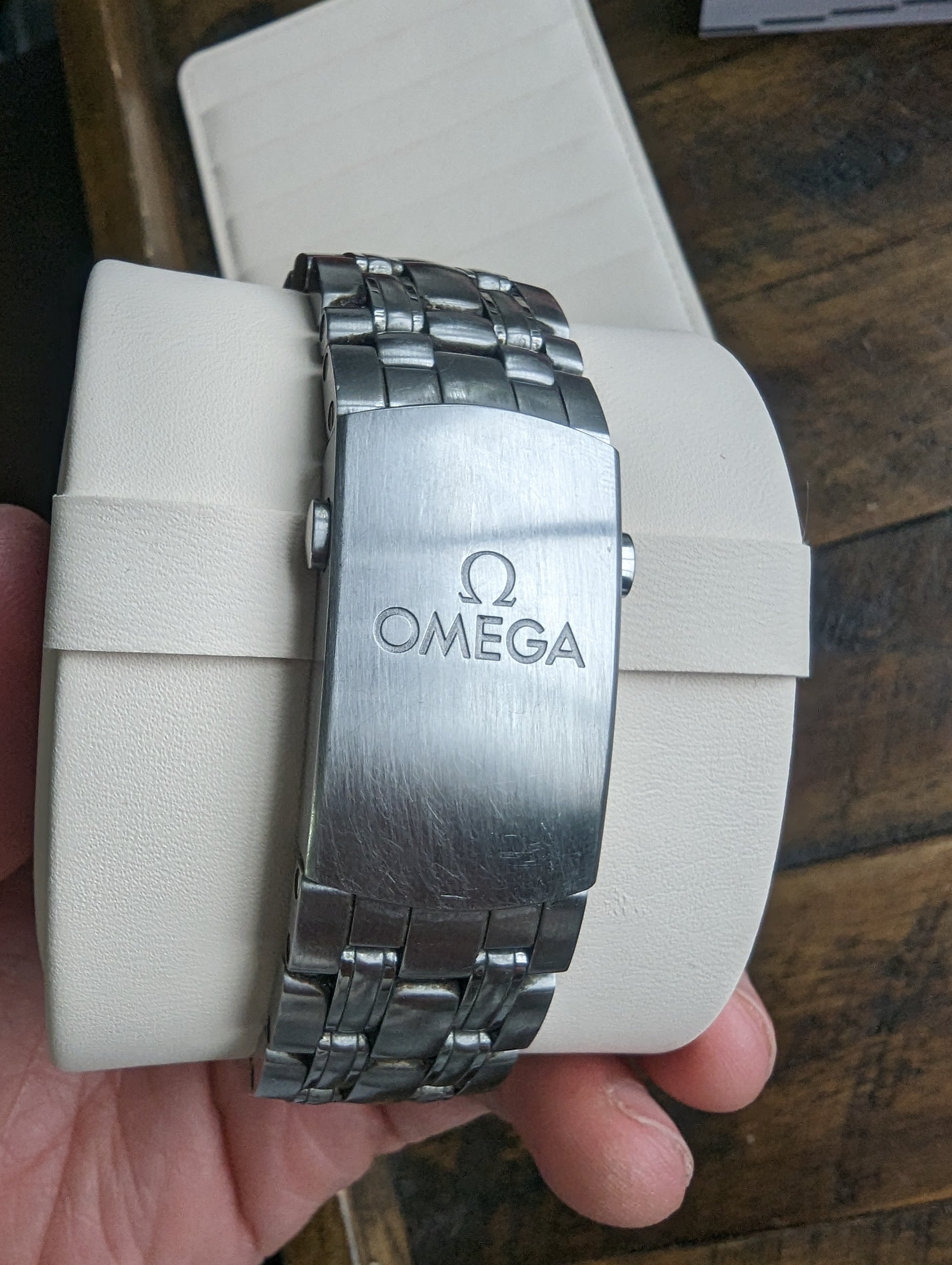 BRACELET: Full length original steel bracelet with fold over clasp complete with diver extension.
