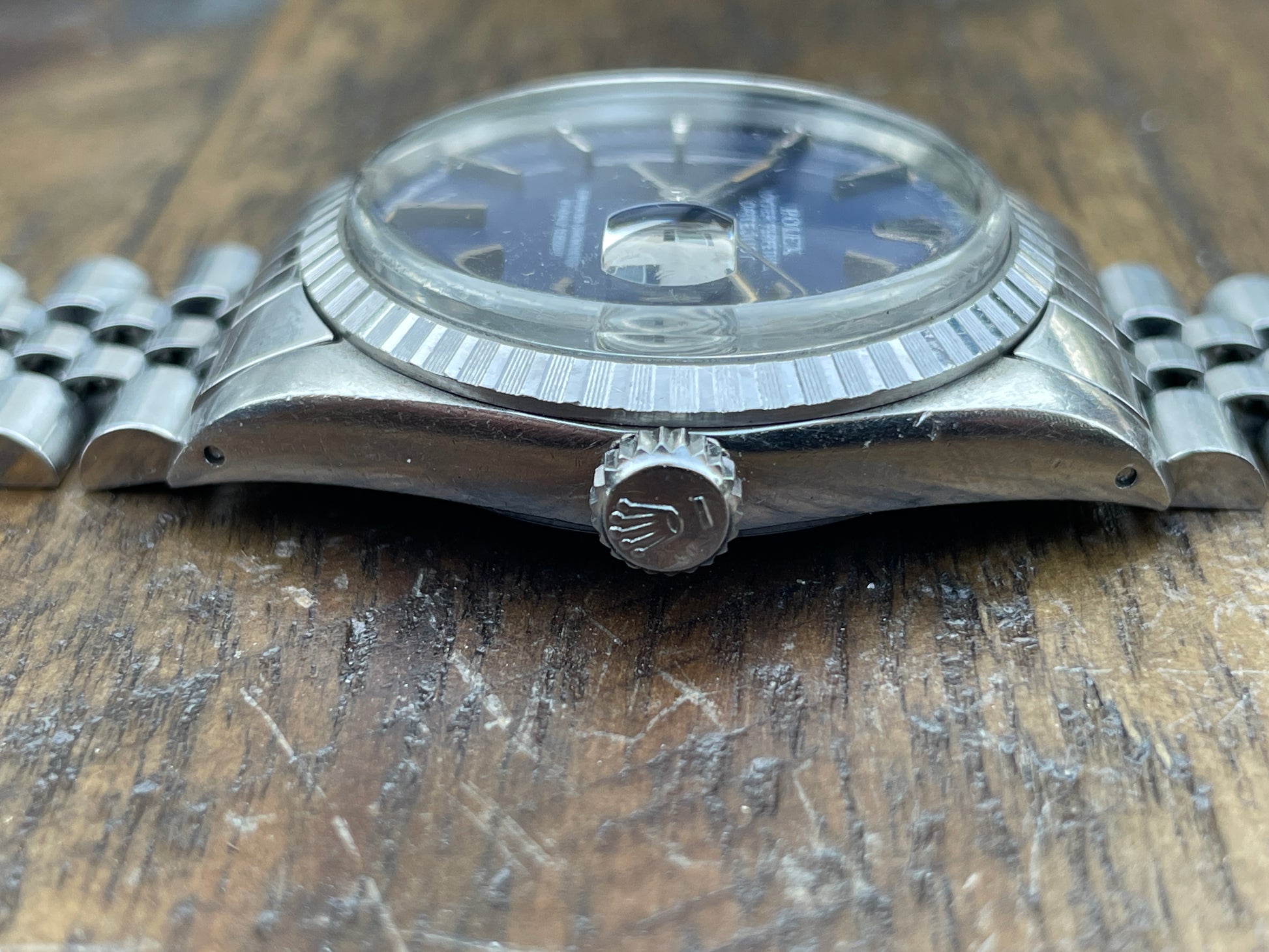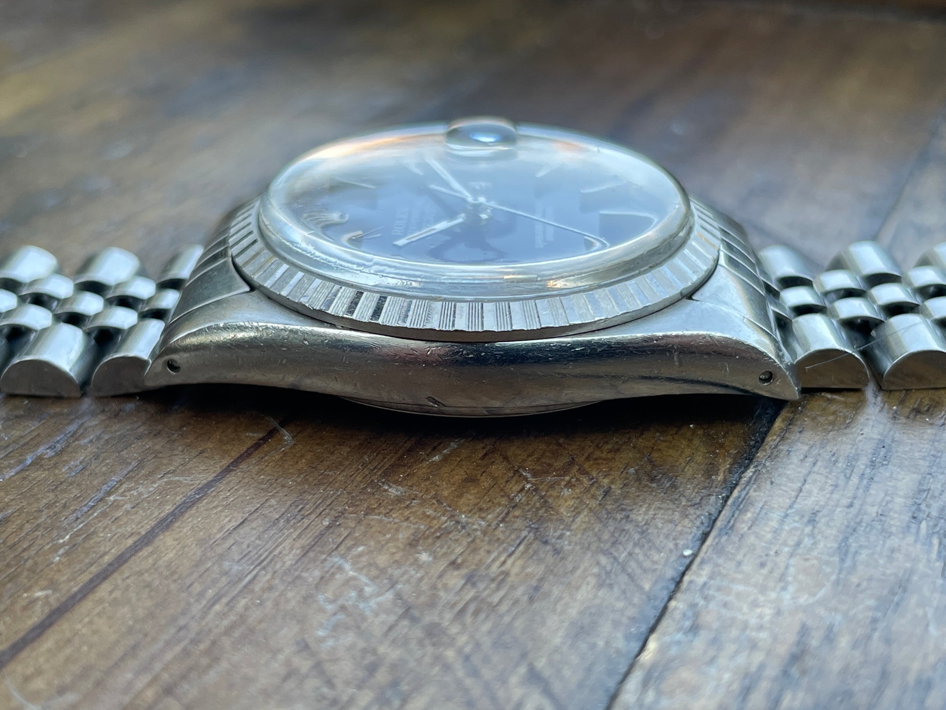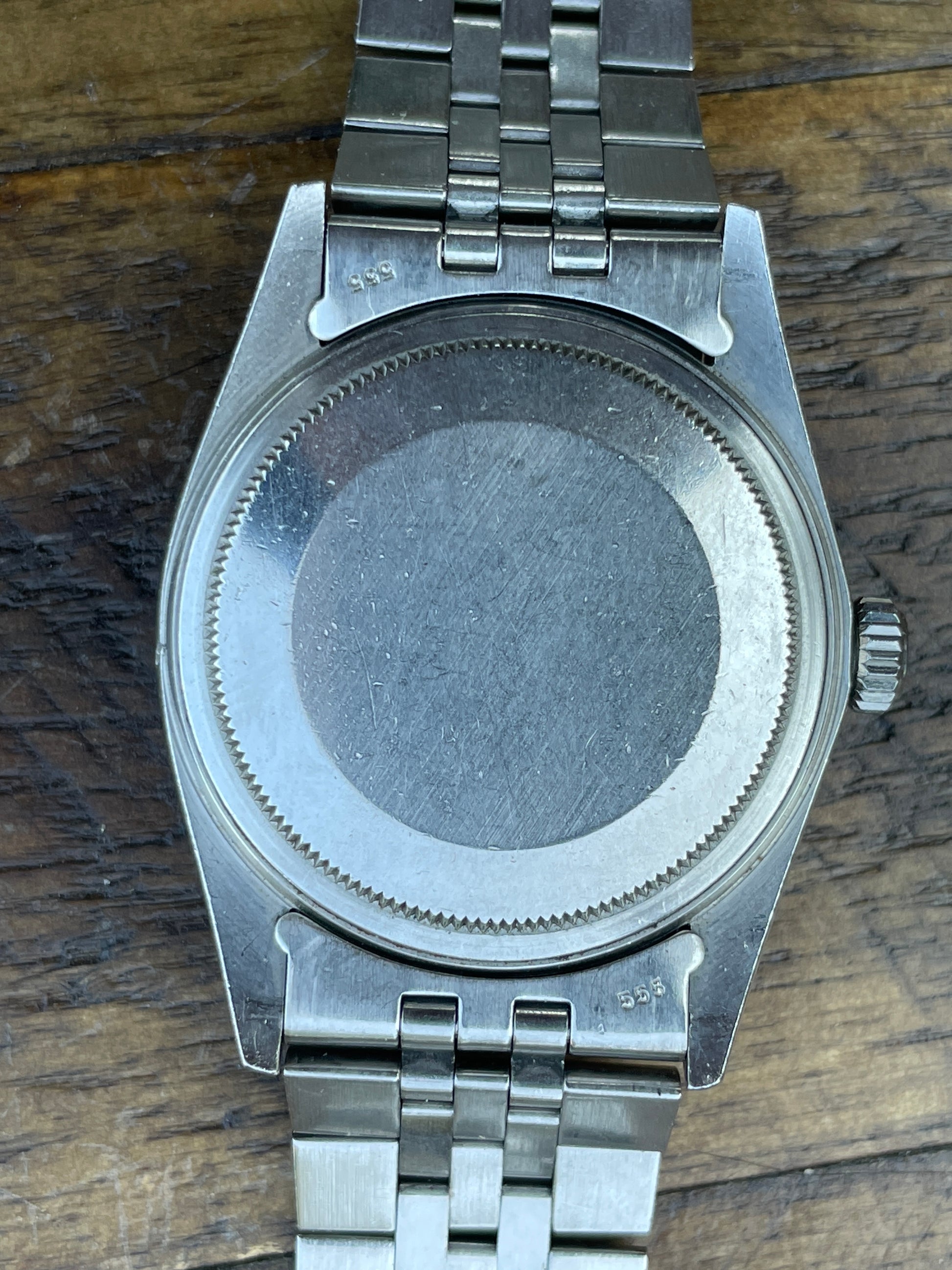 CASE: The previously polished 36mm steel case is in good shape. The case sports light wear throughout commensurate with its age.