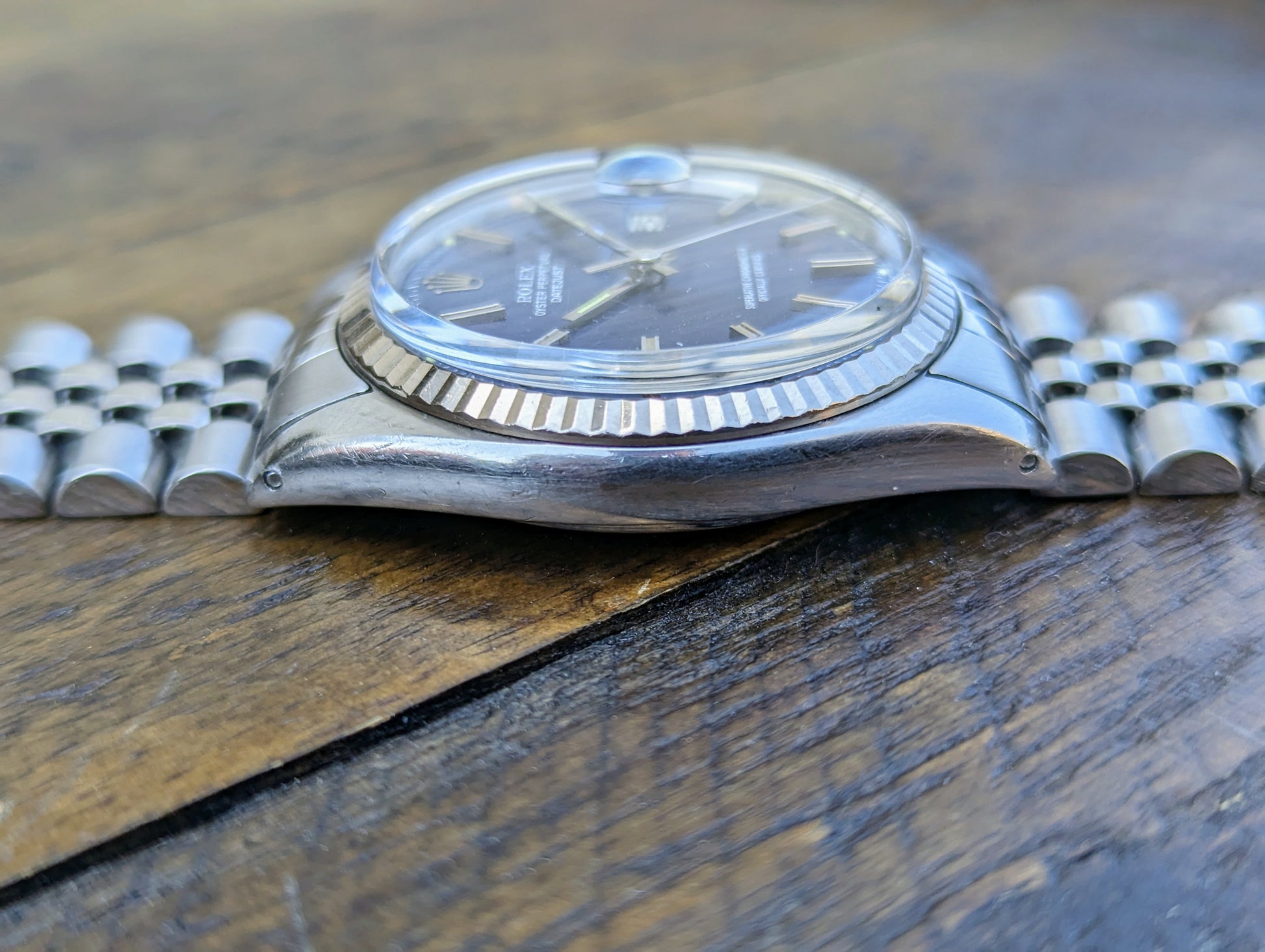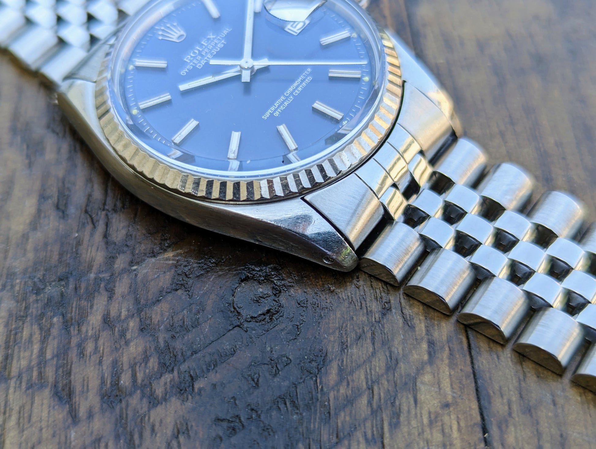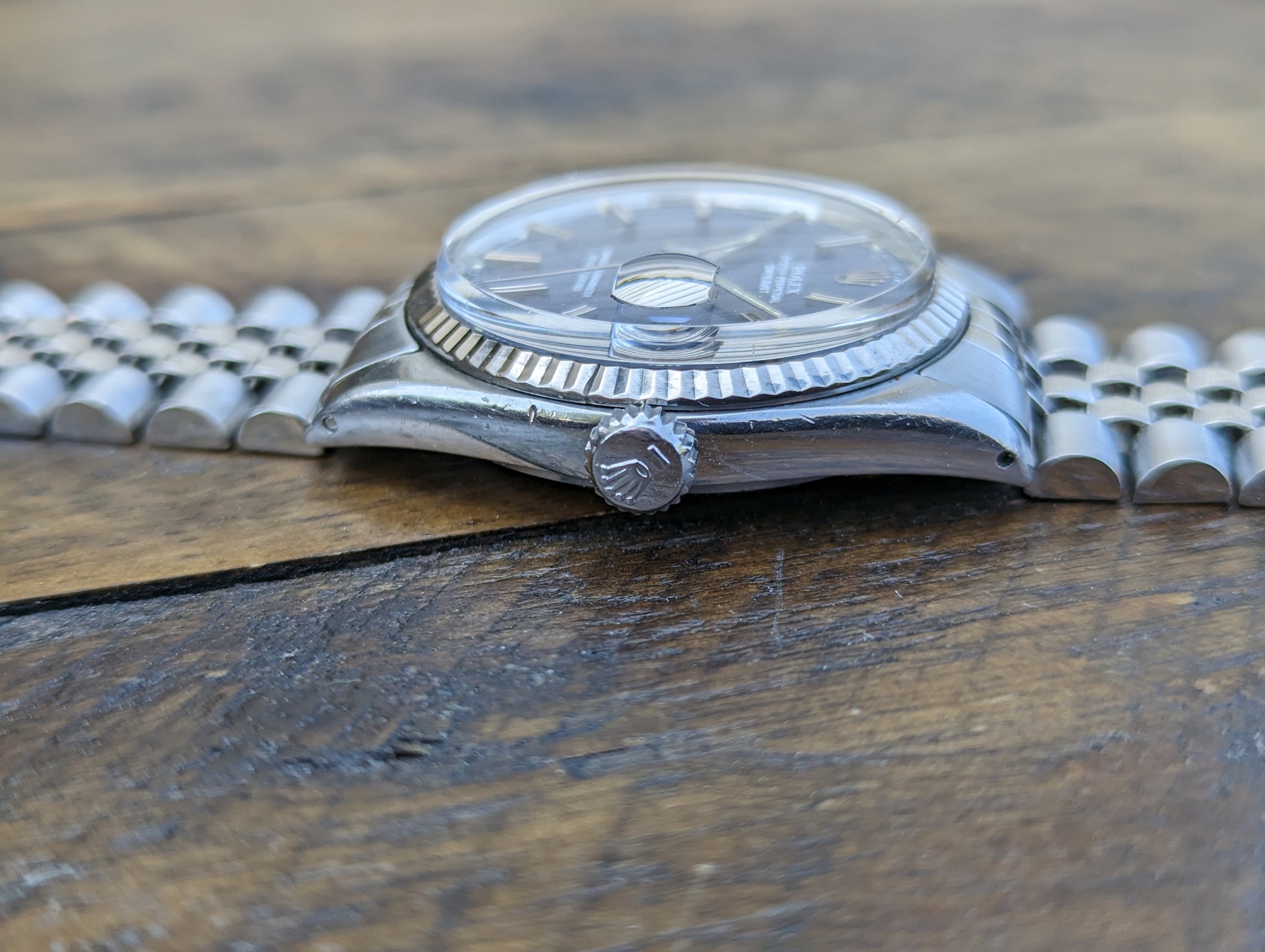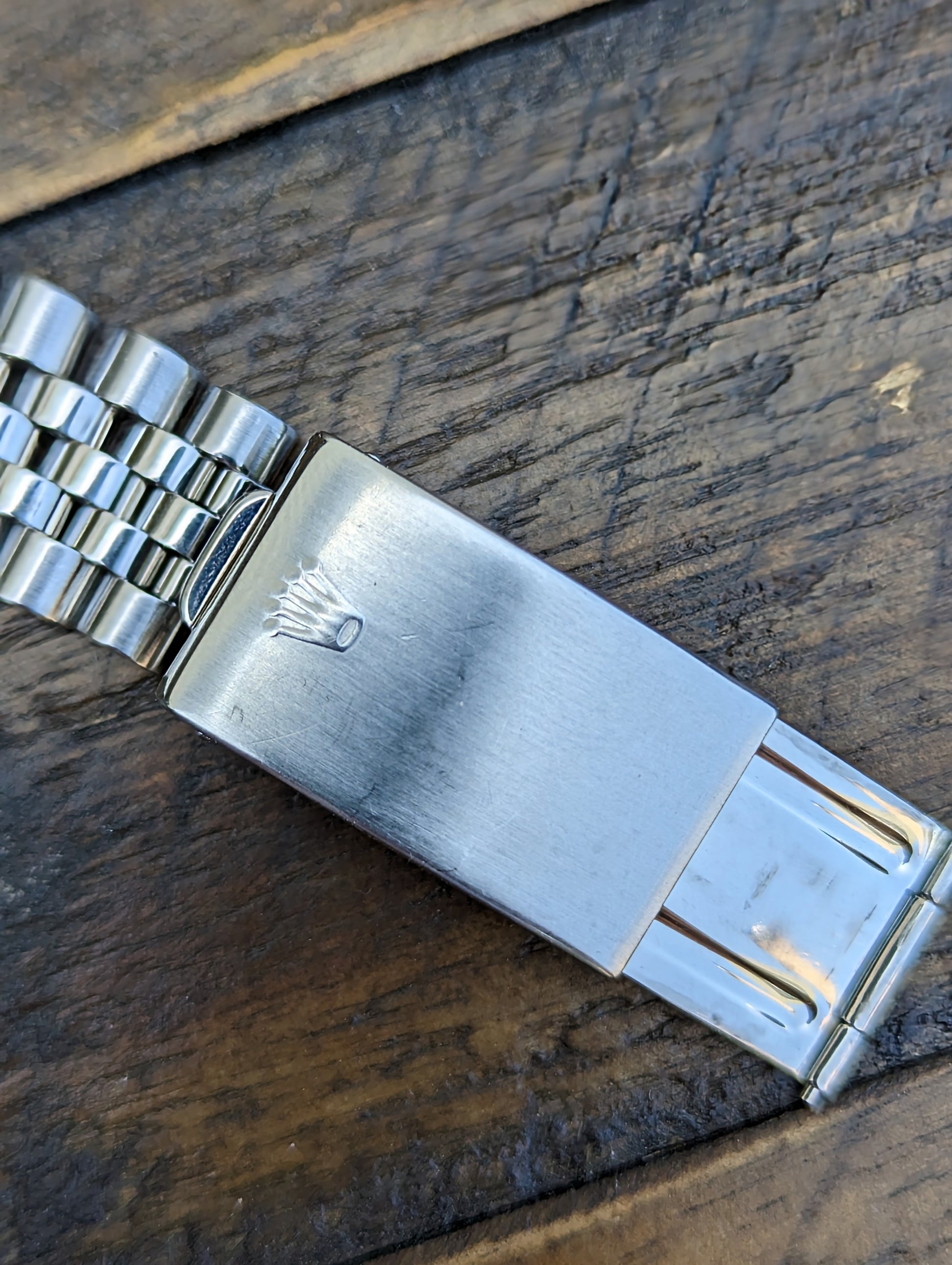 CASE: The previously polished 36mm steel case is in fair shape. The case has seen its fair share of polishing over the years. The case illustrates wear commensurate with a well loved watch over its 48 years. It is complete by a white gold fluted bezel. Please review the pictures as they are part of the description.