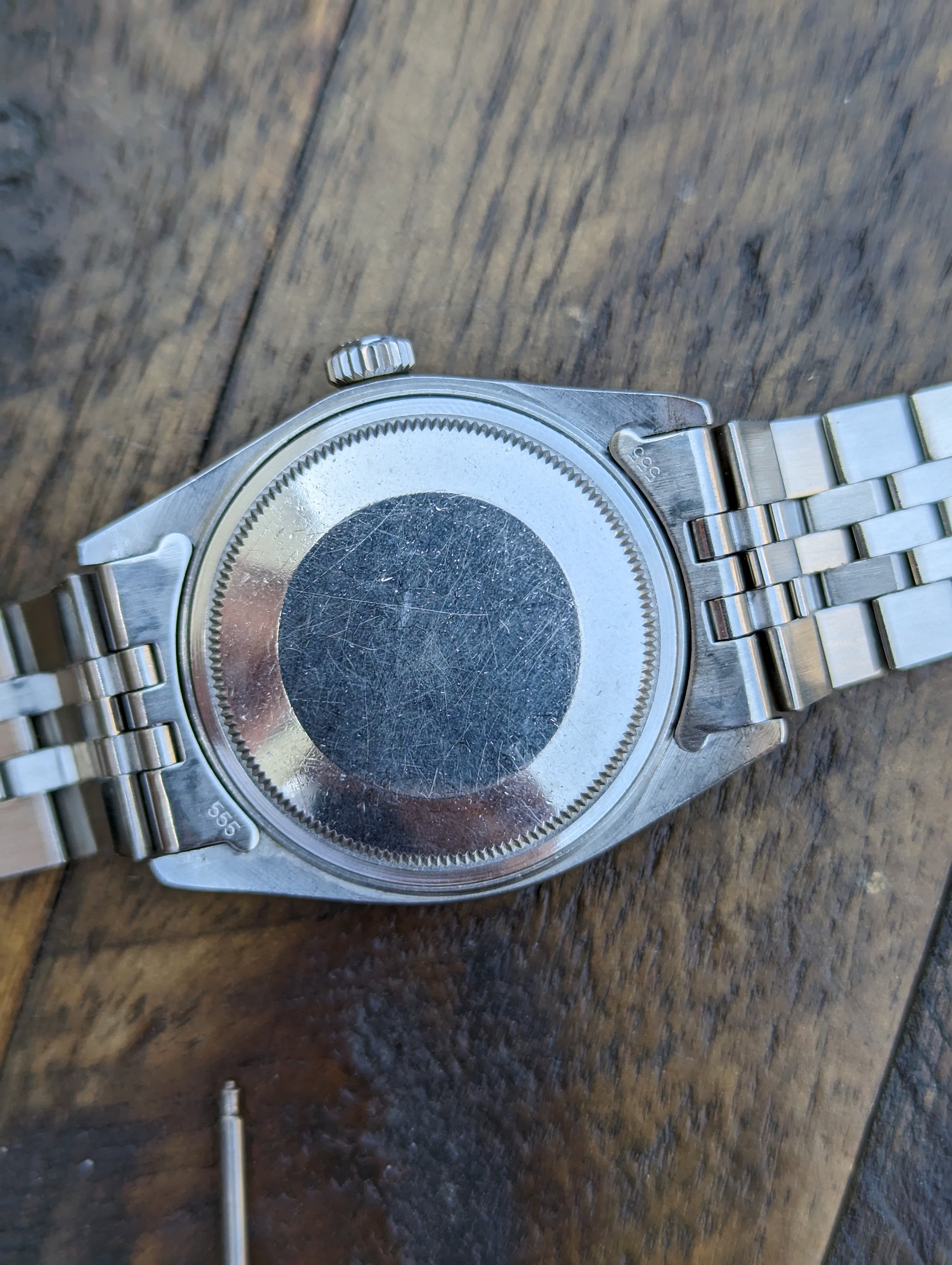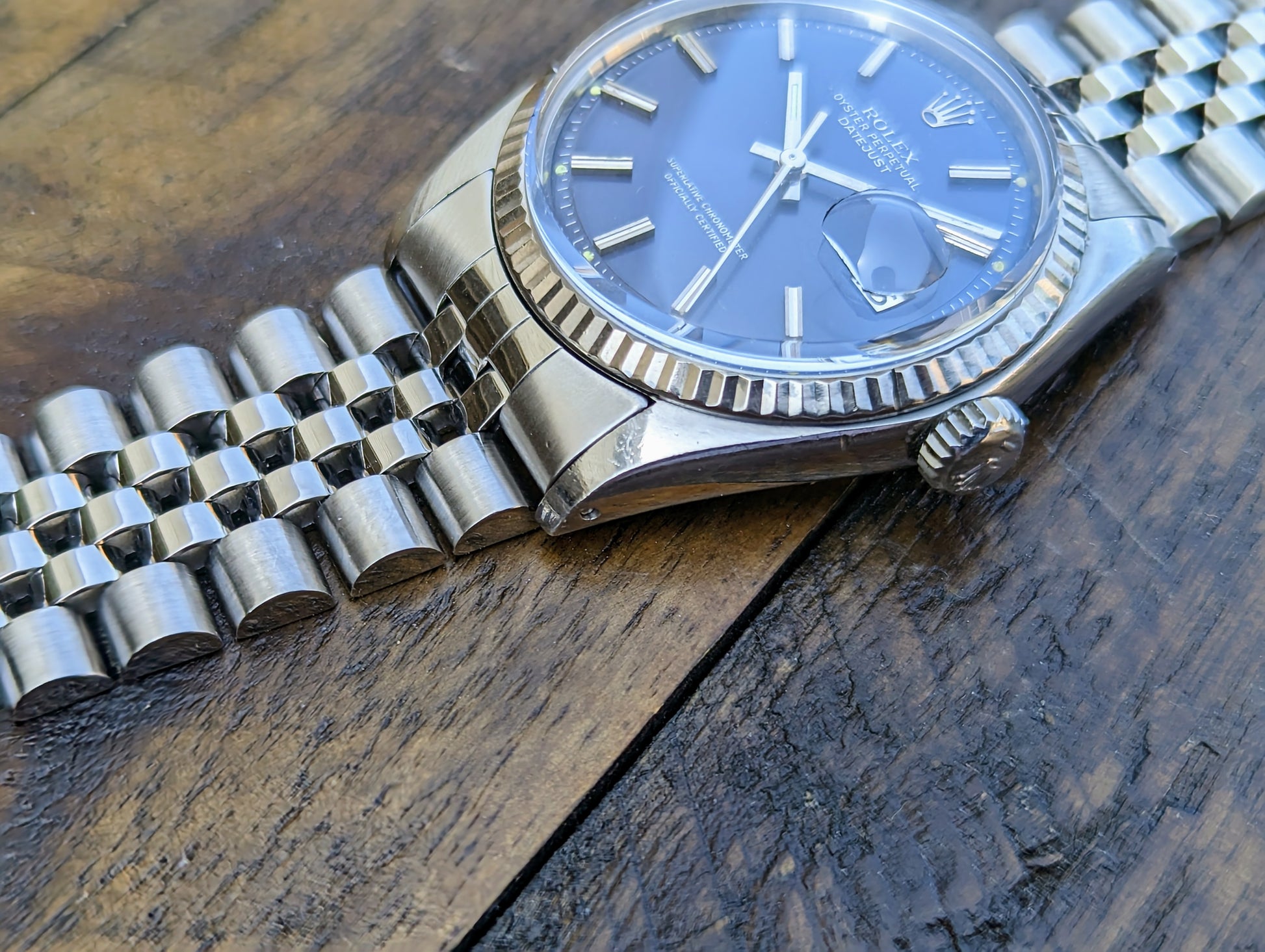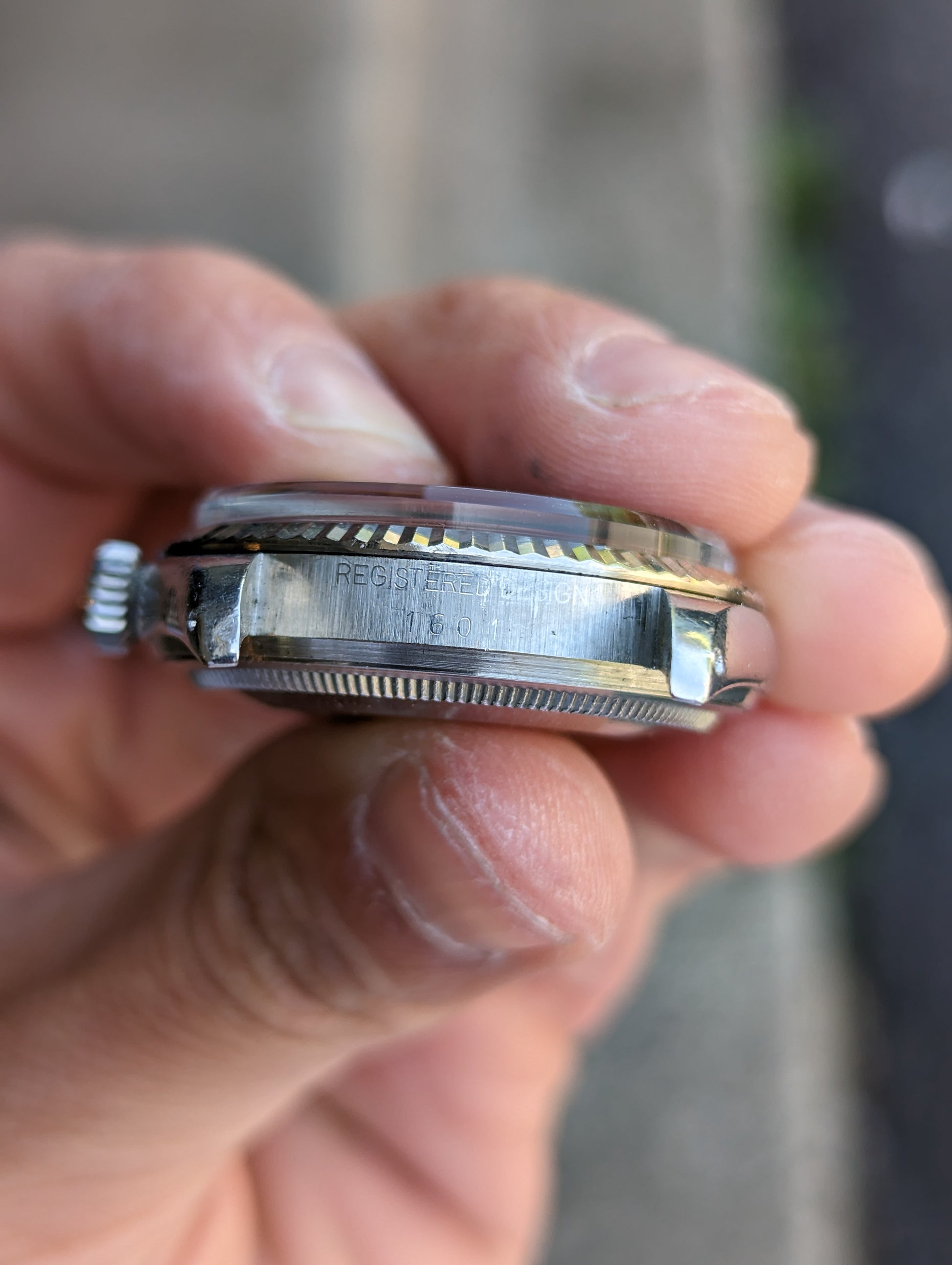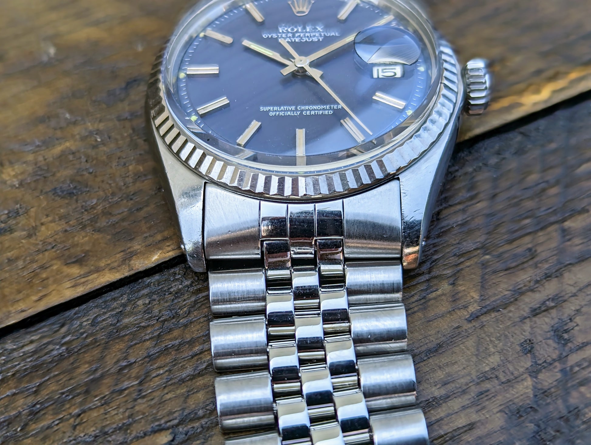 CASE: The previously polished 36mm steel case is in fair shape. The case has seen its fair share of polishing over the years. The case illustrates wear commensurate with a well loved watch over its 48 years. It is complete by a white gold fluted bezel. Please review the pictures as they are part of the description.
