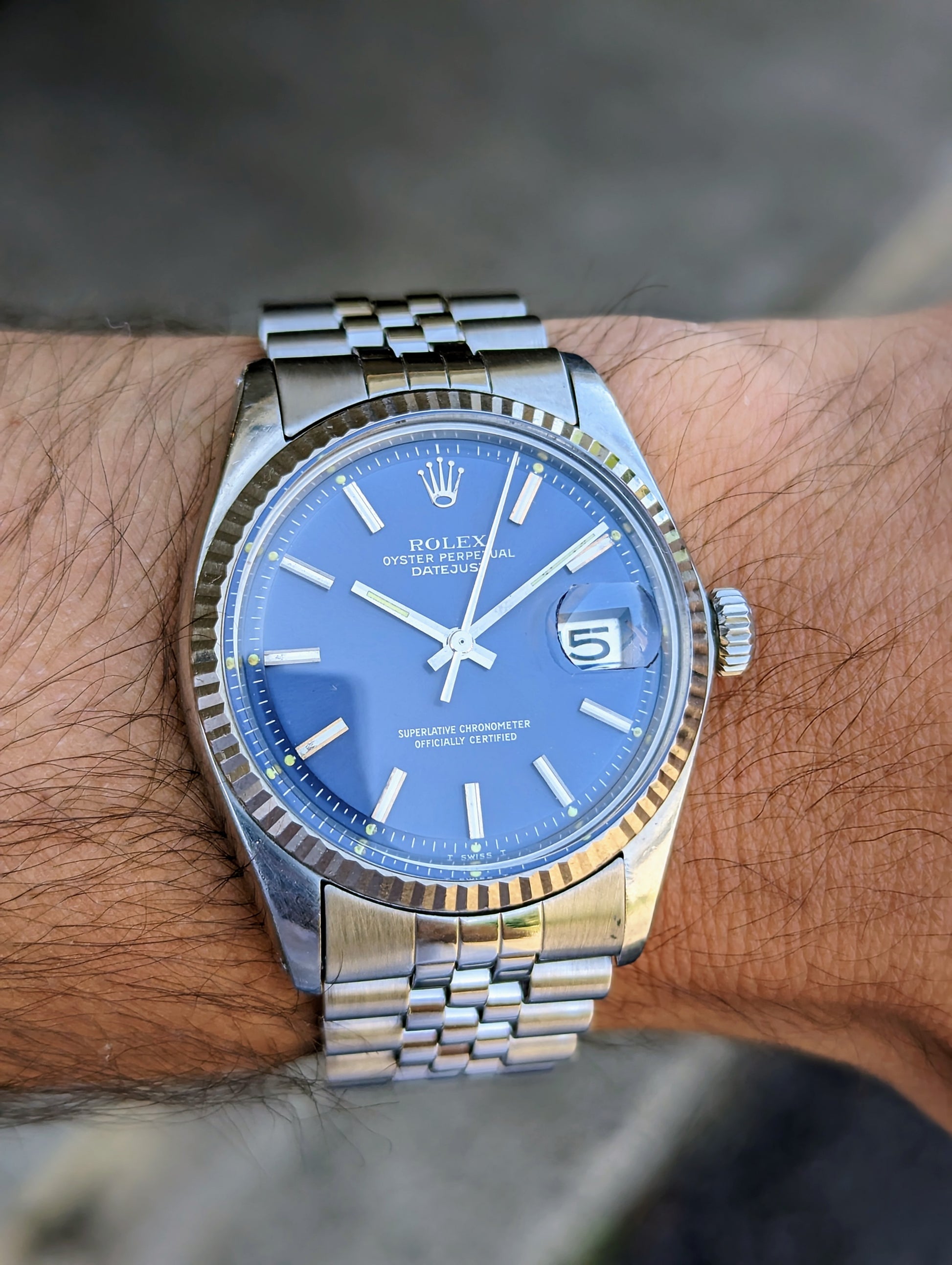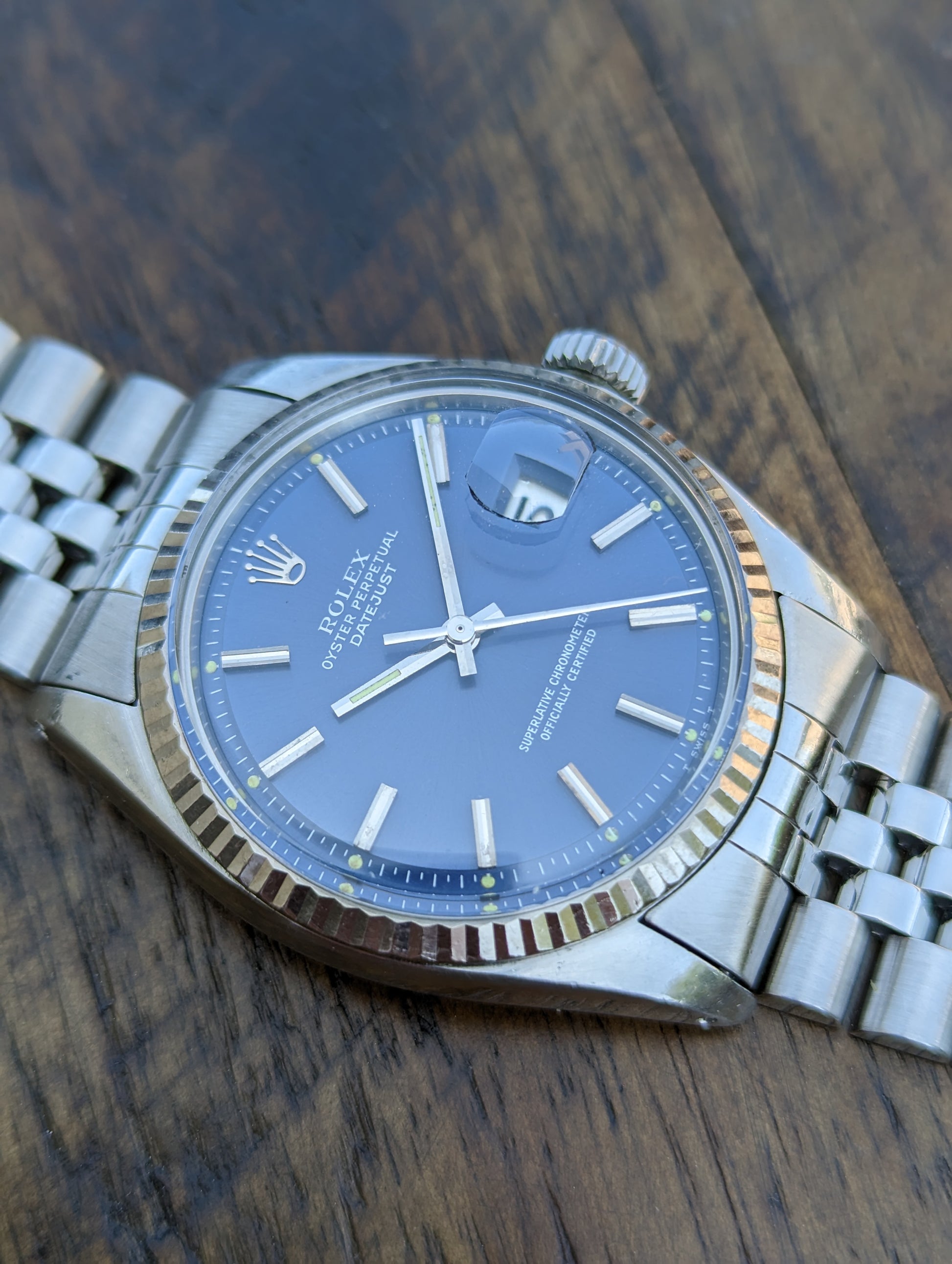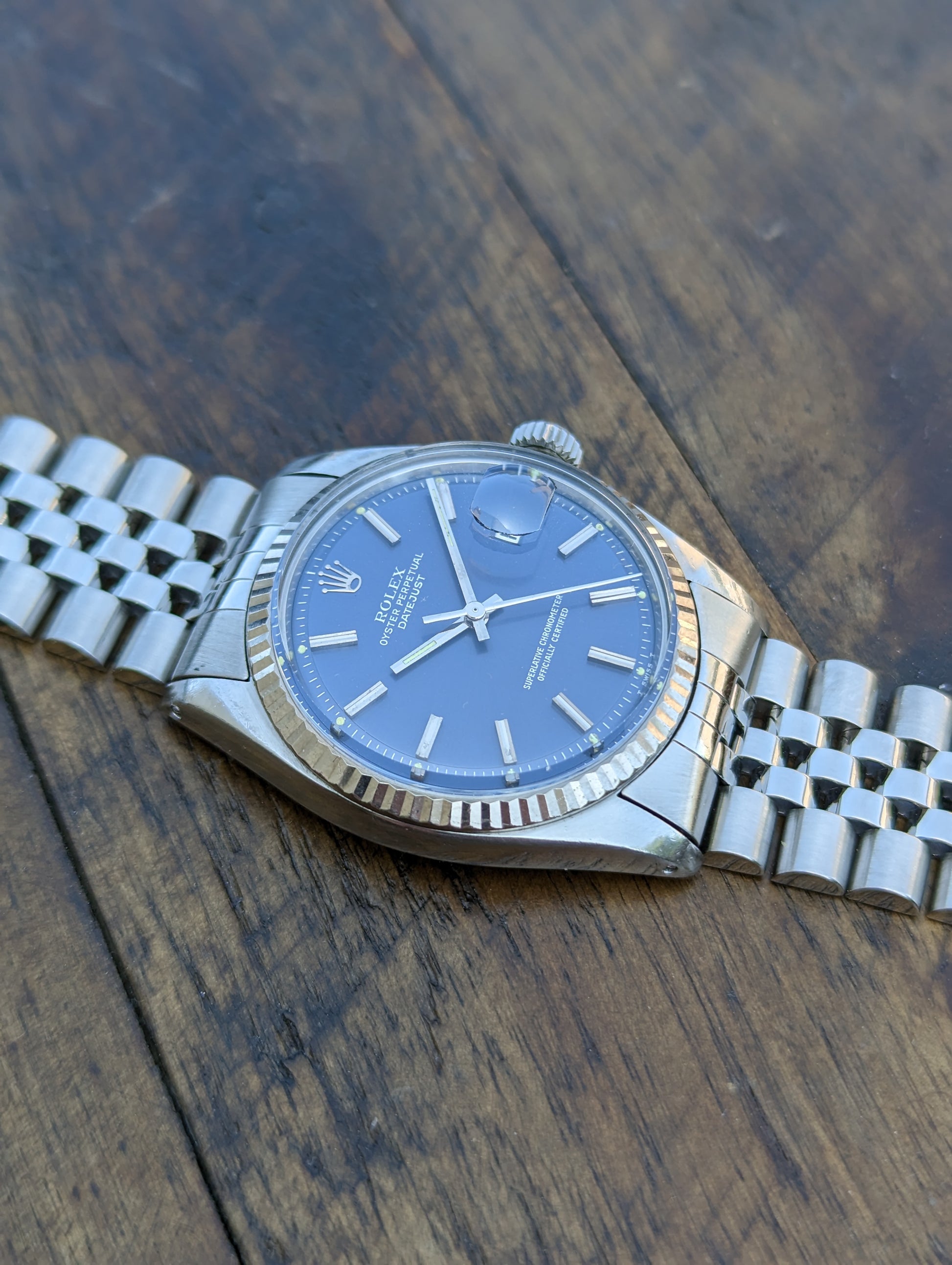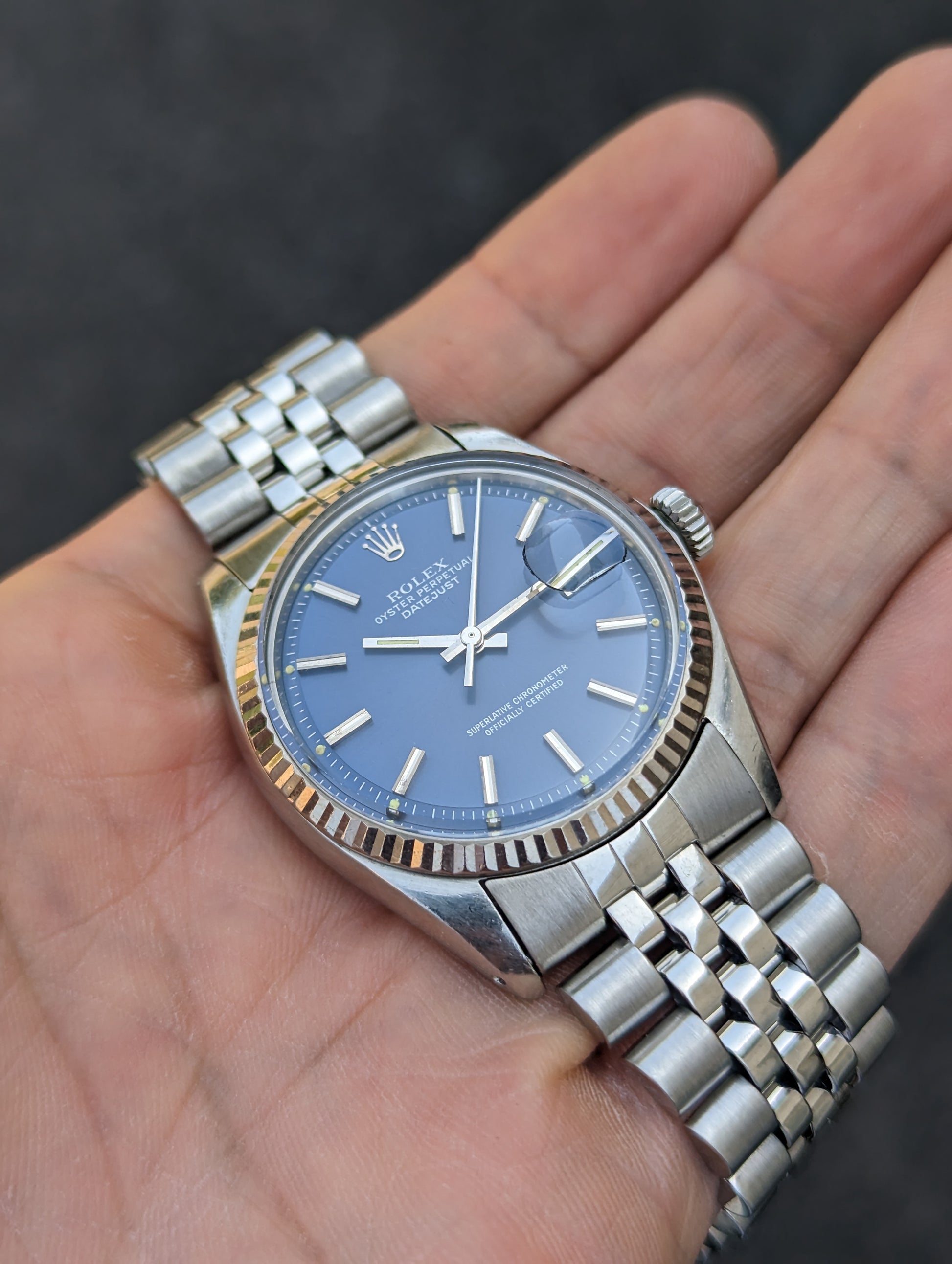 CASE: The previously polished 36mm steel case is in fair shape. The case has seen its fair share of polishing over the years. The case illustrates wear commensurate with a well loved watch over its 48 years. It is complete by a white gold fluted bezel. Please review the pictures as they are part of the description.