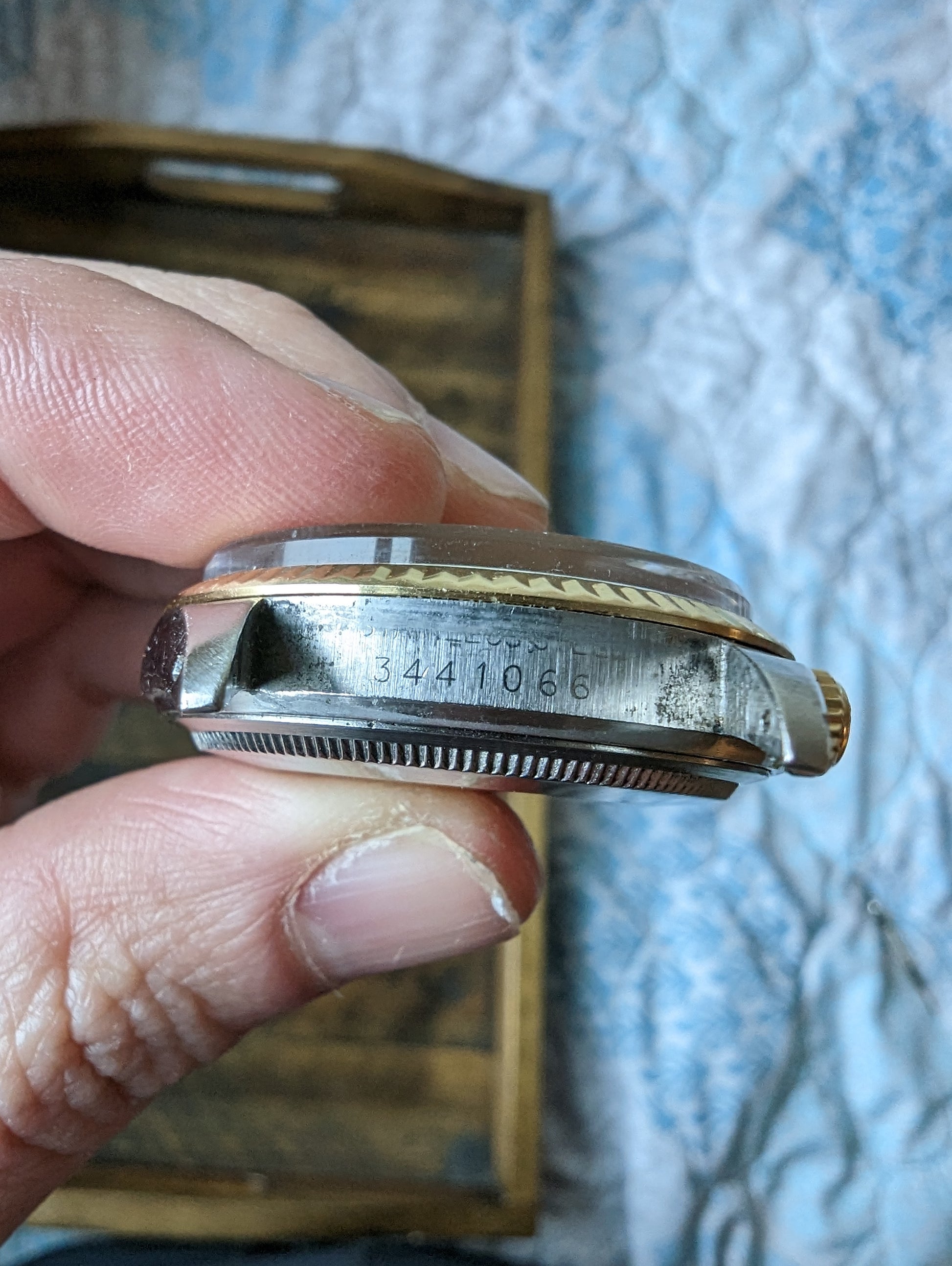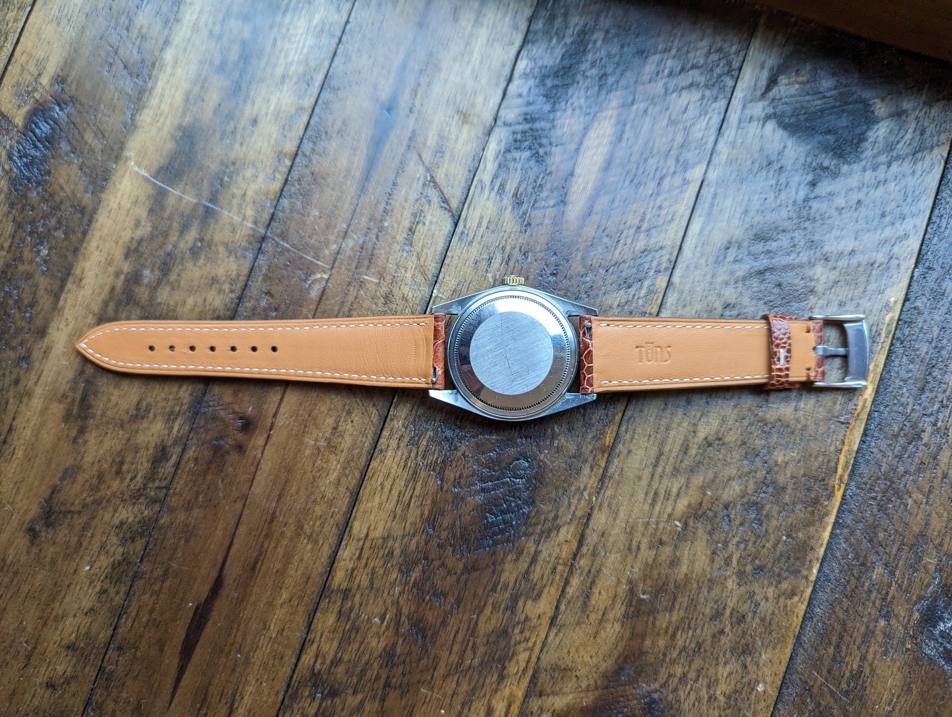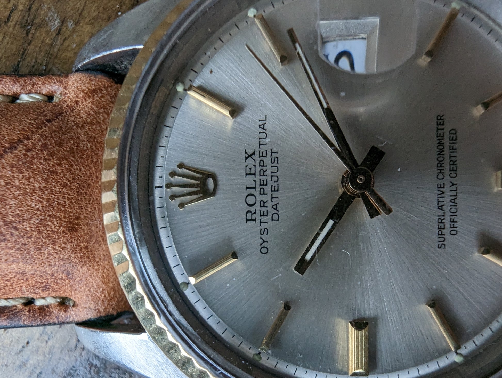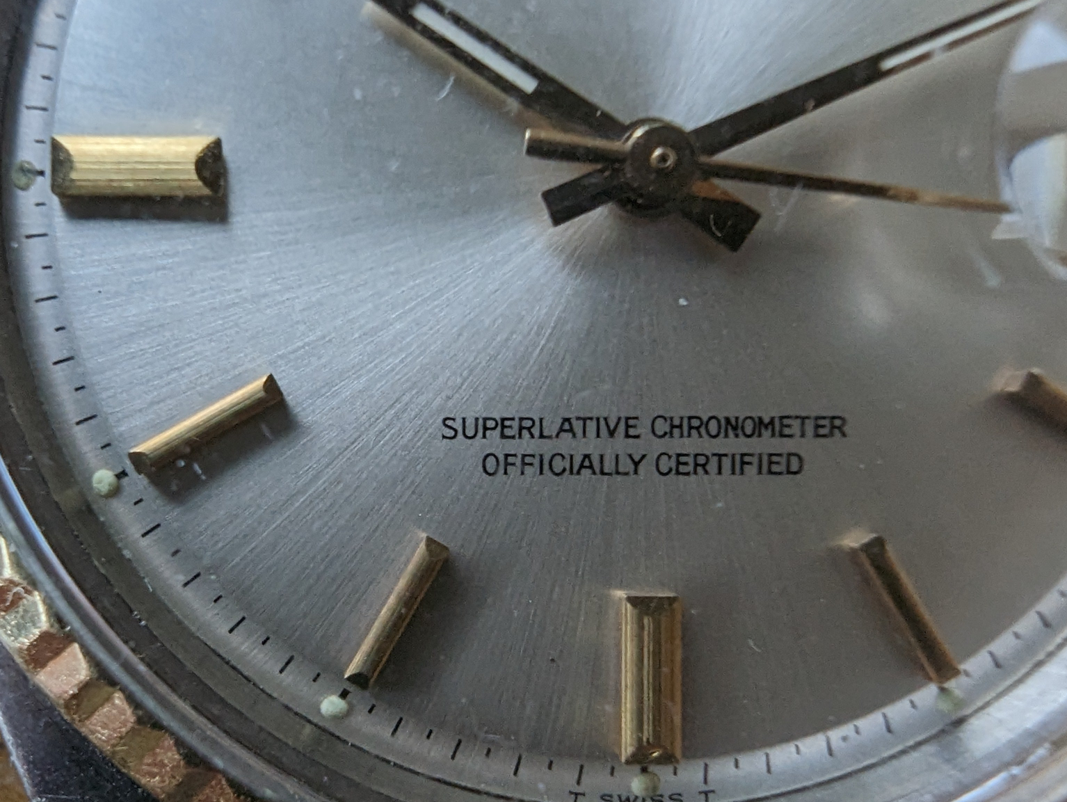 MOVEMENT: Rolex automatic self winding caliber 1570. 25 Jewels, 19800 frequency, 48h power reserve. Service history is unknown. The watch winds, sets and runs and is currently keeping good time. The watch was timed over 24 hours. The 24 hours included periods of wear and non wear and compared to atomic EST. The watch gained 10 seconds in 24 hours.Â