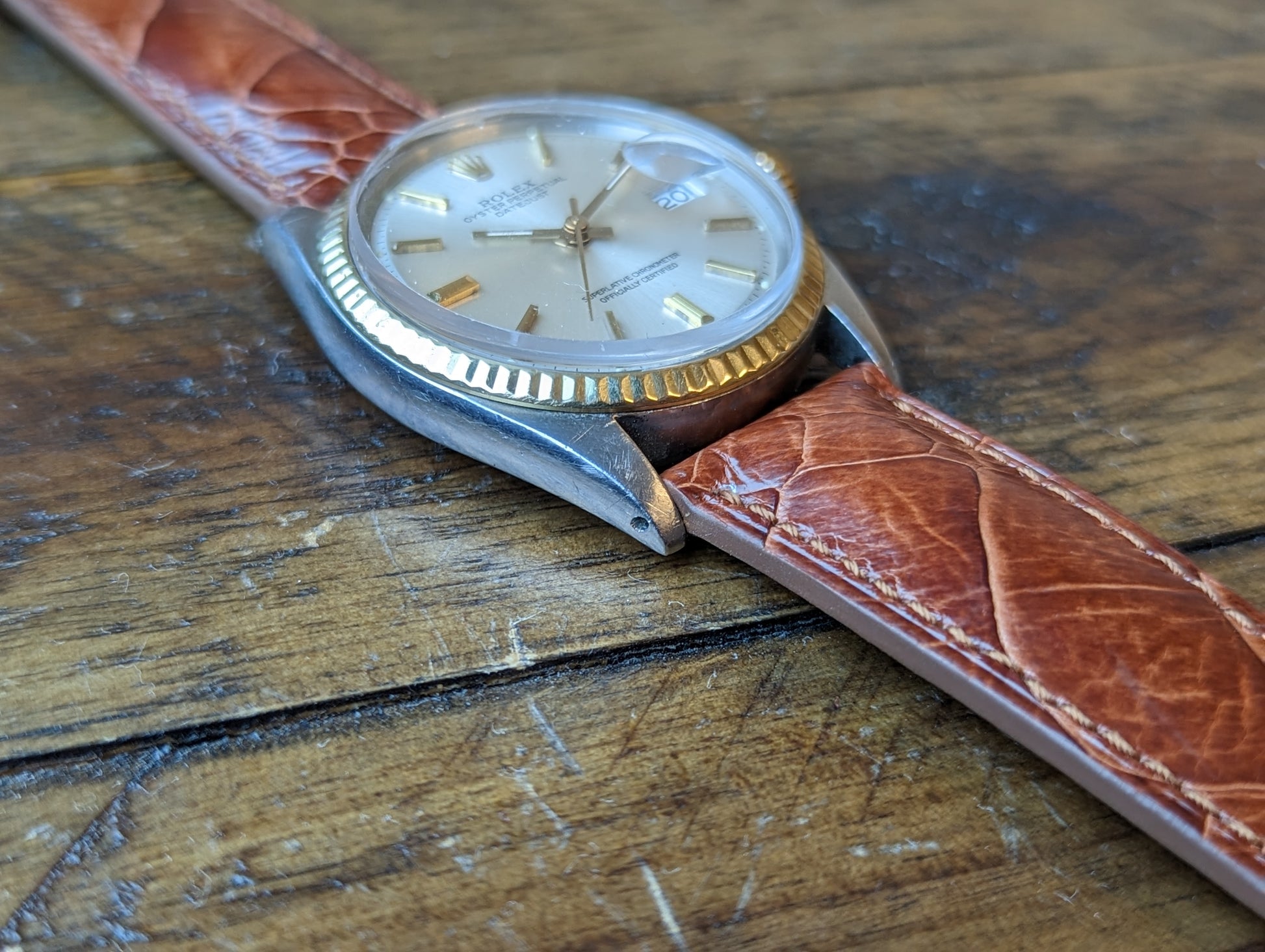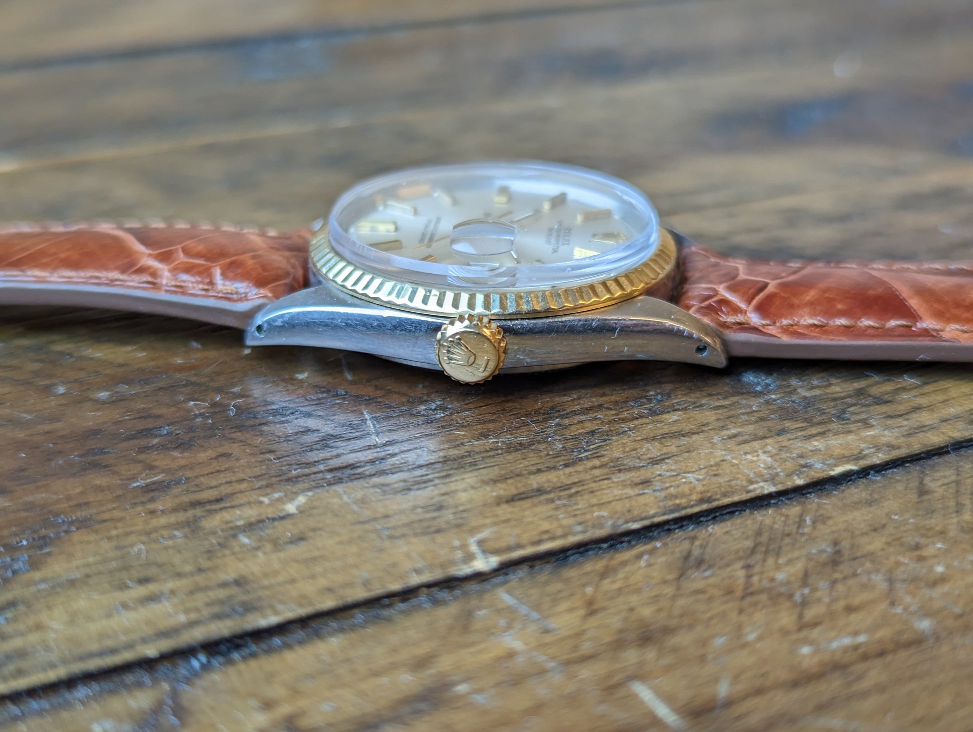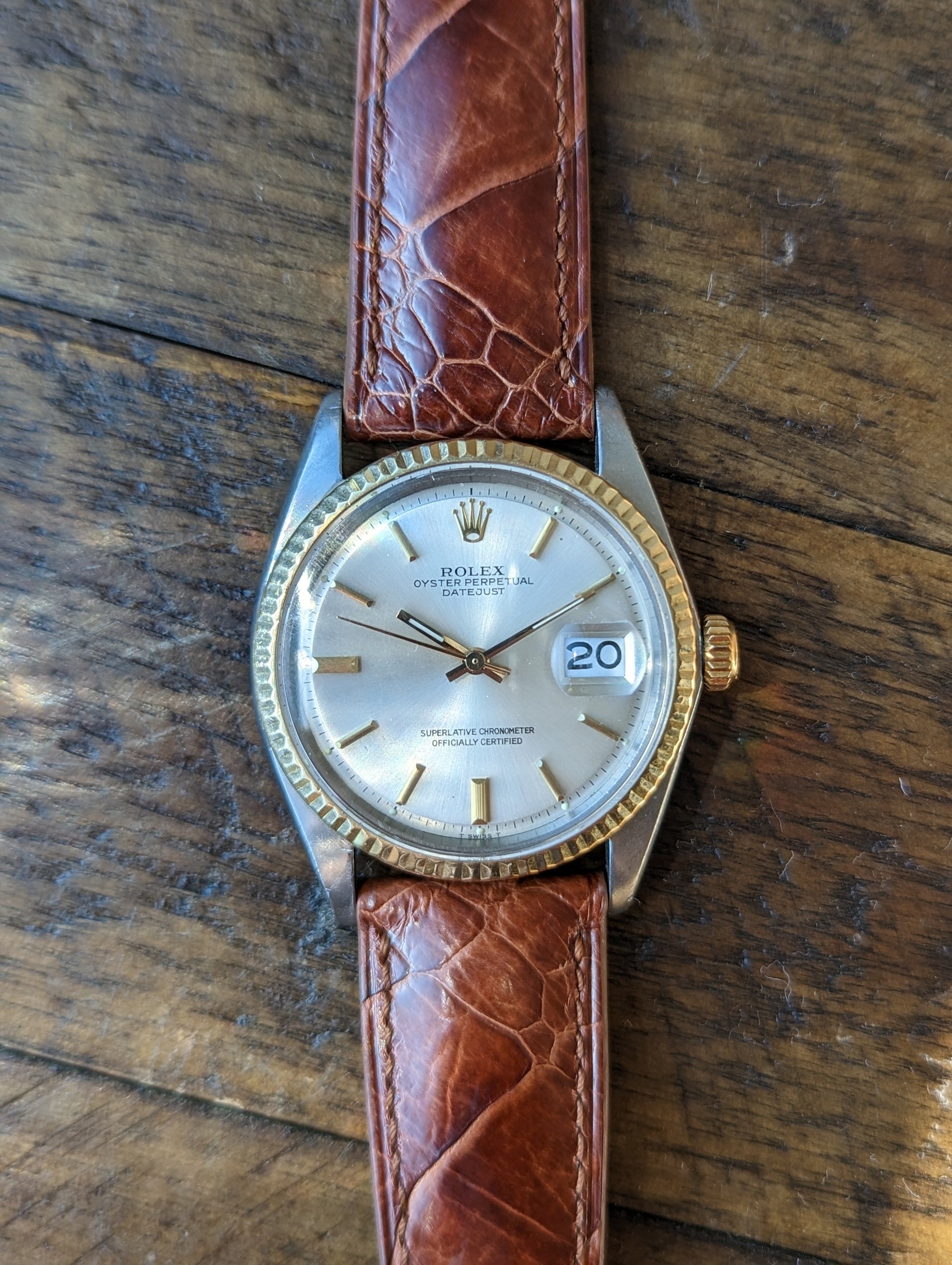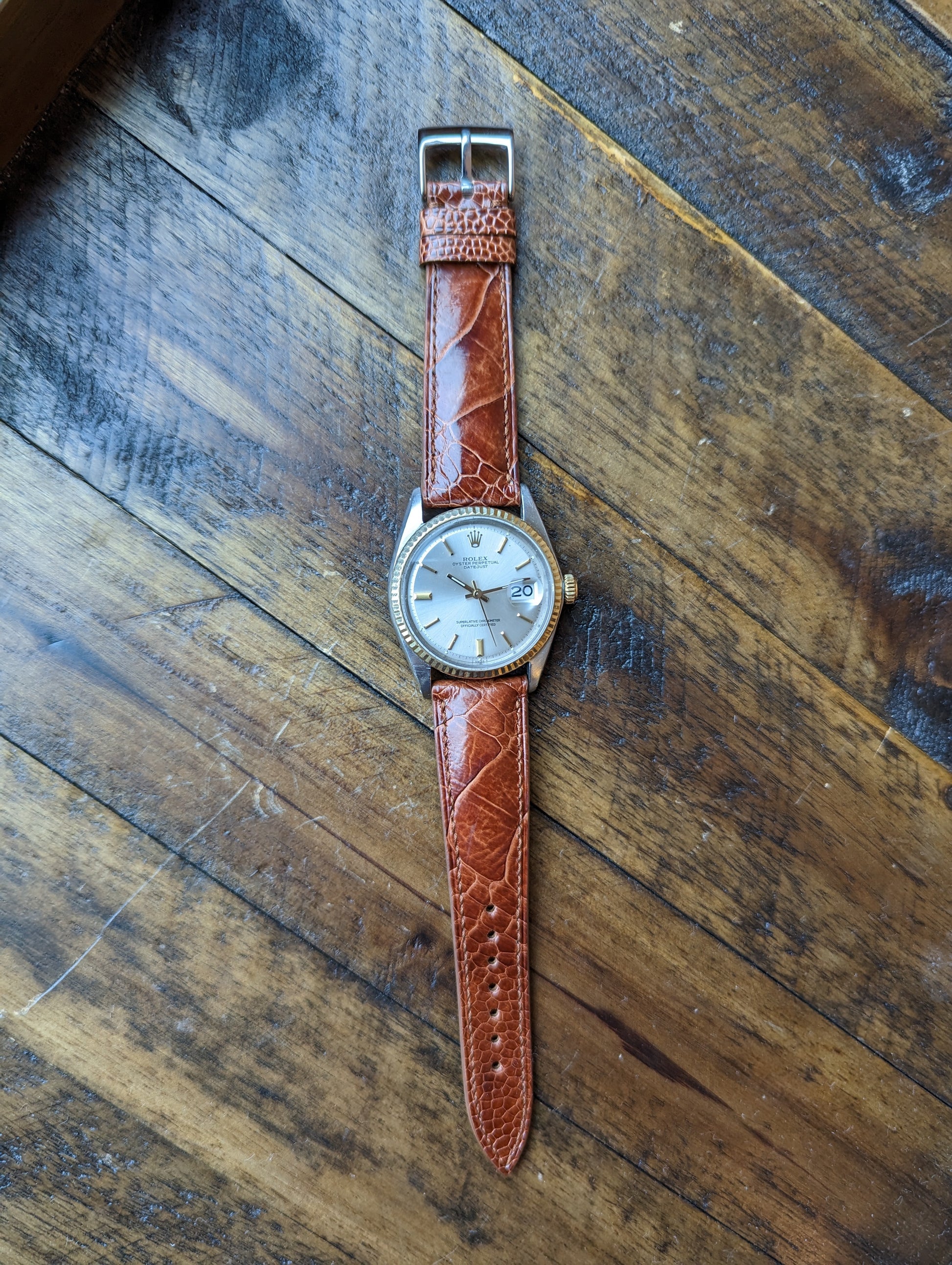 MOVEMENT: Rolex automatic self winding caliber 1570. 25 Jewels, 19800 frequency, 48h power reserve. Service history is unknown. The watch winds, sets and runs and is currently keeping good time. The watch was timed over 24 hours. The 24 hours included periods of wear and non wear and compared to atomic EST. The watch gained 10 seconds in 24 hours.Â