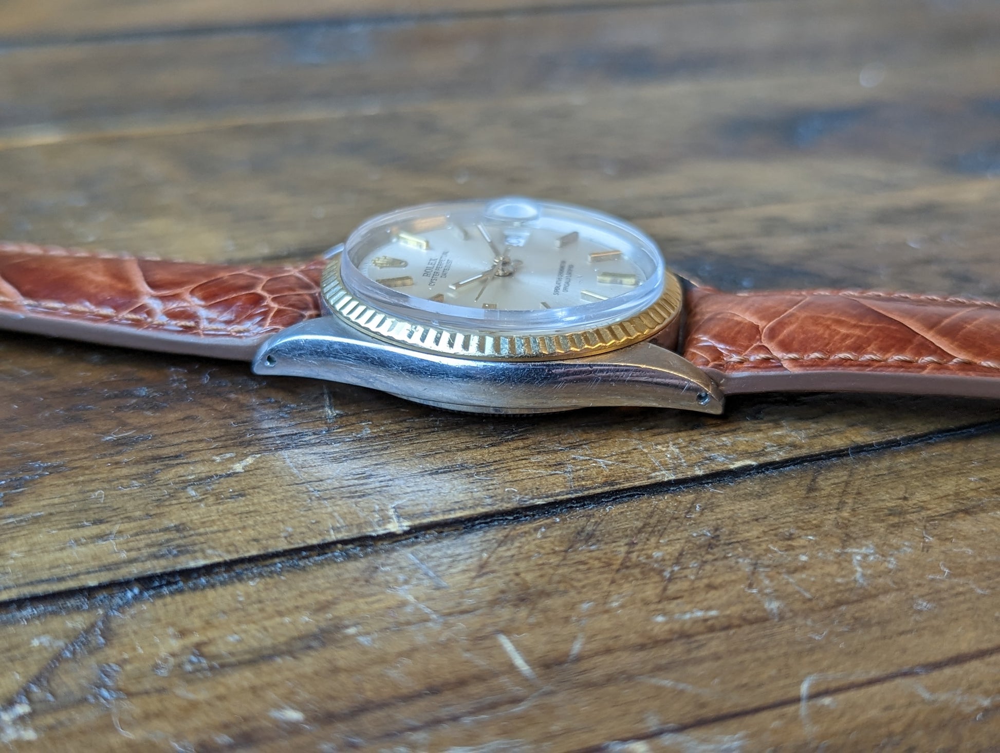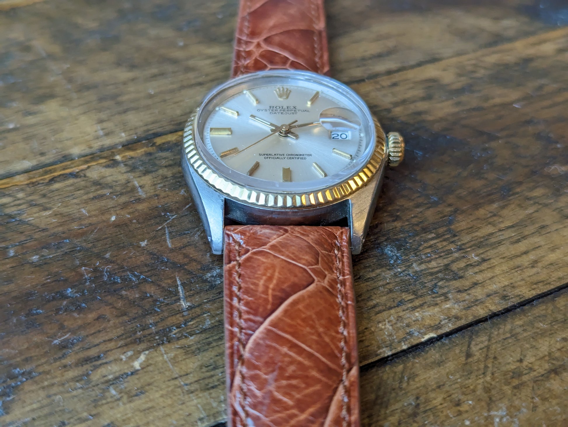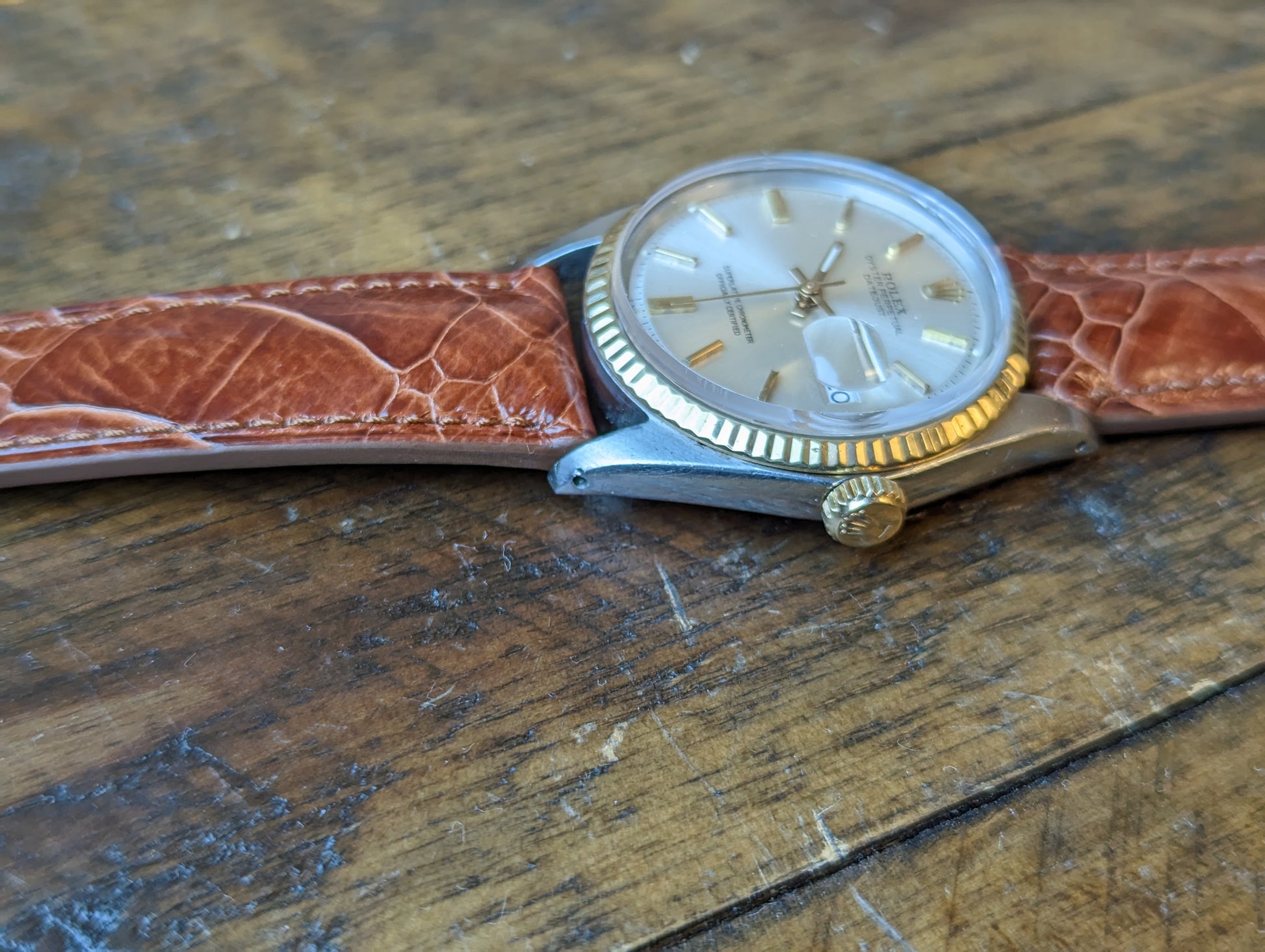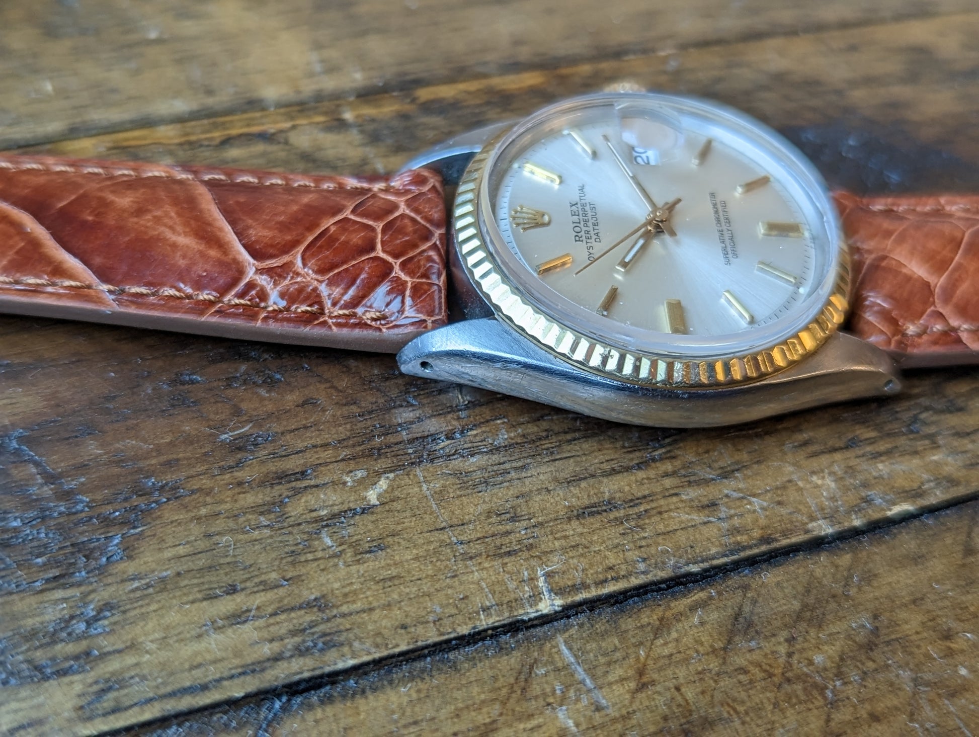 MOVEMENT: Rolex automatic self winding caliber 1570. 25 Jewels, 19800 frequency, 48h power reserve. Service history is unknown. The watch winds, sets and runs and is currently keeping good time. The watch was timed over 24 hours. The 24 hours included periods of wear and non wear and compared to atomic EST. The watch gained 10 seconds in 24 hours.Â