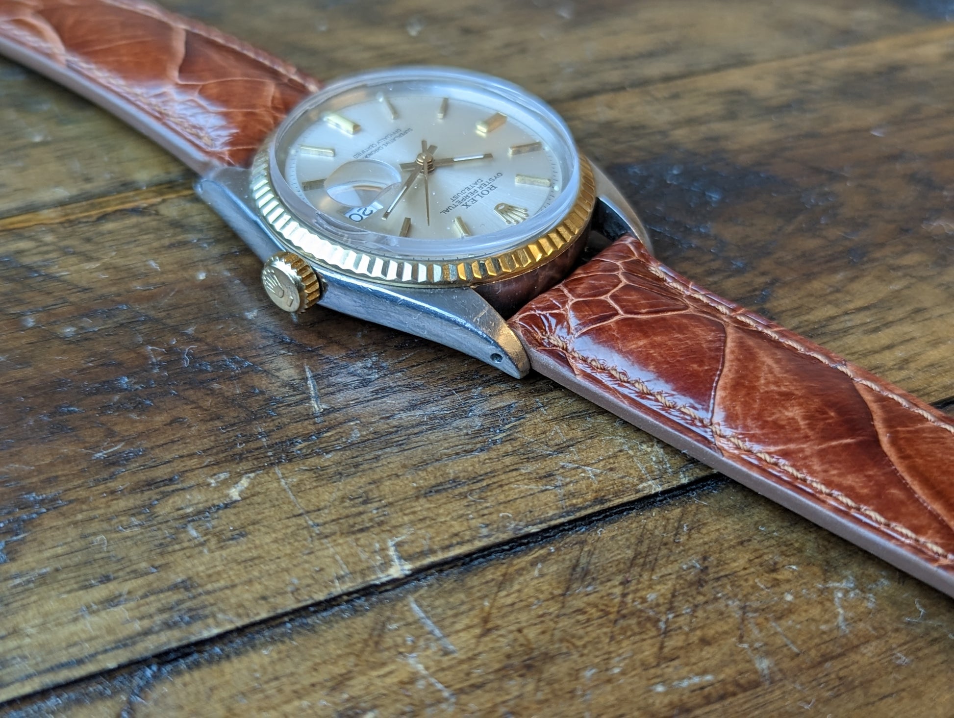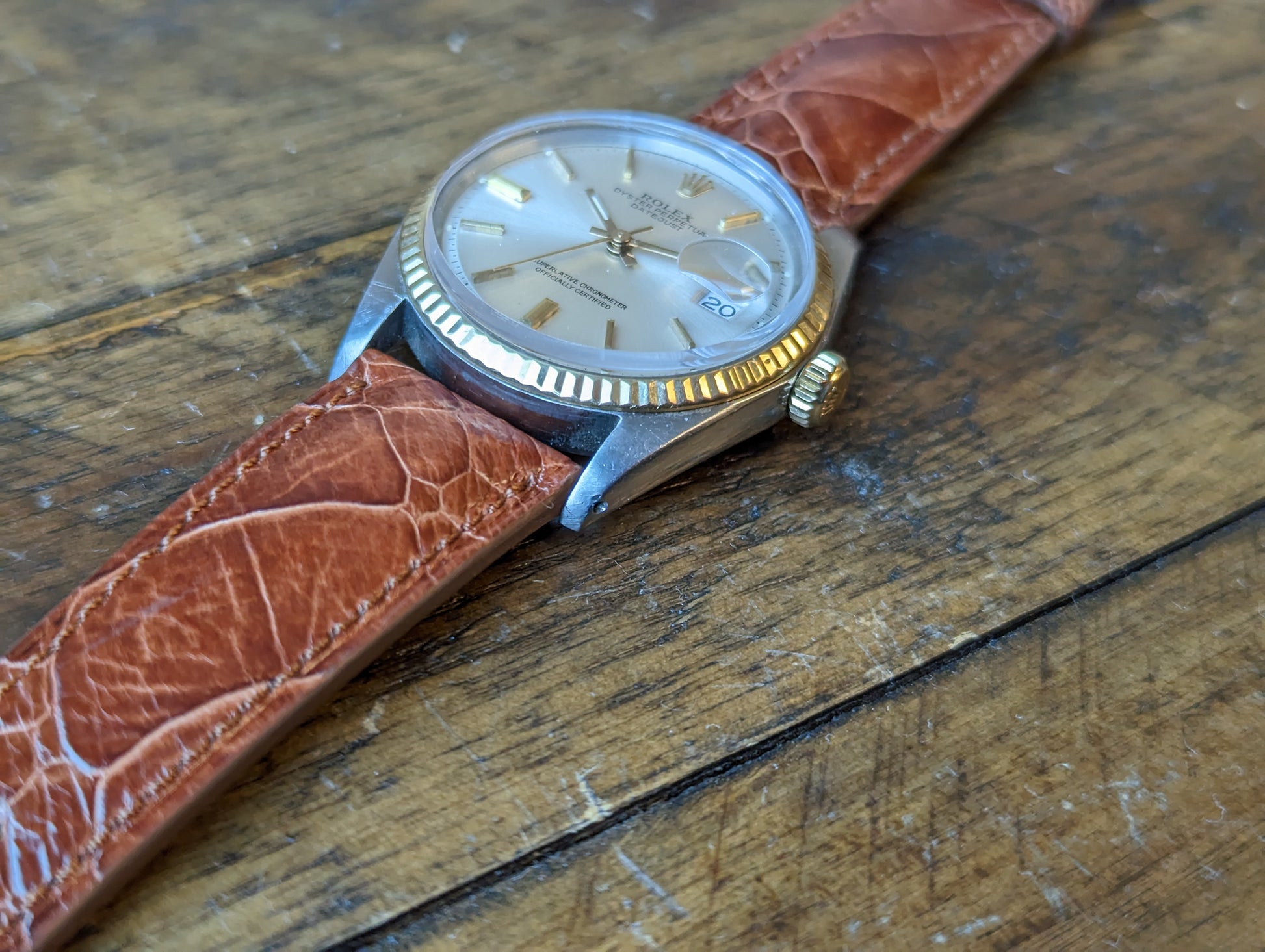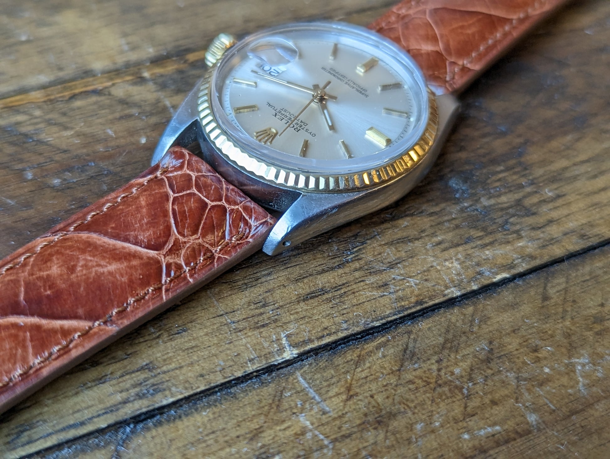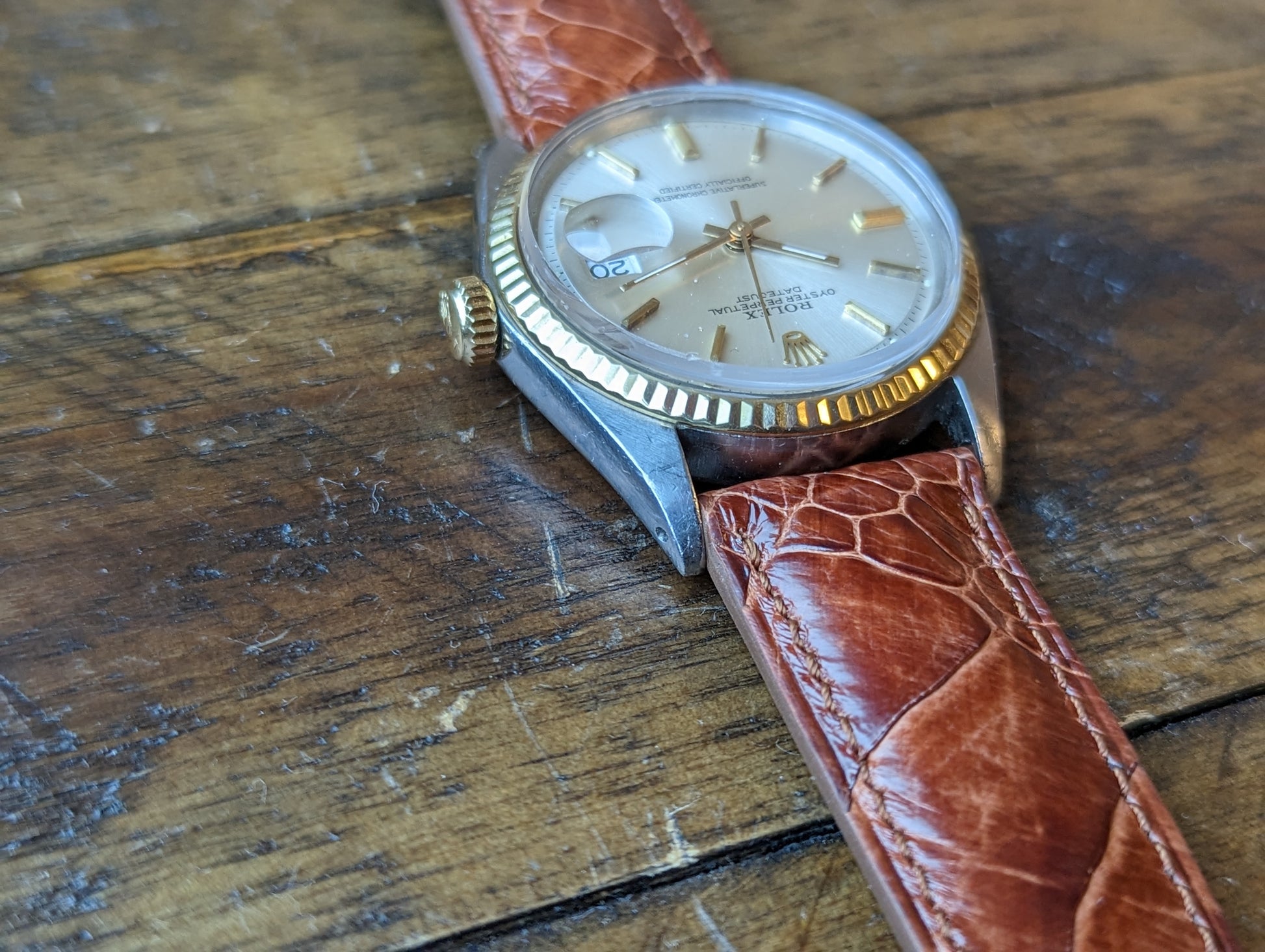MOVEMENT: Rolex automatic self winding caliber 1570. 25 Jewels, 19800 frequency, 48h power reserve. Service history is unknown. The watch winds, sets and runs and is currently keeping good time. The watch was timed over 24 hours. The 24 hours included periods of wear and non wear and compared to atomic EST. The watch gained 10 seconds in 24 hours.Â