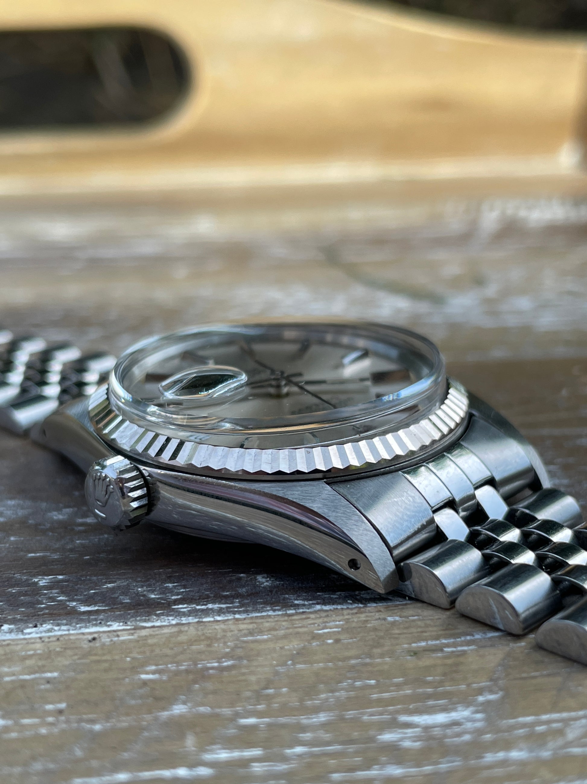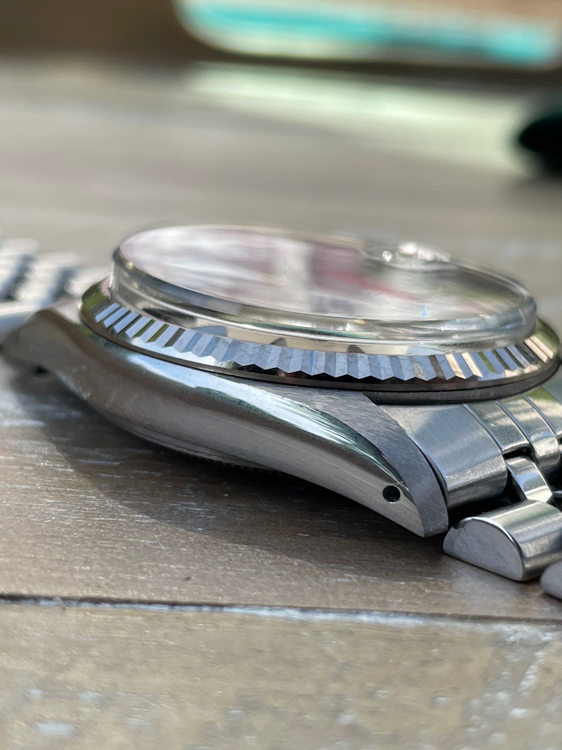 CASE: The 36mm case has recently been polished and is in excellent condition. The acrylic crystal is in great condition and is free from any scratches or marks. The white gold fluted bezel is in good condition.Â