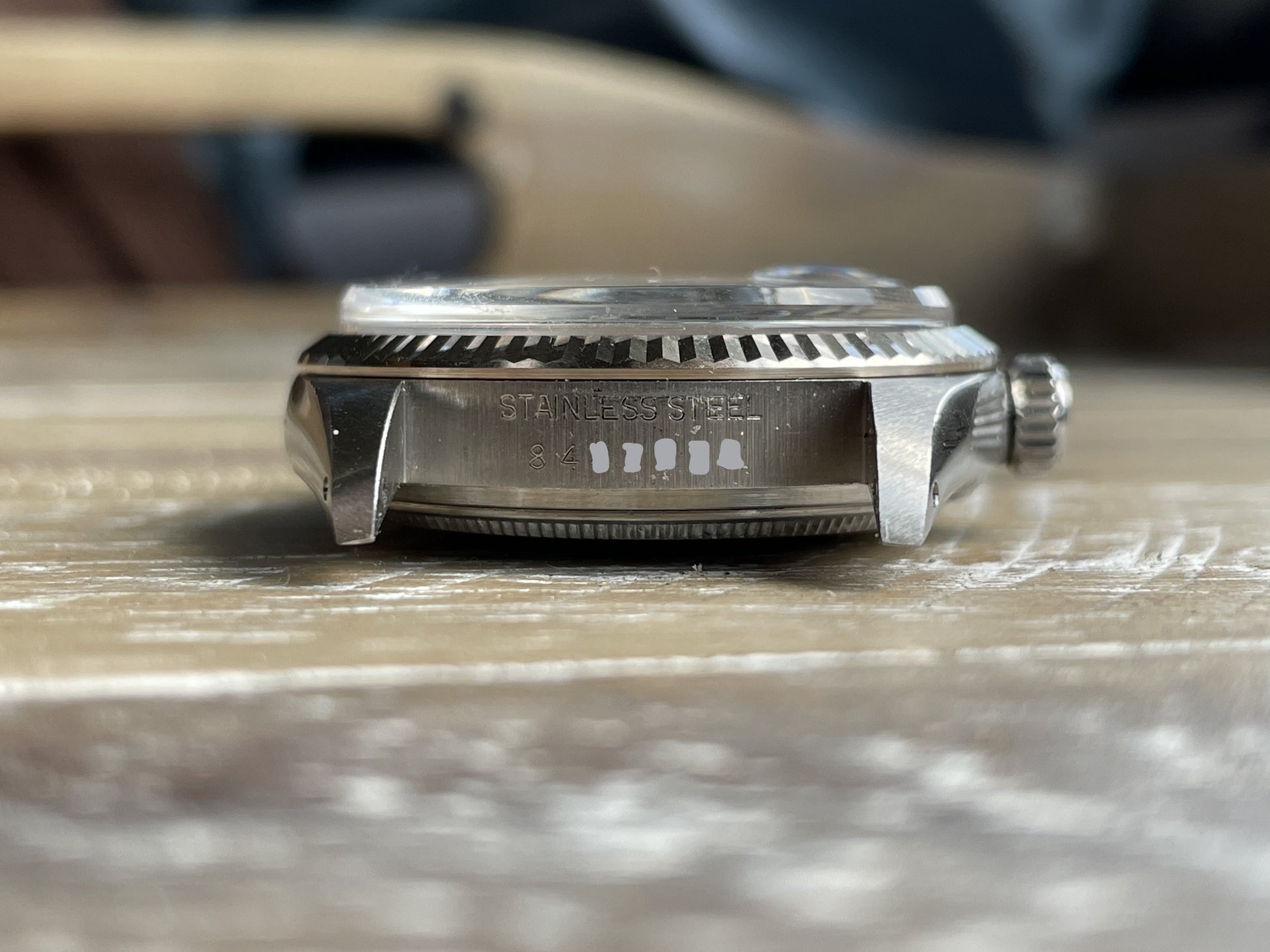 DIAL: The original original silver sunburst dial is in great condition. The dial appears to be free of any marks or staining. The lume plots have developed a charming patina and have aged to a beautiful cream that match the hands perfectly. There is slight oxidation on the hour markers and the seconds hand.Â