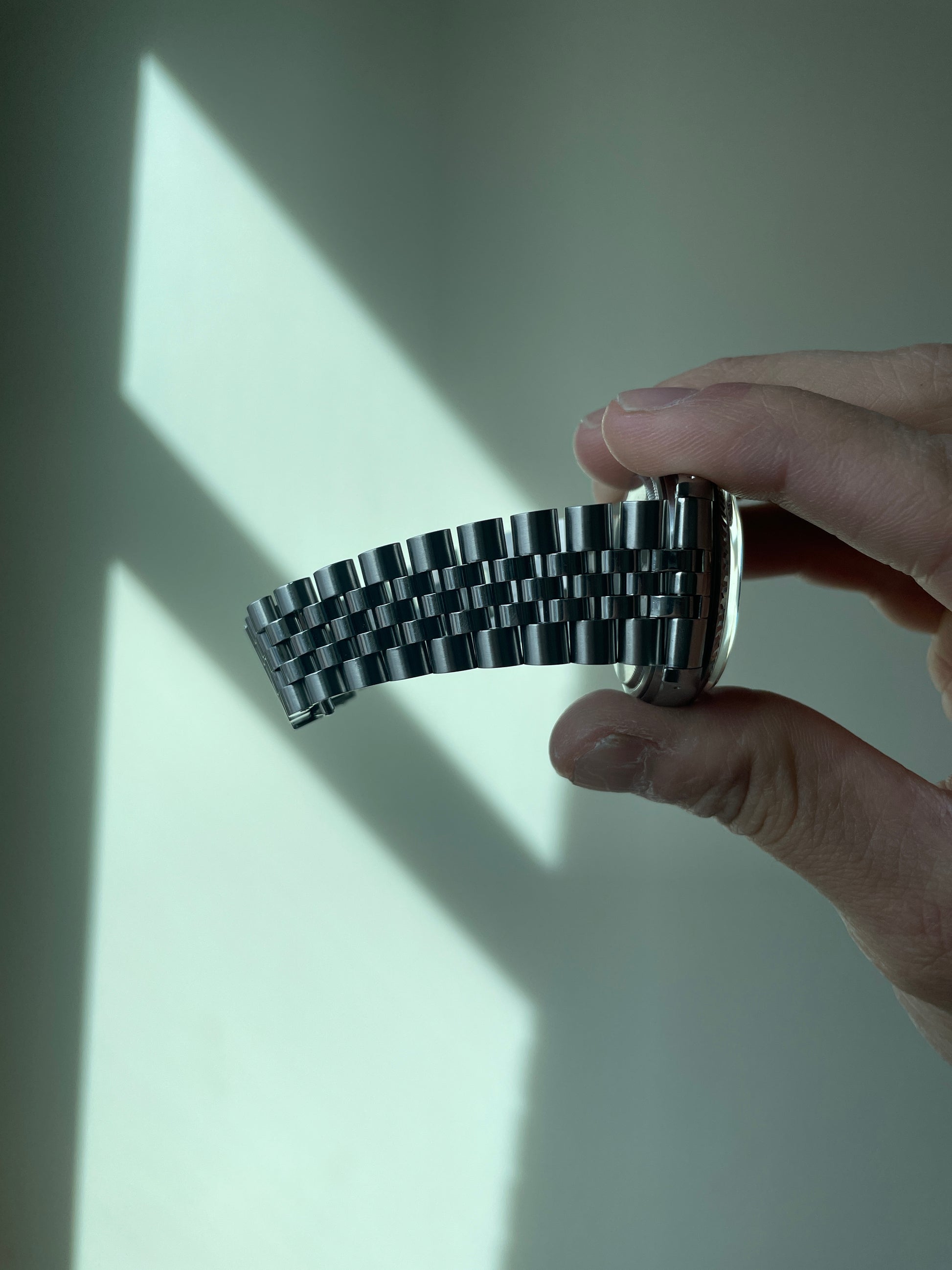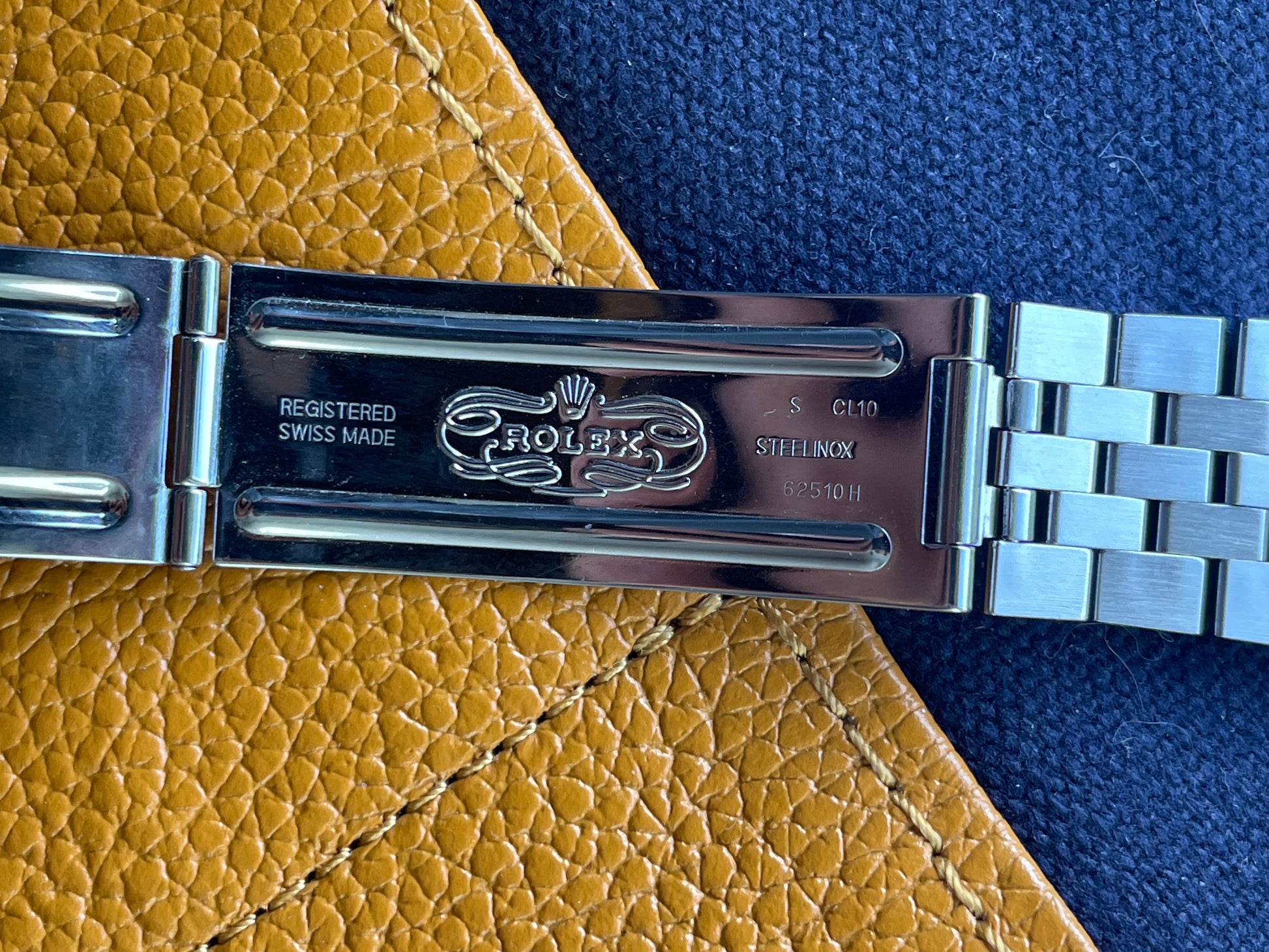 BRACELET: The Jubilee bracelet has recently returned from a fresh polish and is in excellent condition showing only very minimal wear. The details are as follows: 62510H, 22 links, Code CL10, 2004. 555 end links. Min-Mod stretch.