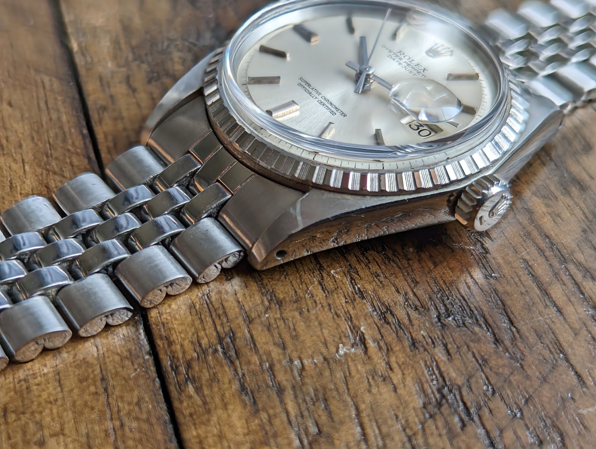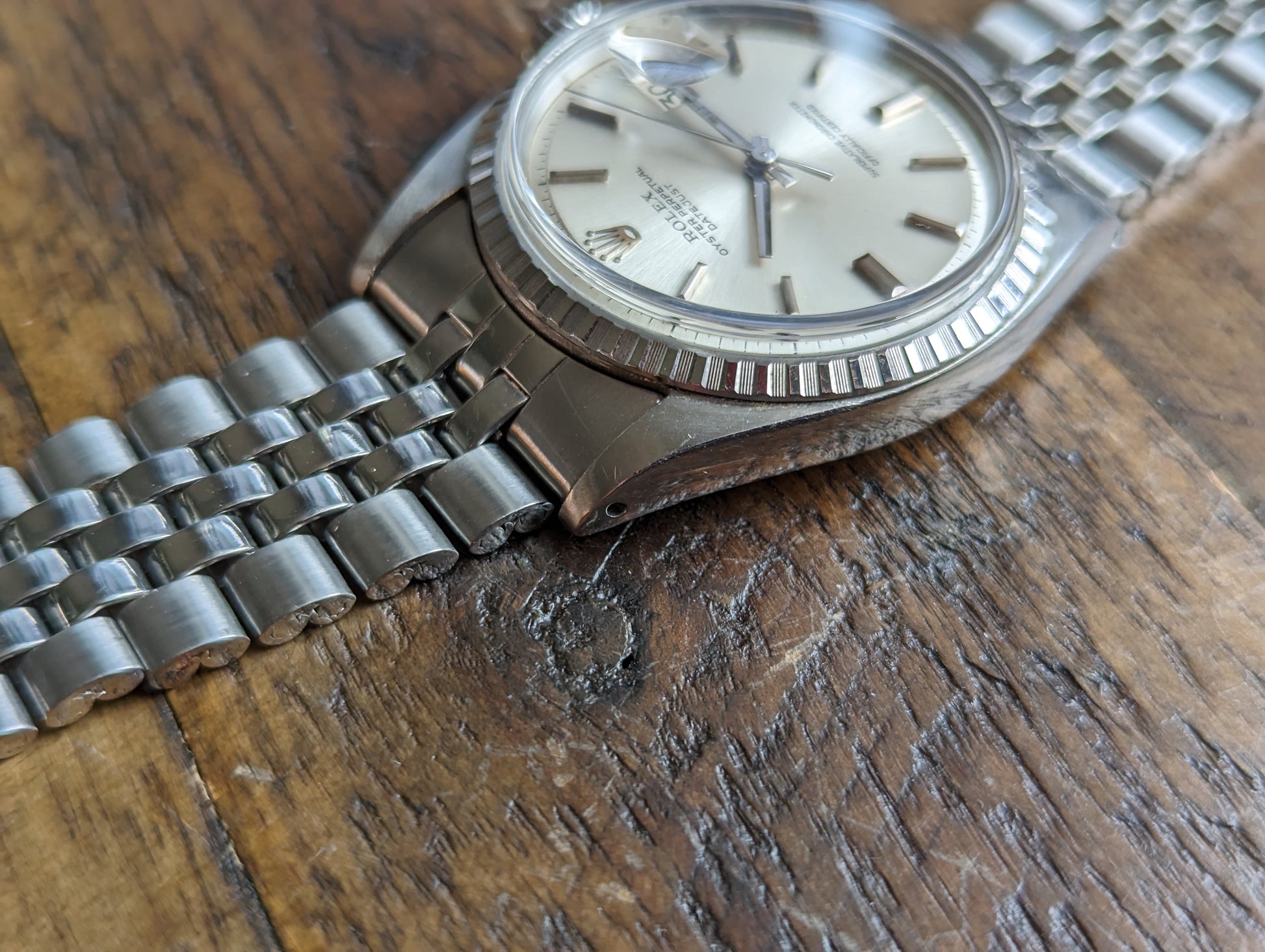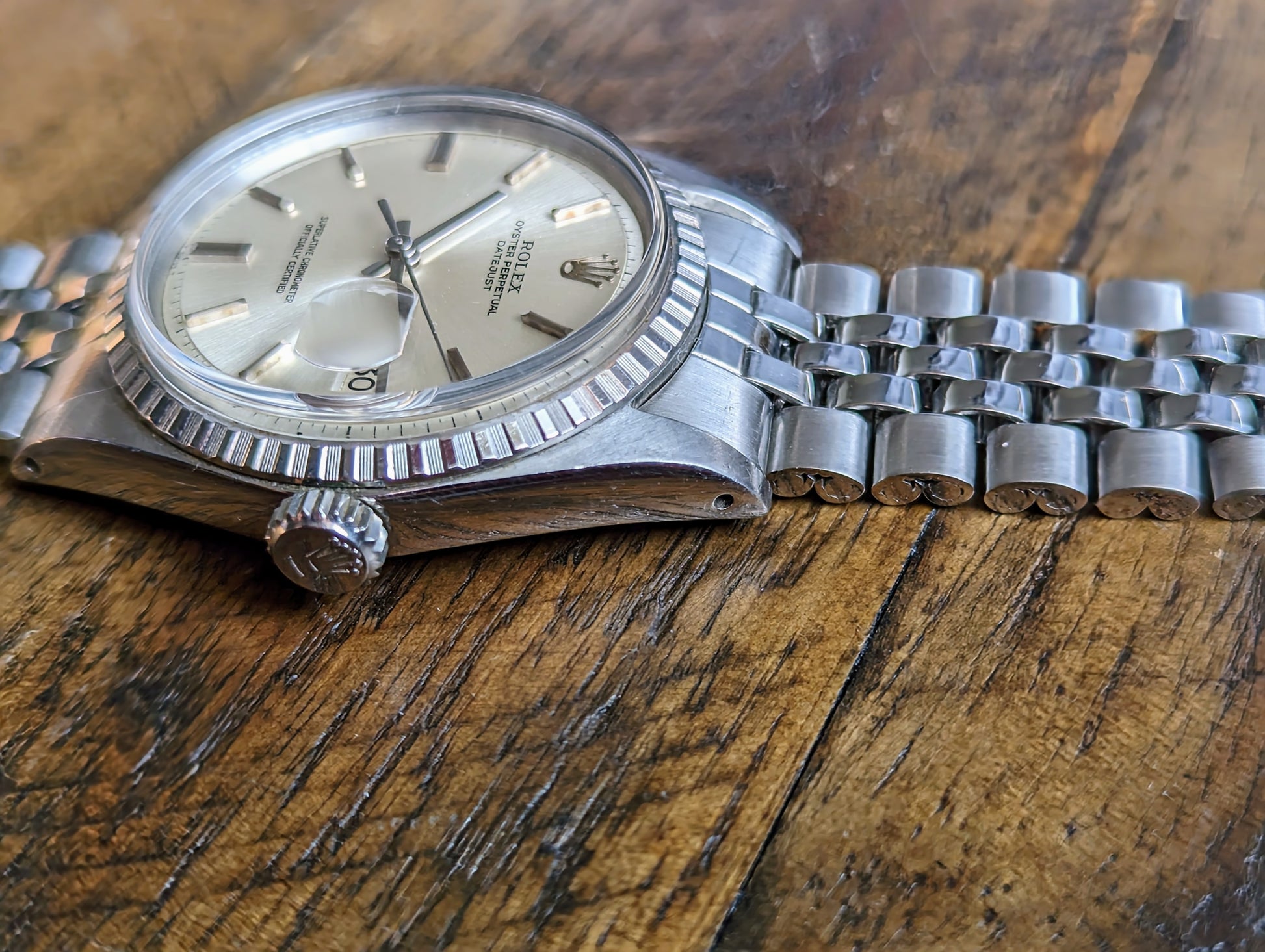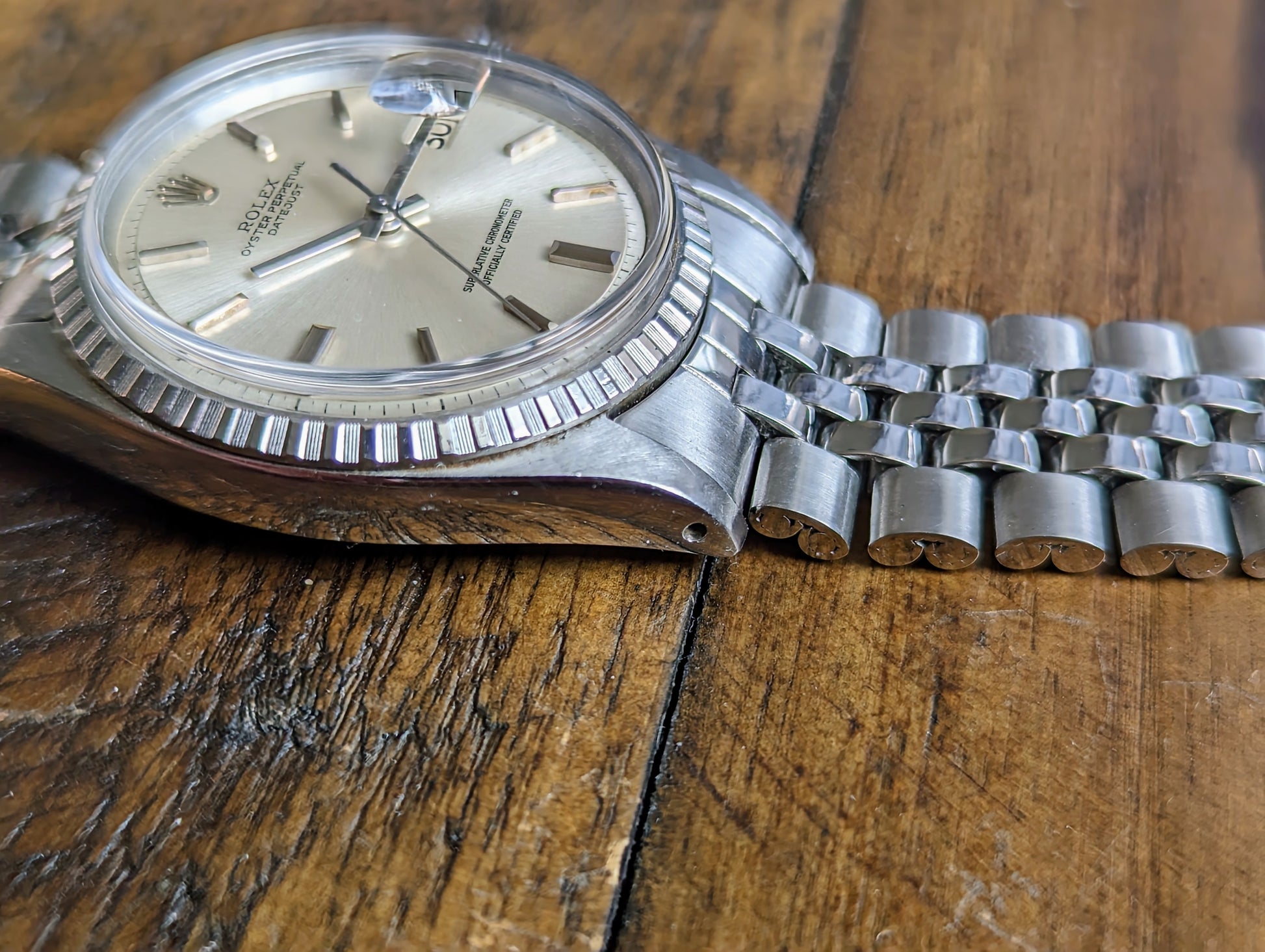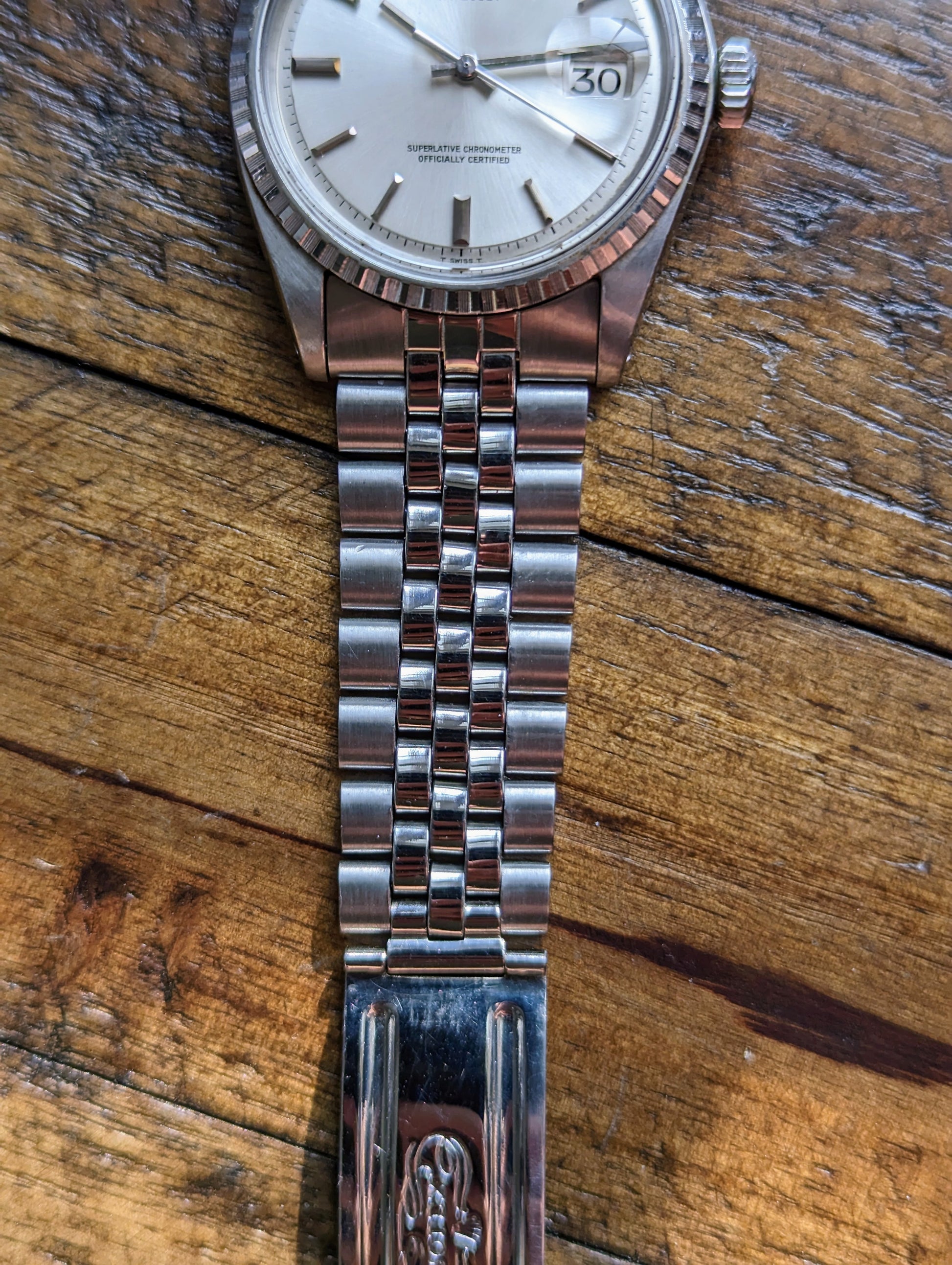 BRACELET: Comes on the original, folded link jubilee bracelet. The bracelet has just returned from polishing and is in excellent condition sporting minimal wear from use. It has an original, Rolex, service clasp that was installed on the bracelet during the watches last service.