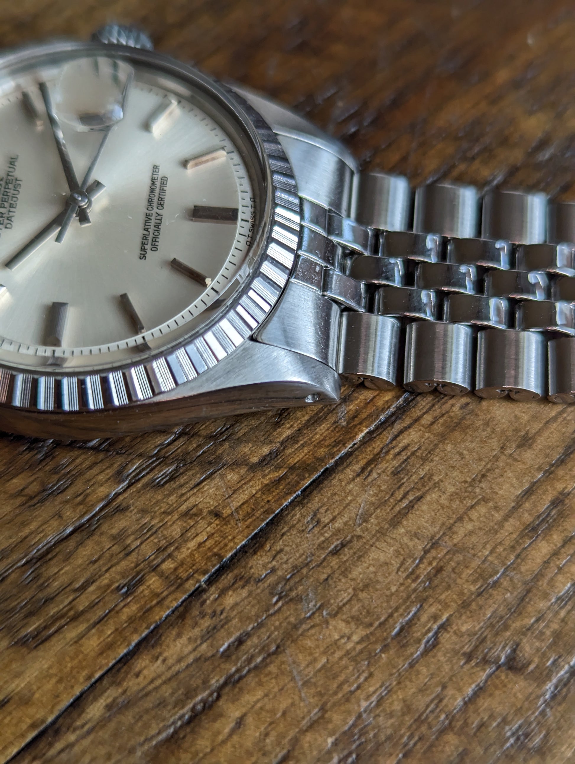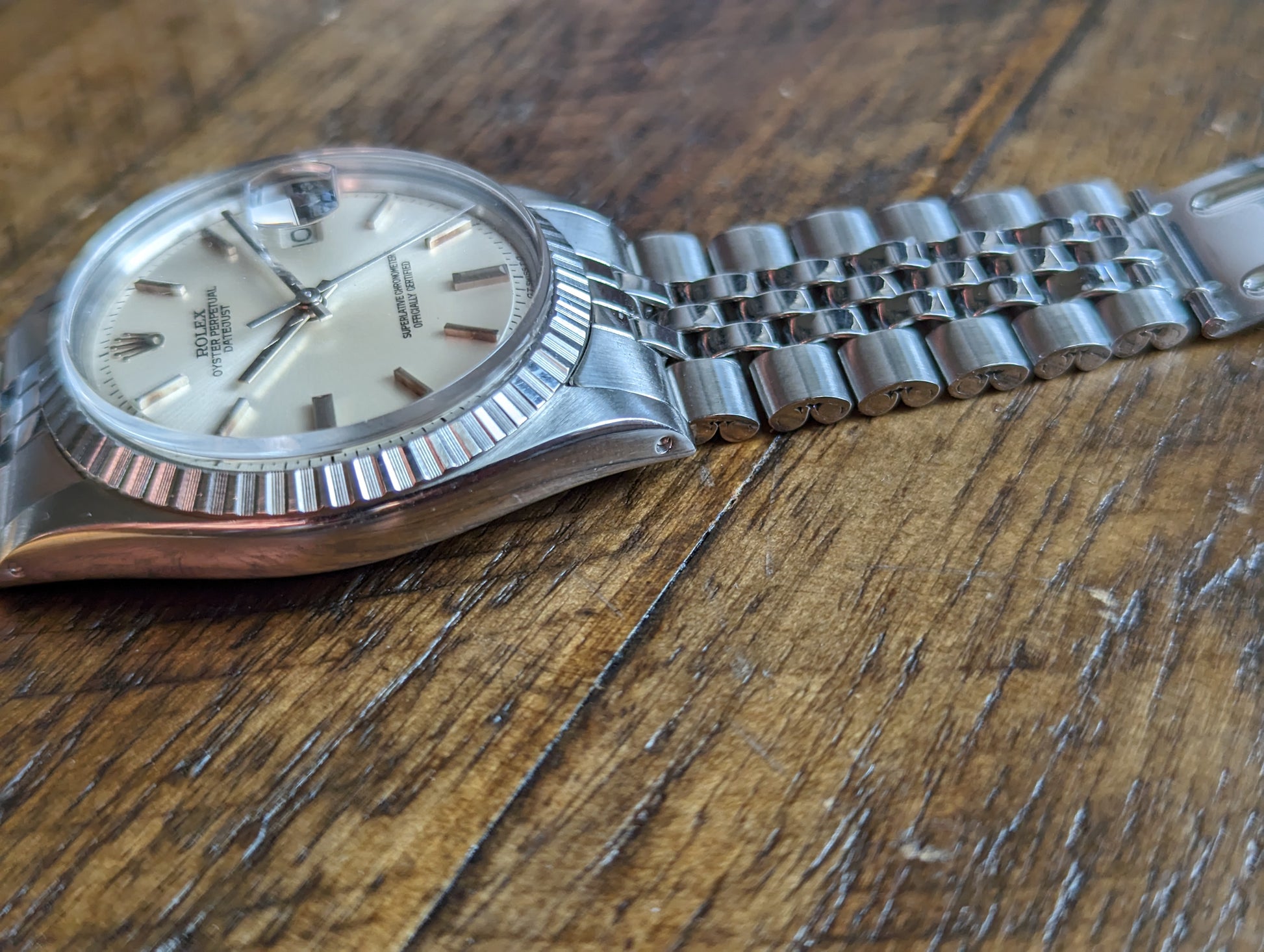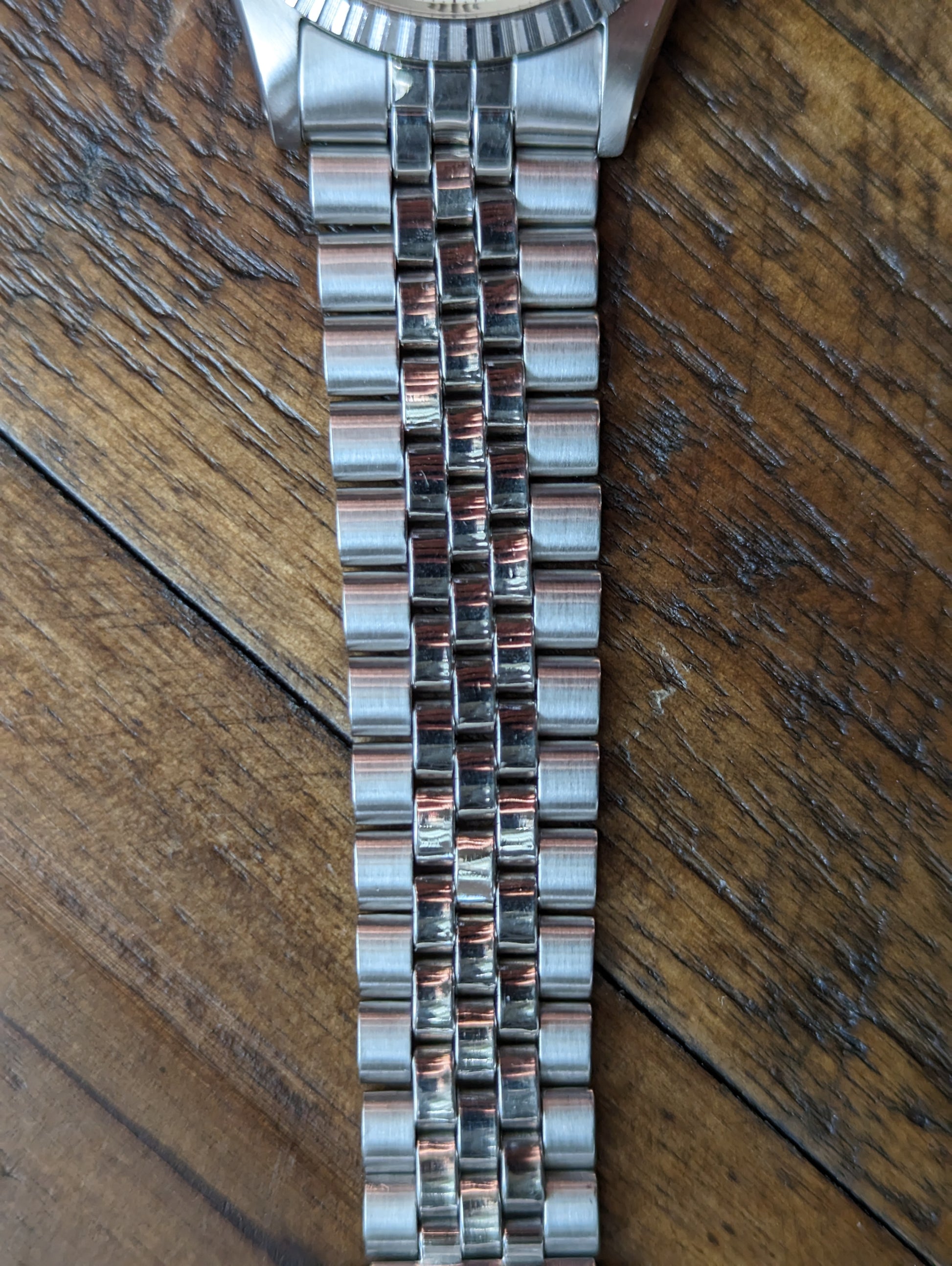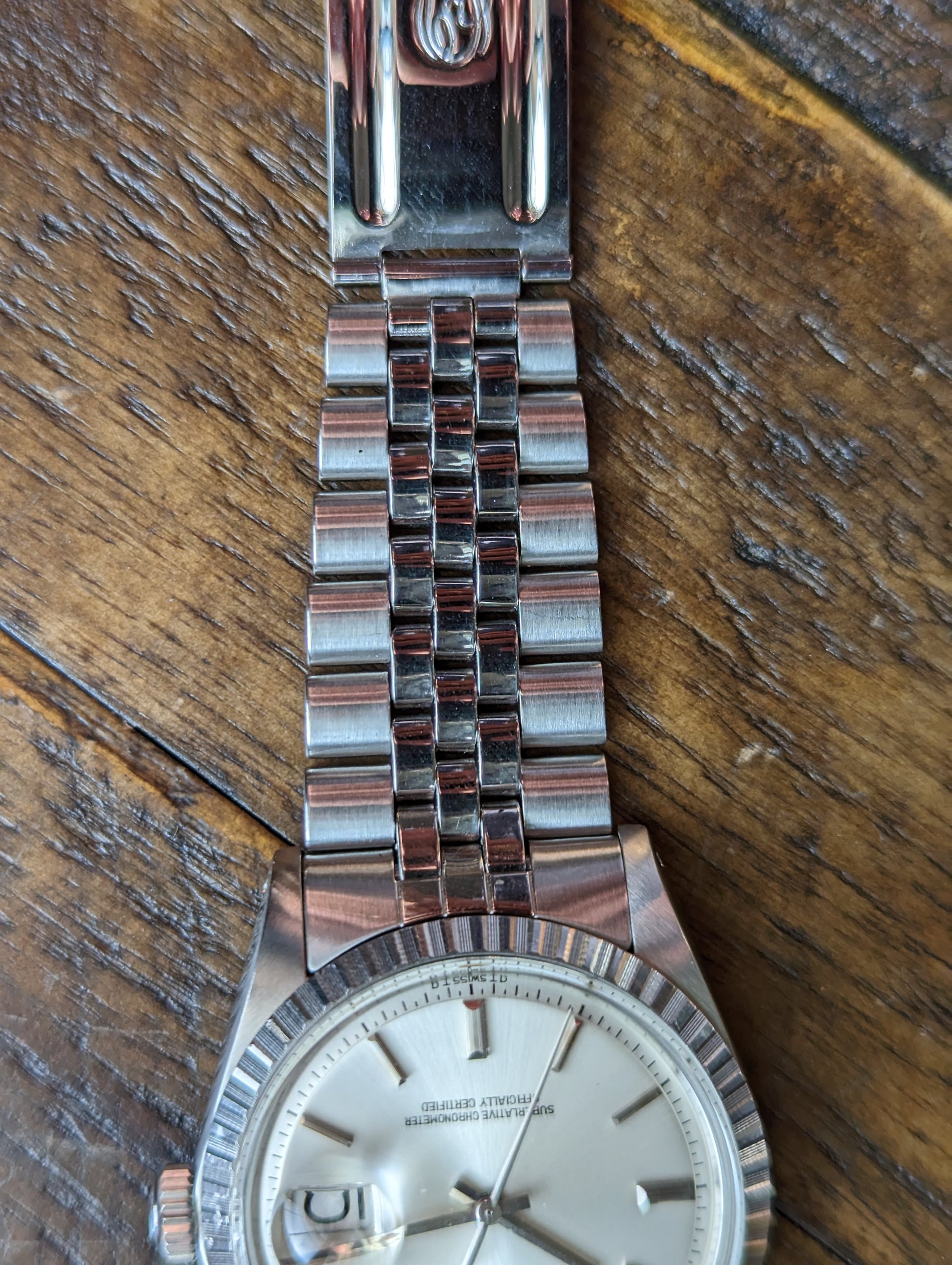 BRACELET: Comes on the original, folded link jubilee bracelet. The bracelet has just returned from polishing and is in excellent condition sporting minimal wear from use. It has an original, Rolex, service clasp that was installed on the bracelet during the watches last service.