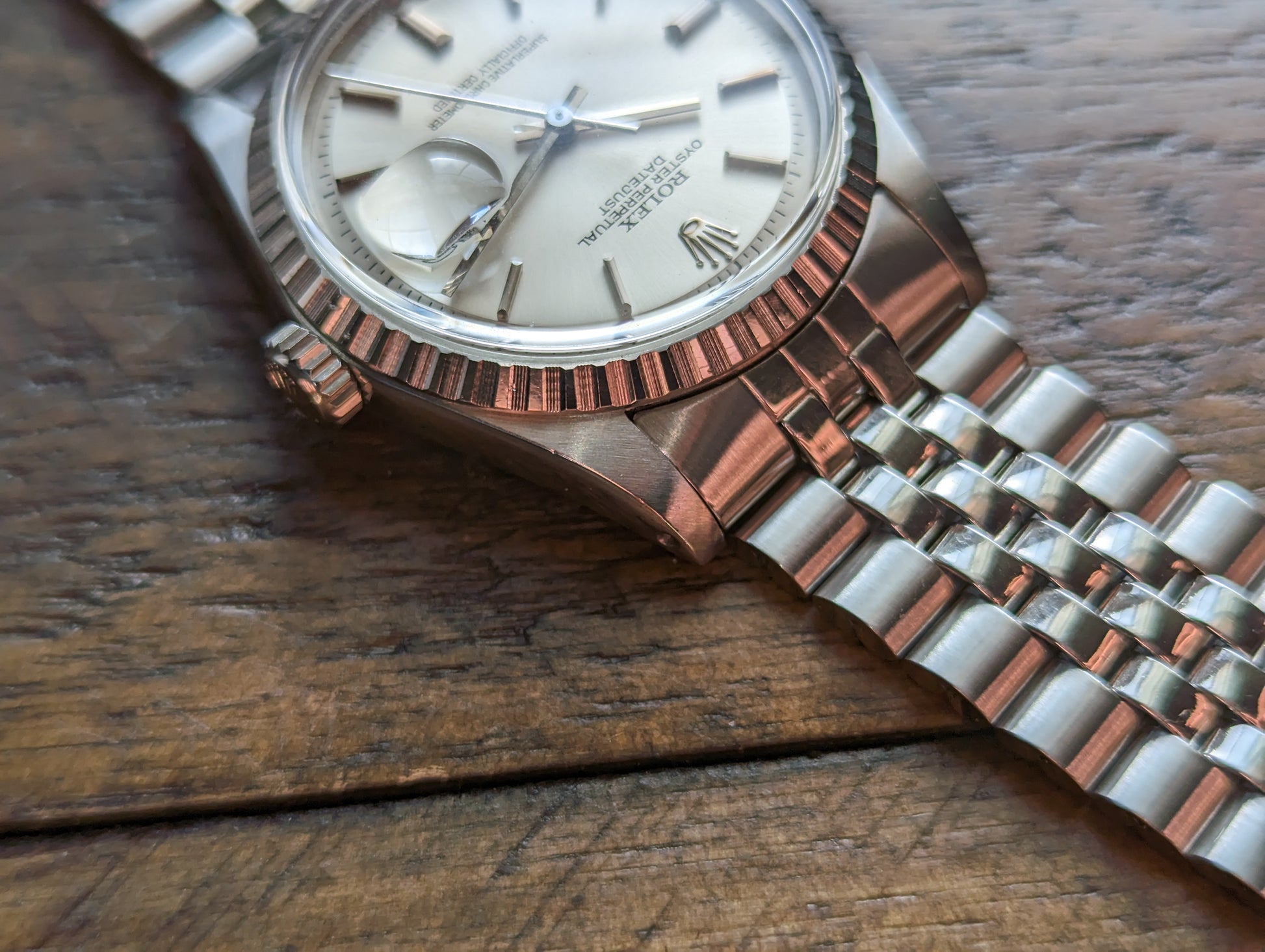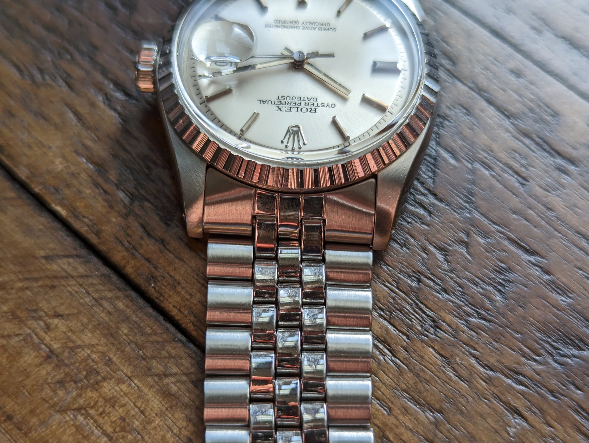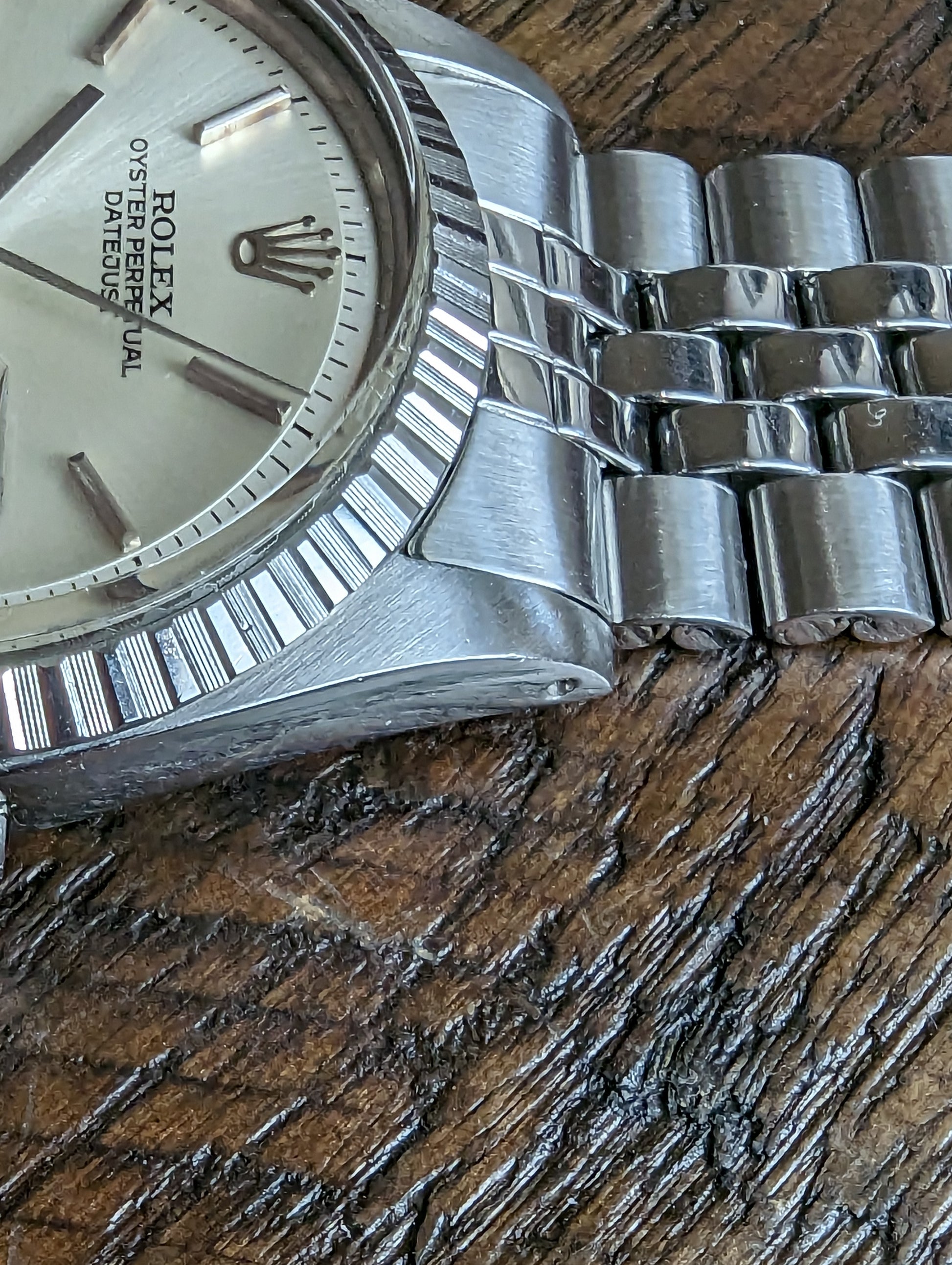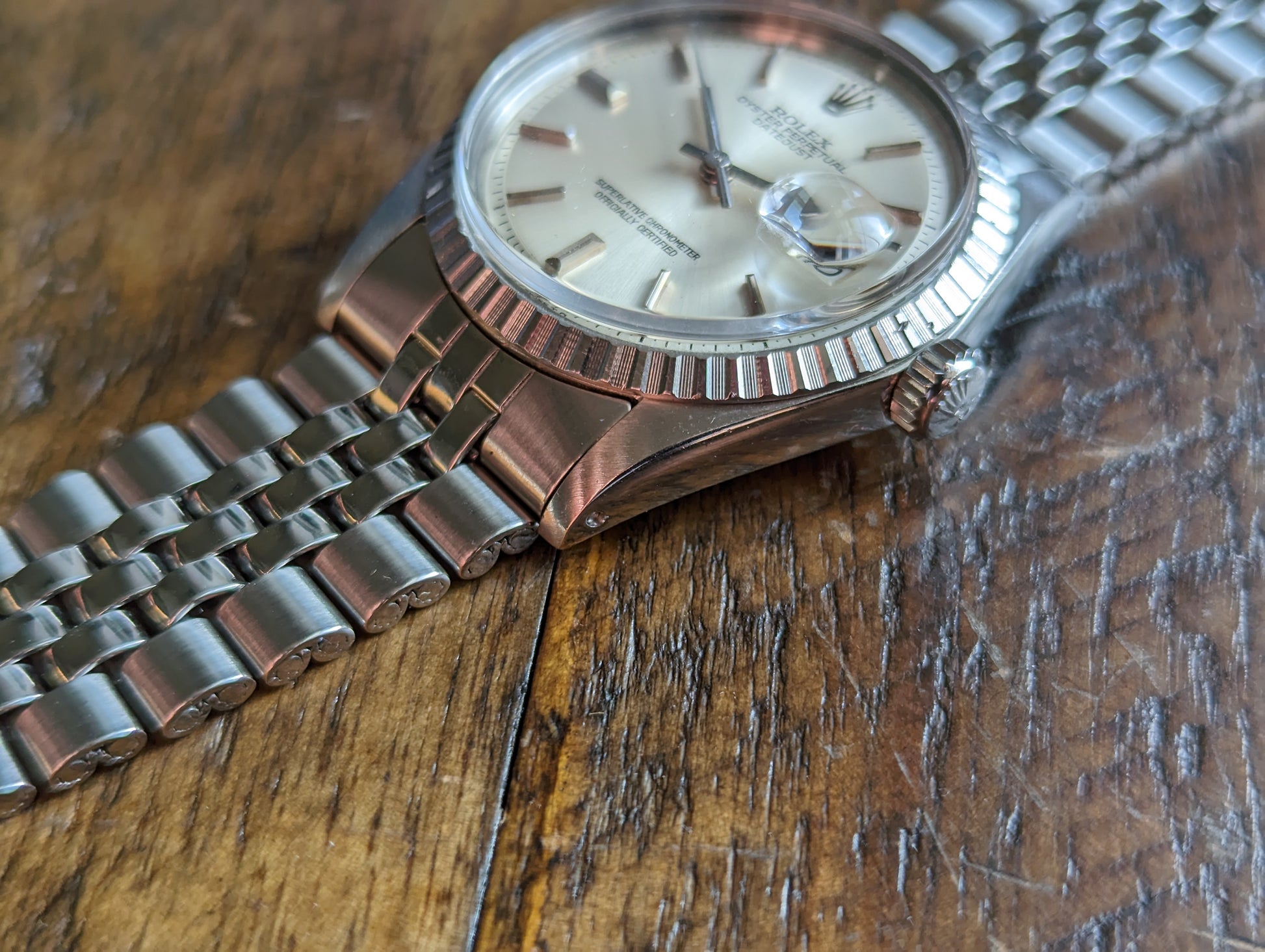 BRACELET: Comes on the original, folded link jubilee bracelet. The bracelet has just returned from polishing and is in excellent condition sporting minimal wear from use. It has an original, Rolex, service clasp that was installed on the bracelet during the watches last service.