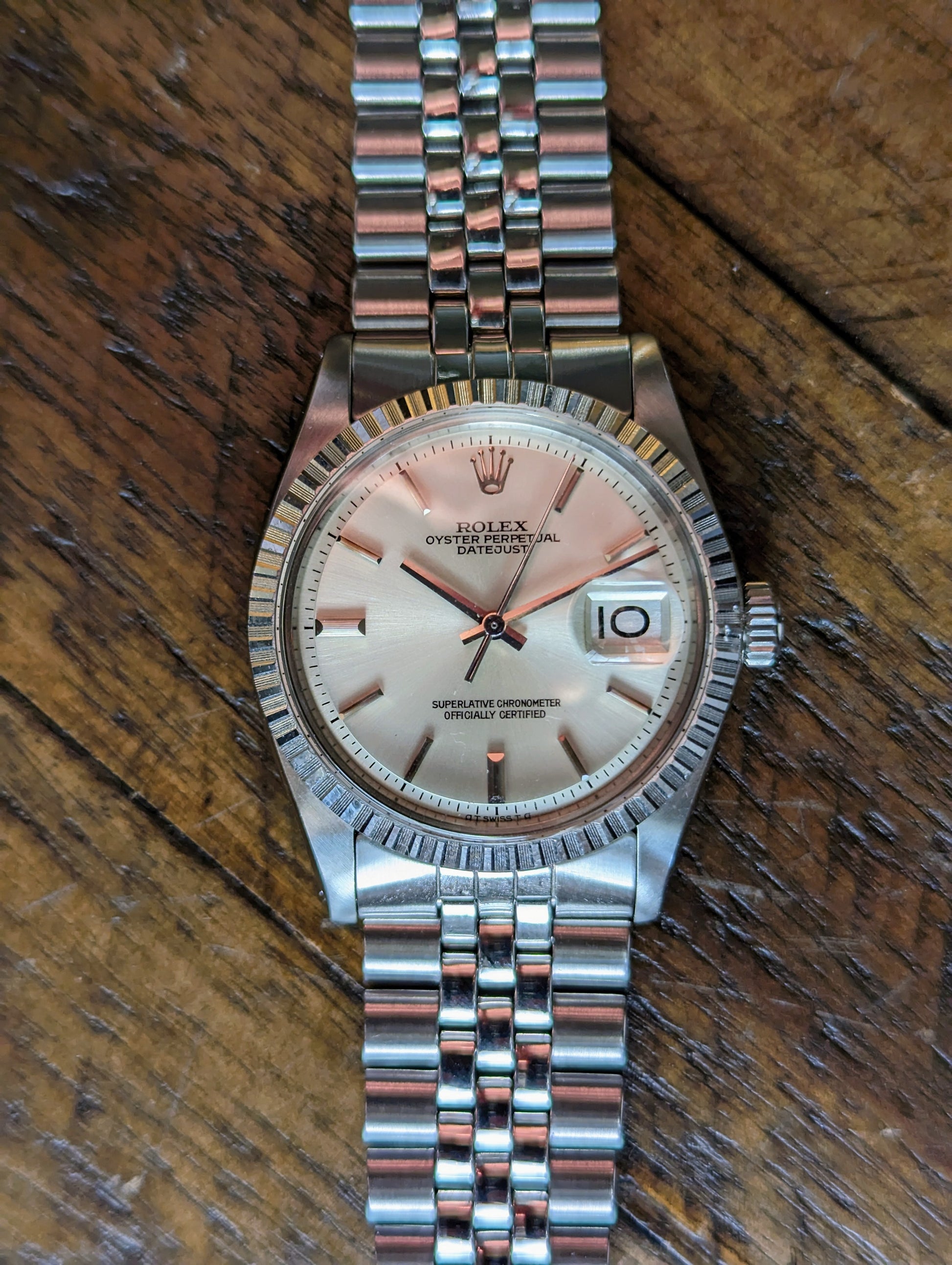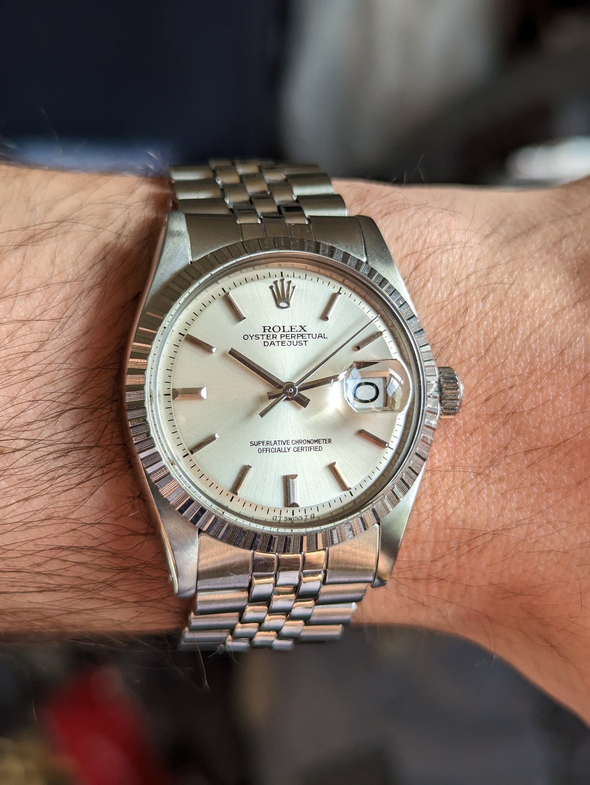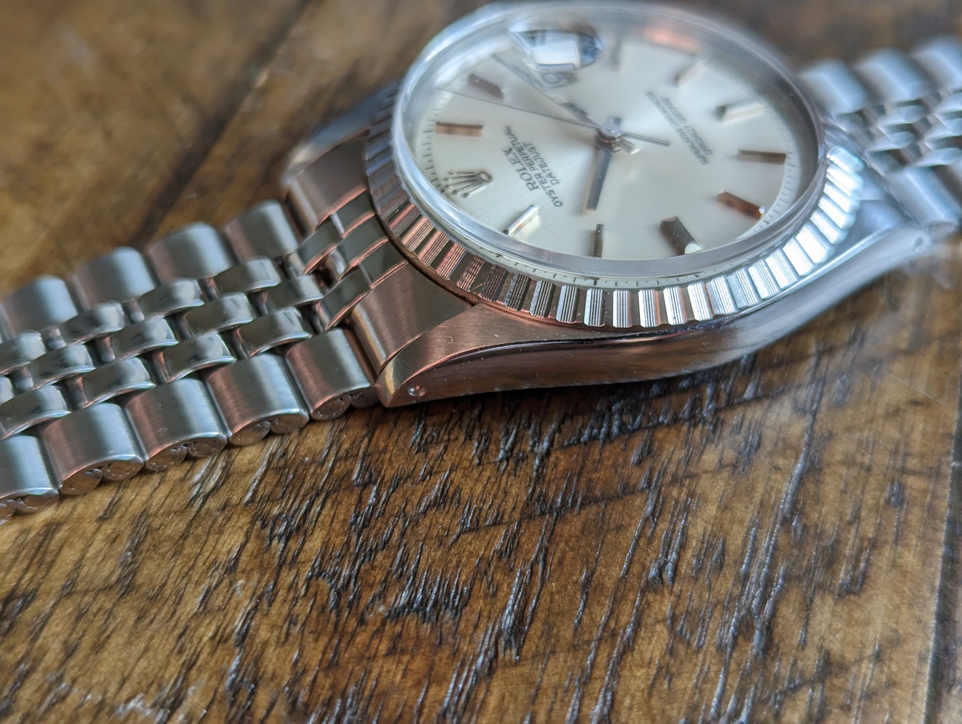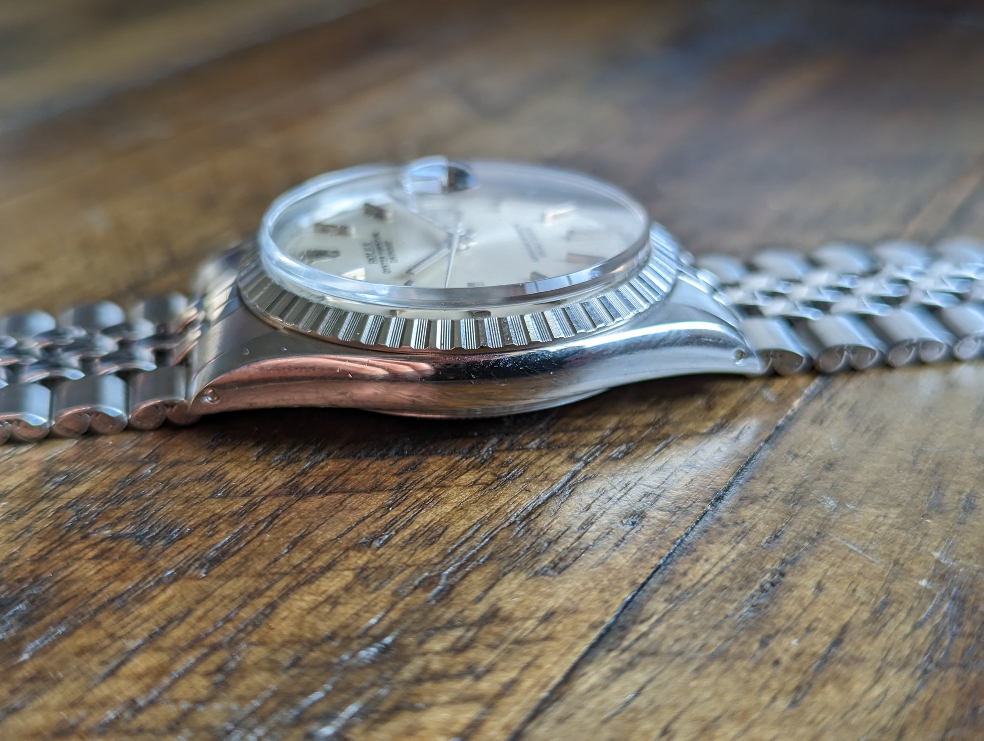 BRACELET: Comes on the original, folded link jubilee bracelet. The bracelet has just returned from polishing and is in excellent condition sporting minimal wear from use. It has an original, Rolex, service clasp that was installed on the bracelet during the watches last service.