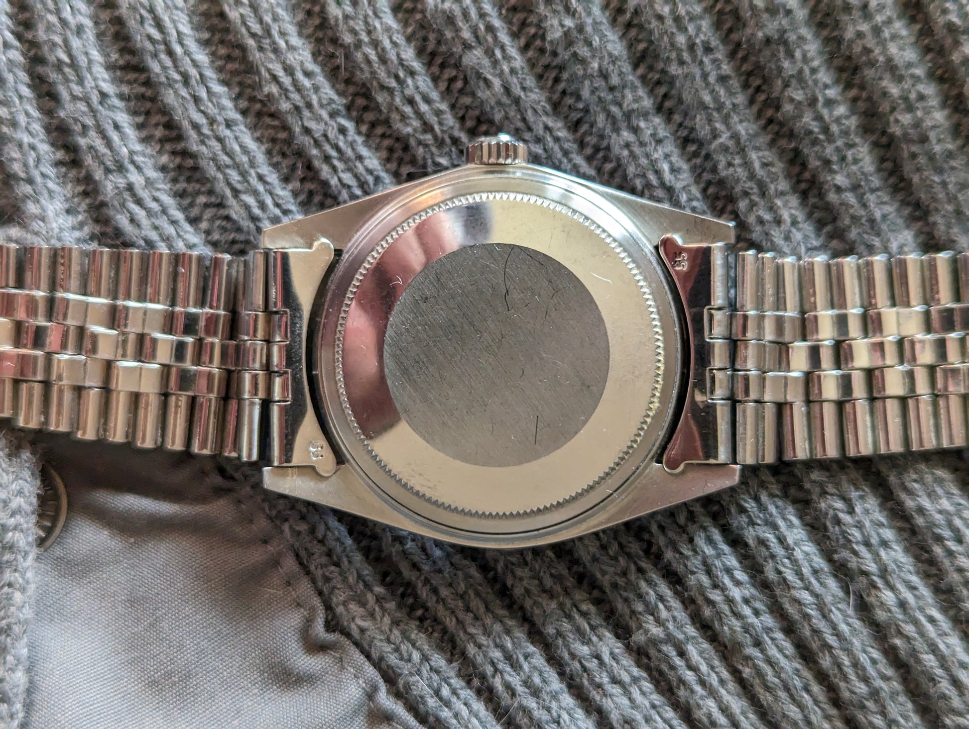 MOVEMENT: Rolex automatic self winding movement. The exact service history is unknown; however, the watch was serviced sometime in the past. The watch winds, sets and runs good. It was timed over a 24hr period and compared to atomic EST. The 24 hours included periods of wear and non-wear. Over those 24hrs the watch gained 13 seconds