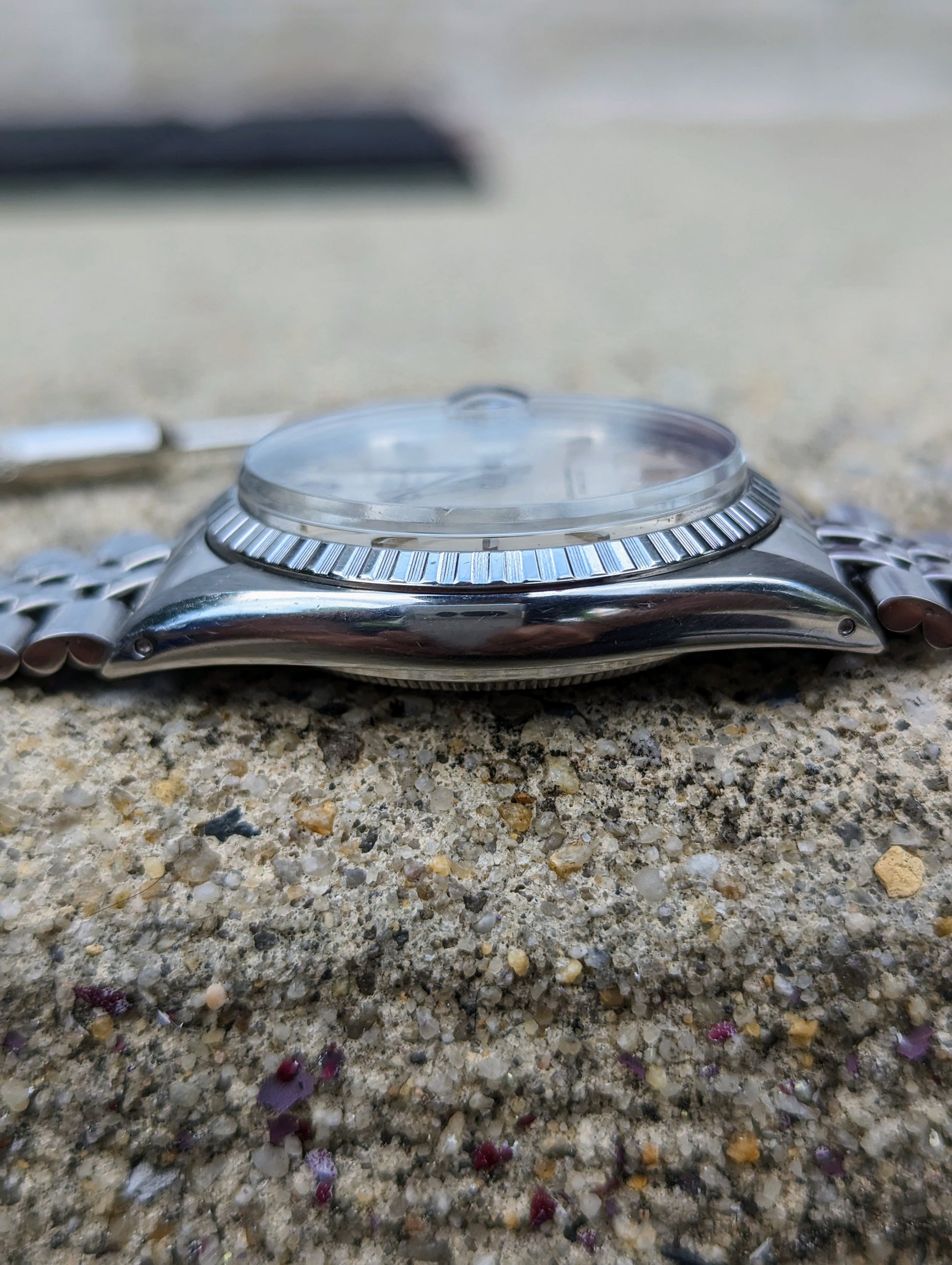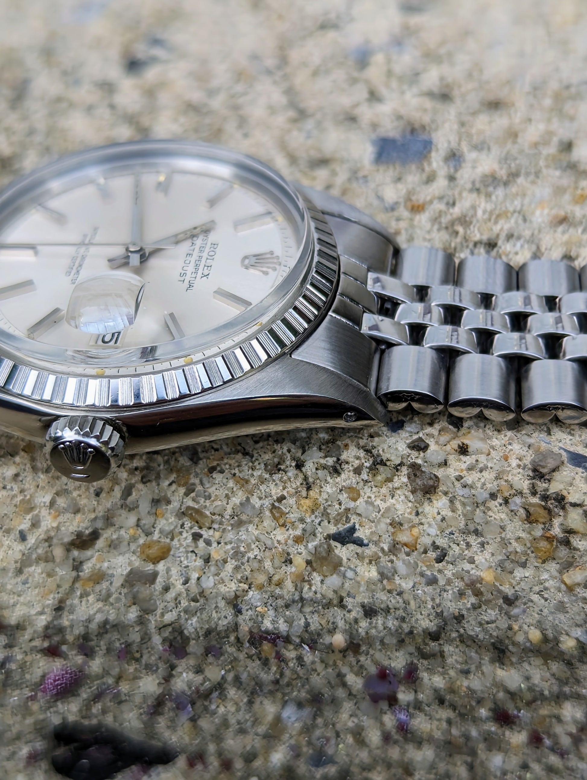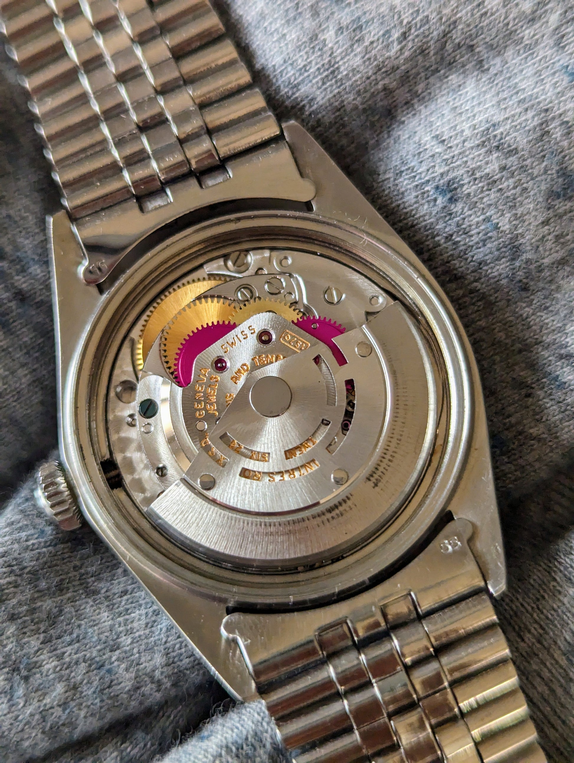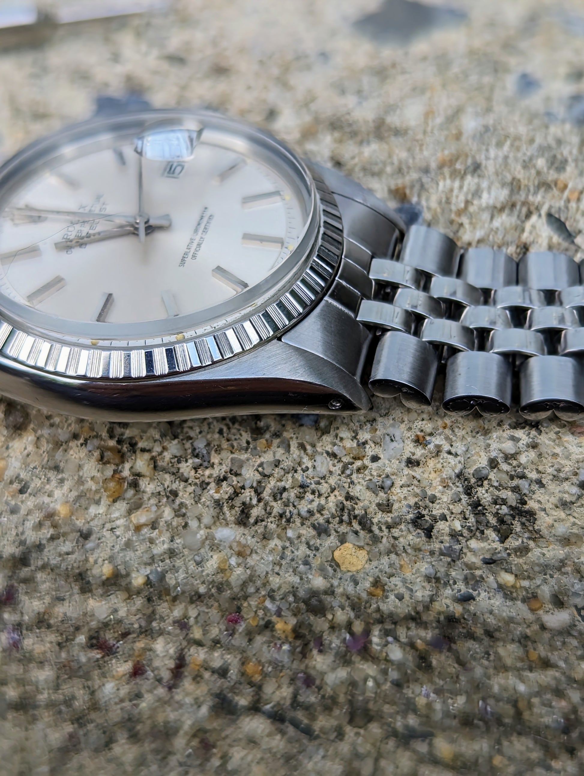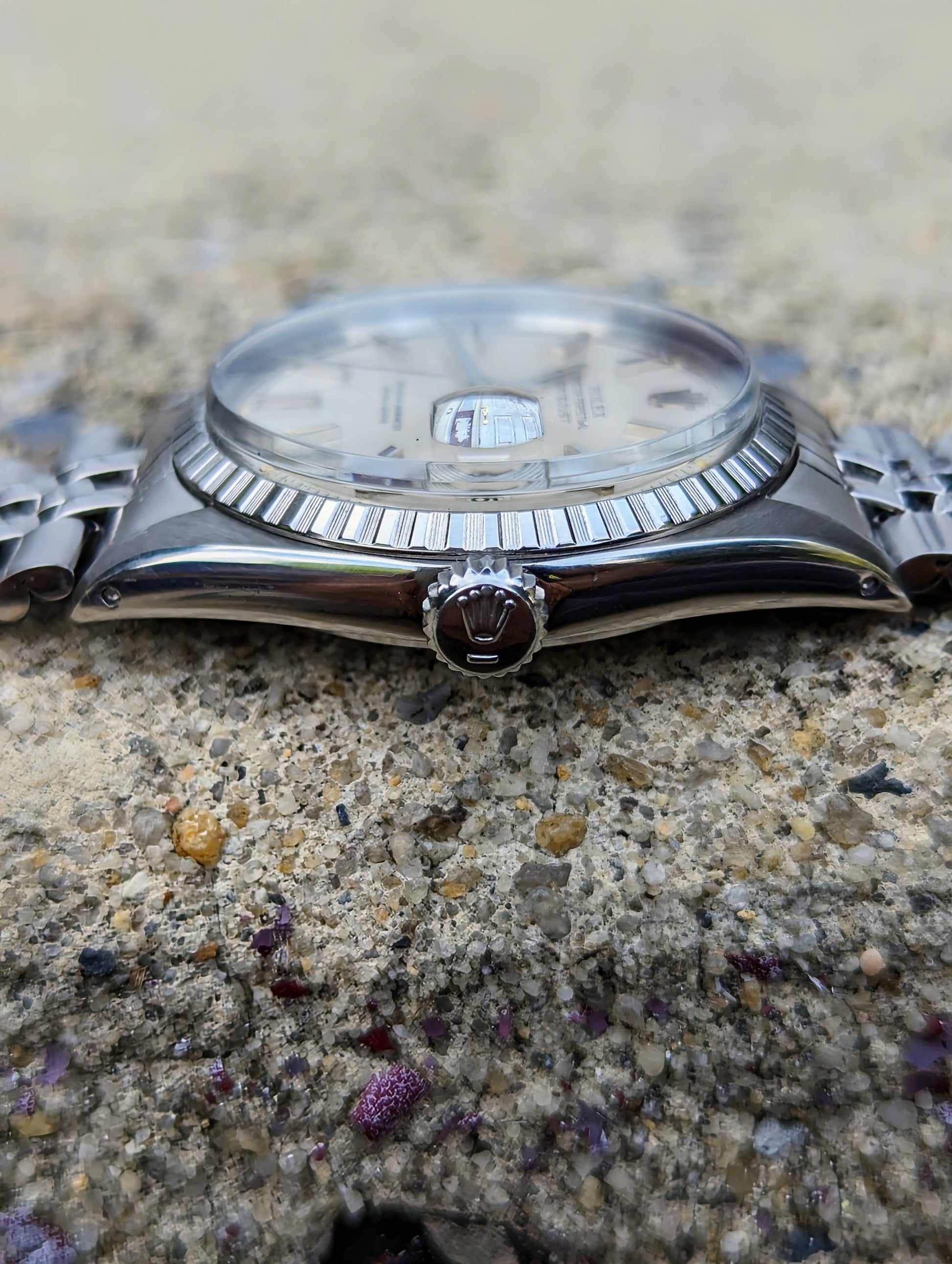 MOVEMENT: Rolex automatic self winding caliber 1570. The service history is unknown. The watch winds, sets and runs good. It was placed on a timegrapher which illustrated that the watch was losing 11 seconds per day with an amplitude of 196. The watch can be serviced for approximately $325 plus parts (if needed) at which point it would have a one year warranty. Just