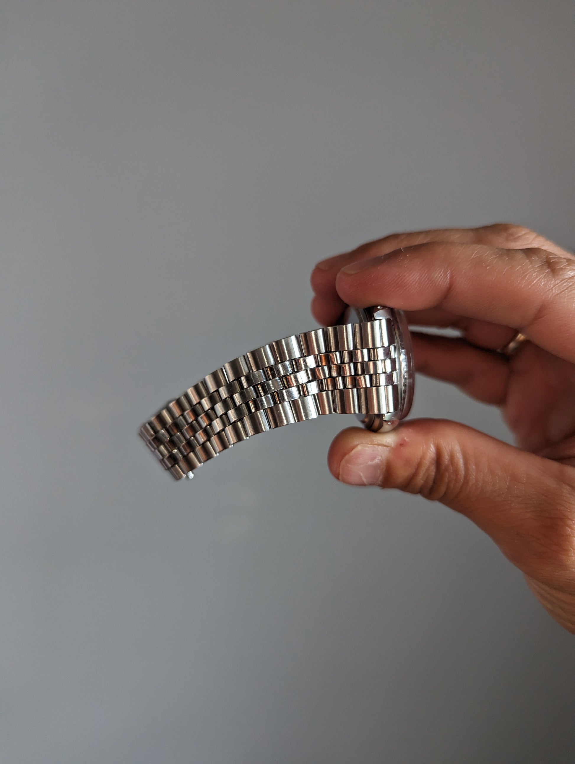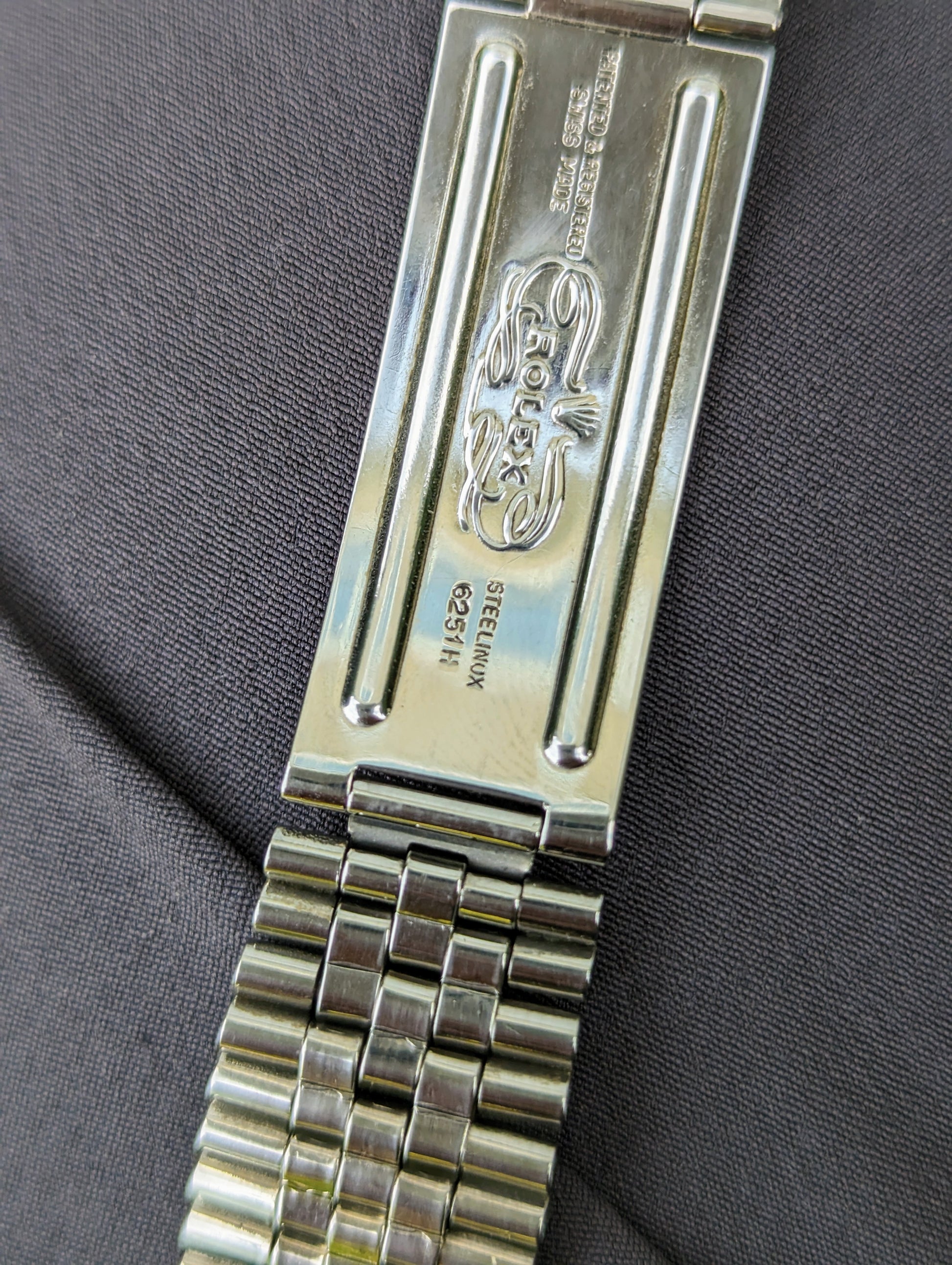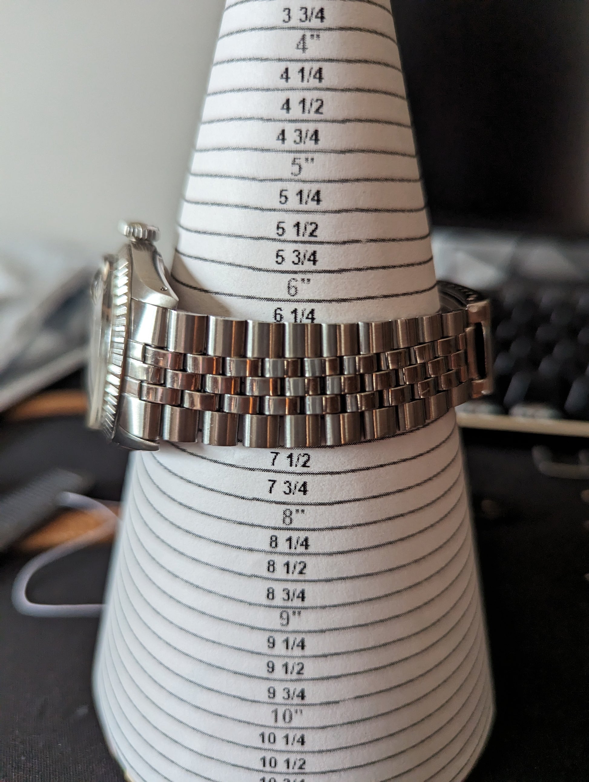 BRACELET: Comes on the original, folded link jubilee bracelet. Fits approximately up to a 7.5 inch wrist.