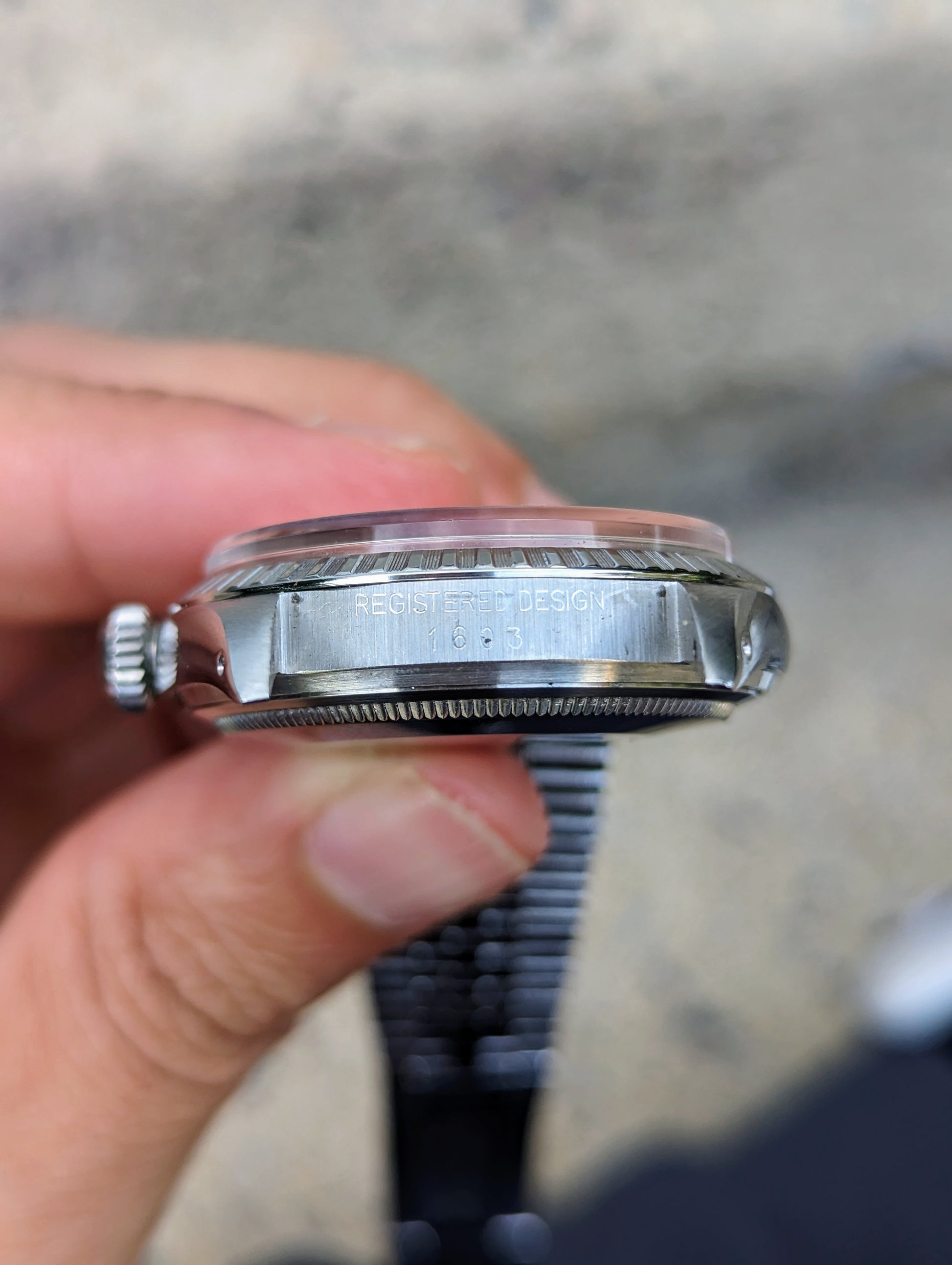 CASE: The recently previous polished 36mm case is in good condition. The case presents with minimal wear from use following polishing. All four lugs illustrate a brushed finish anteriorly with contrast mirror polishing along the midcase. The engine turn bezel is also in great condition with very sharp, well defined lines and reflects light beautifully.