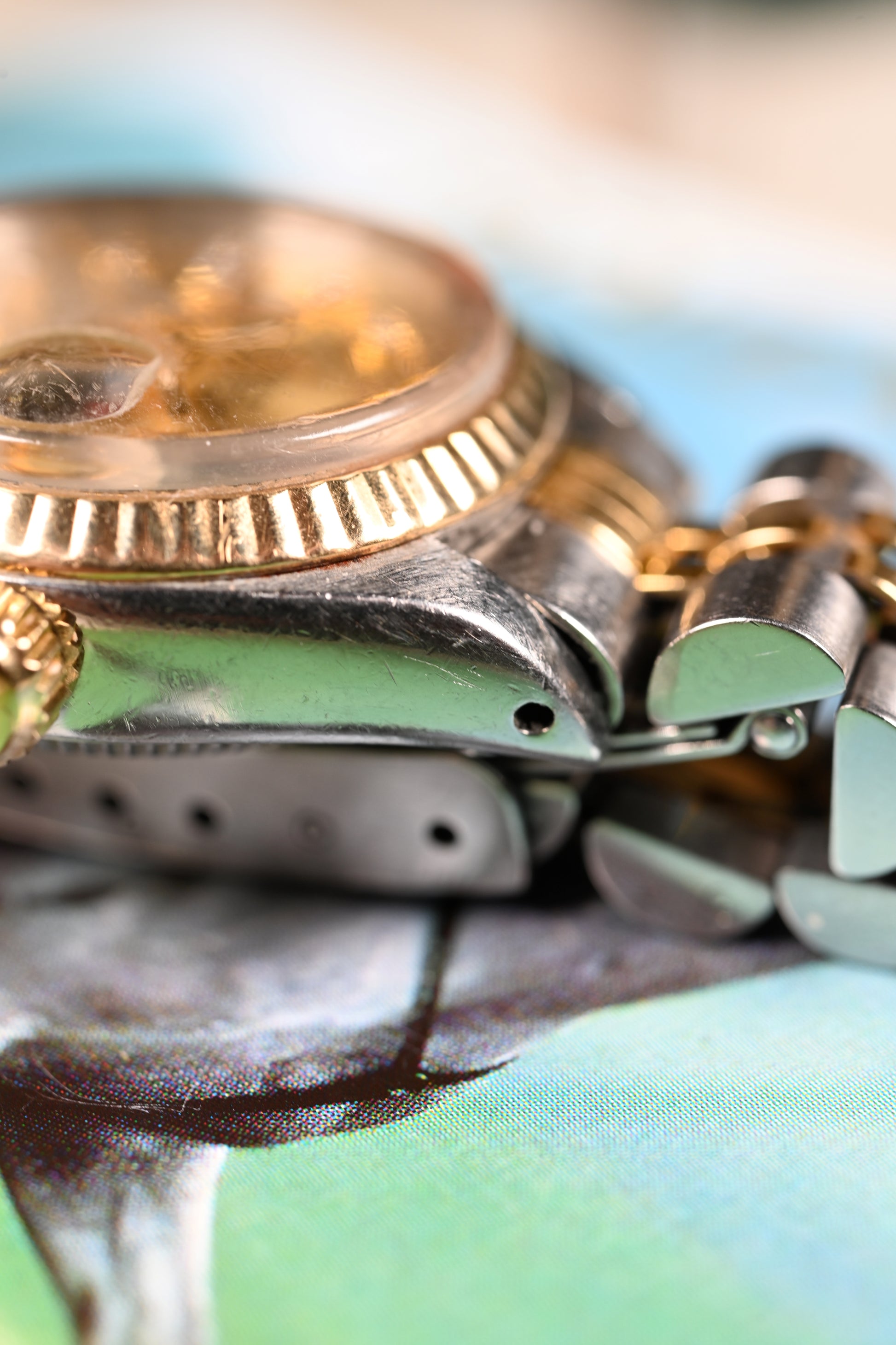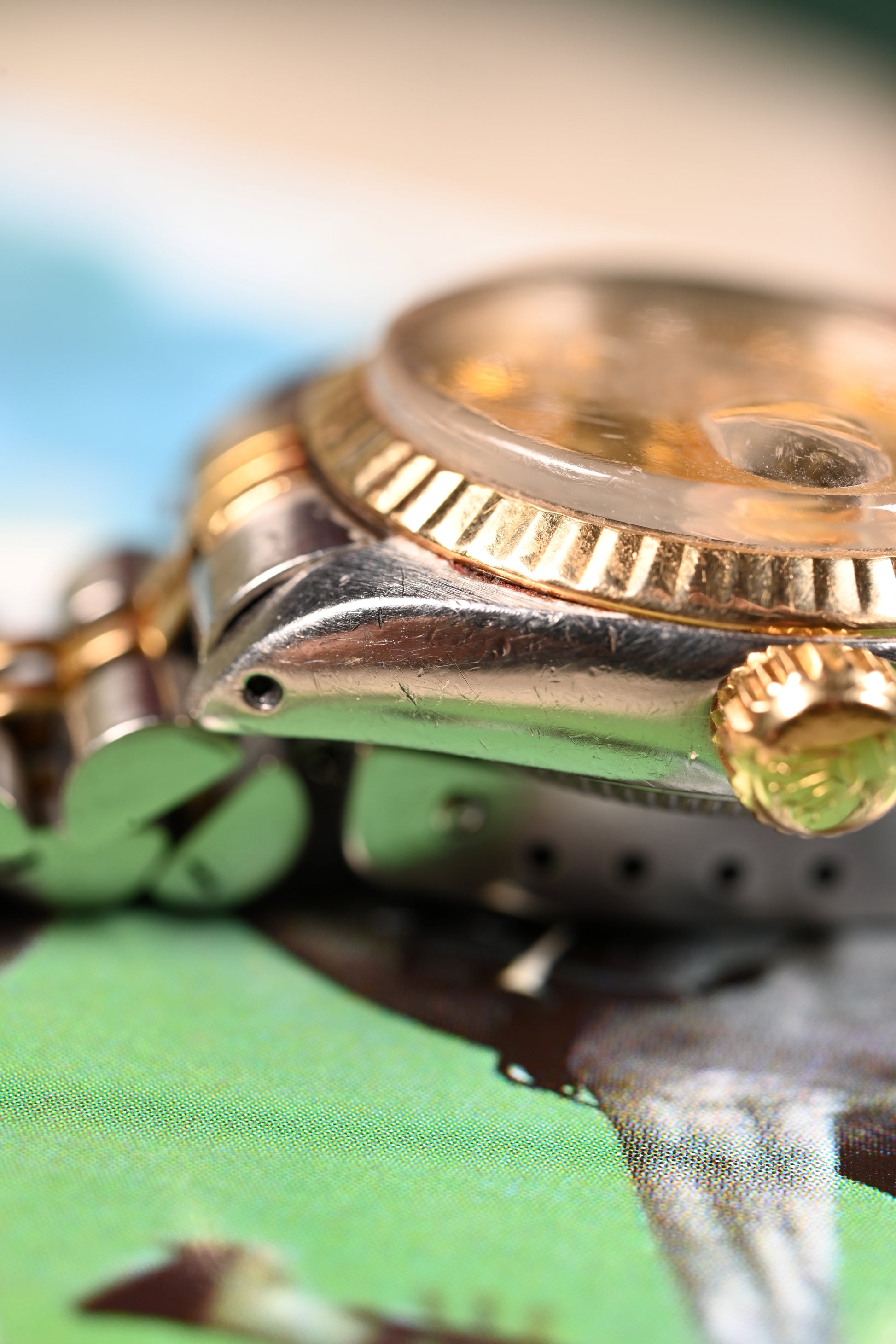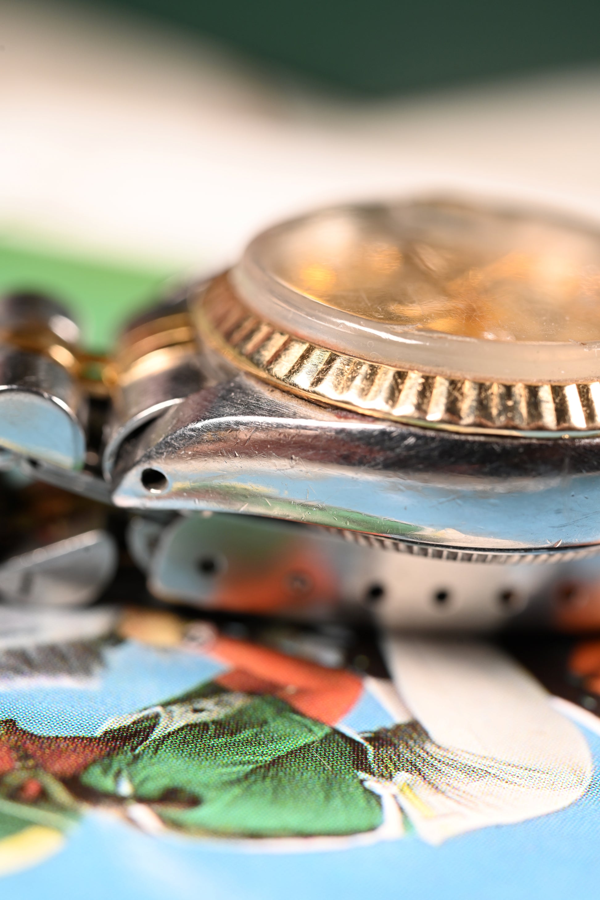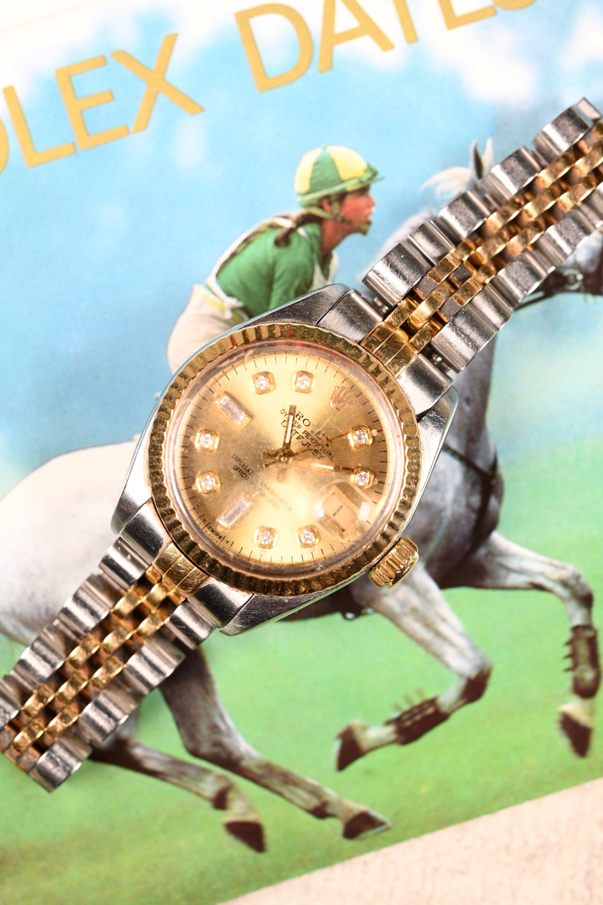 DIAL: An original and beautiful champagne sunburst dial. The dial features Rolex factory set mined diamond hour markers.