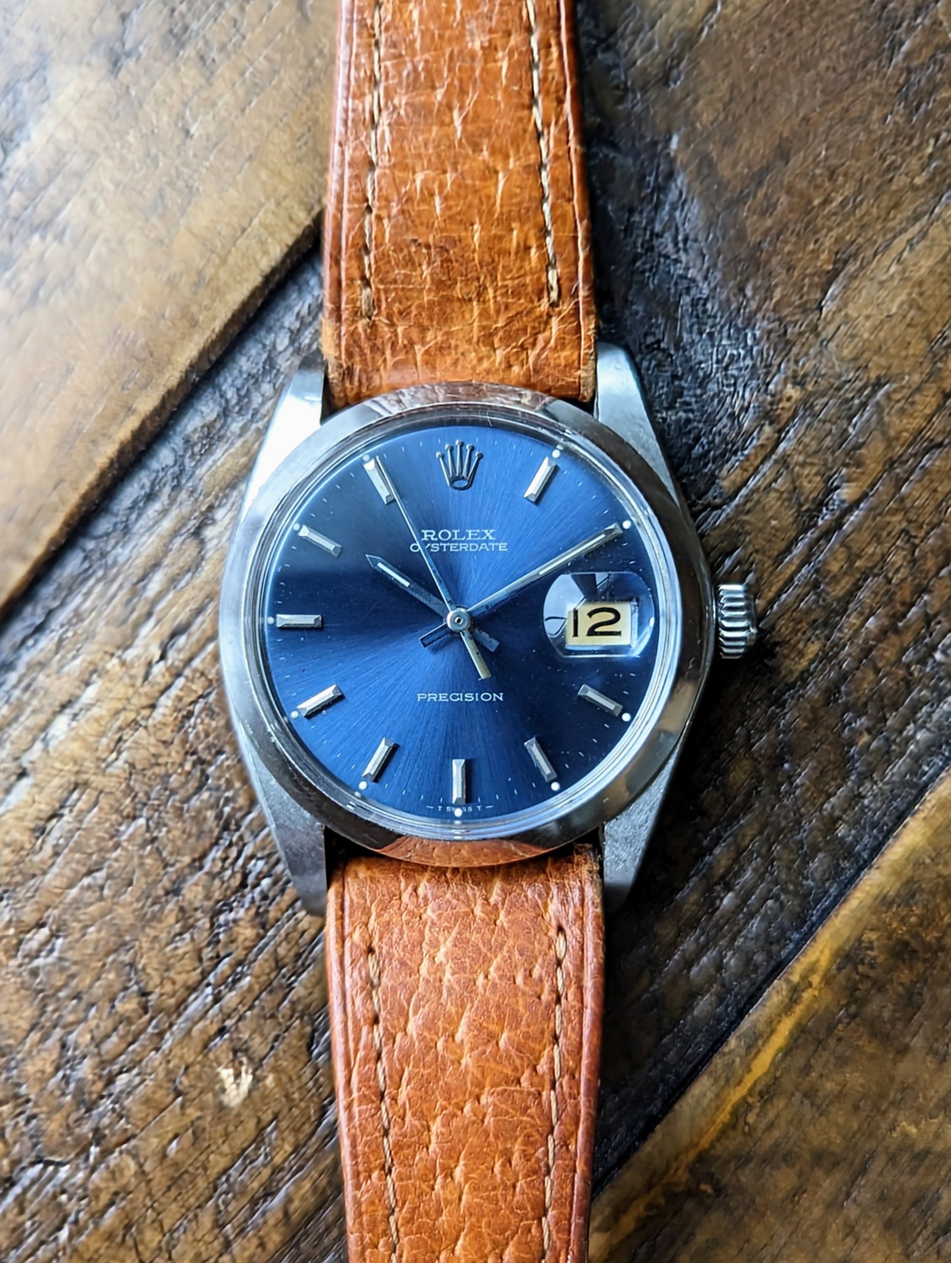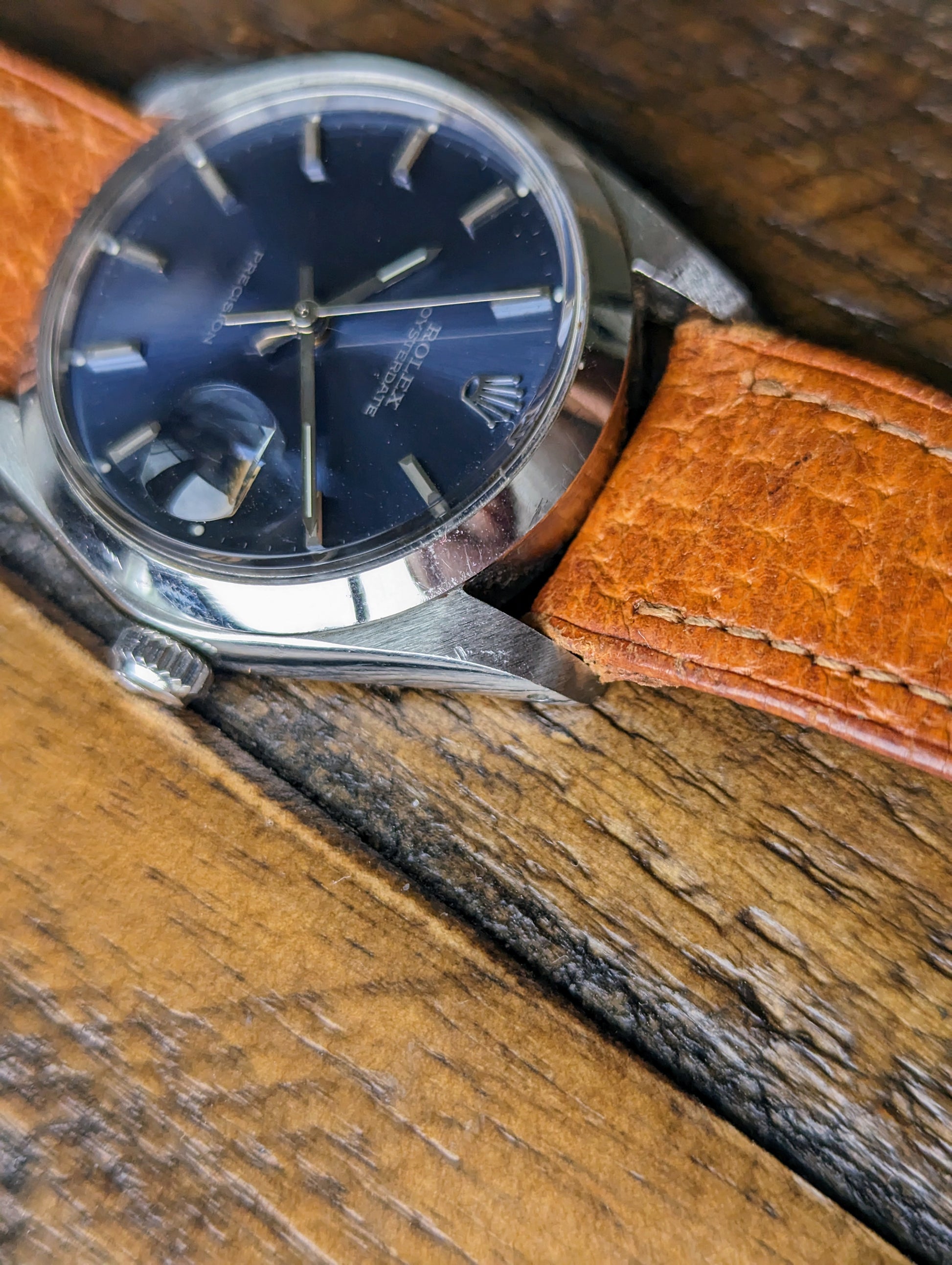 As I have stated on previous stories, Blue dialed vintage Rolex's are very finicky. Most often you will find them with paint decay: either around the hour markers or the lume. Finding one without paint decay is no easy task. But we aren't here for easy. I enjoy the hunt and when I find a clean vintage blue dial Rolex I like to grab them up and offer them here in the vintage watch shop. Enjoy!