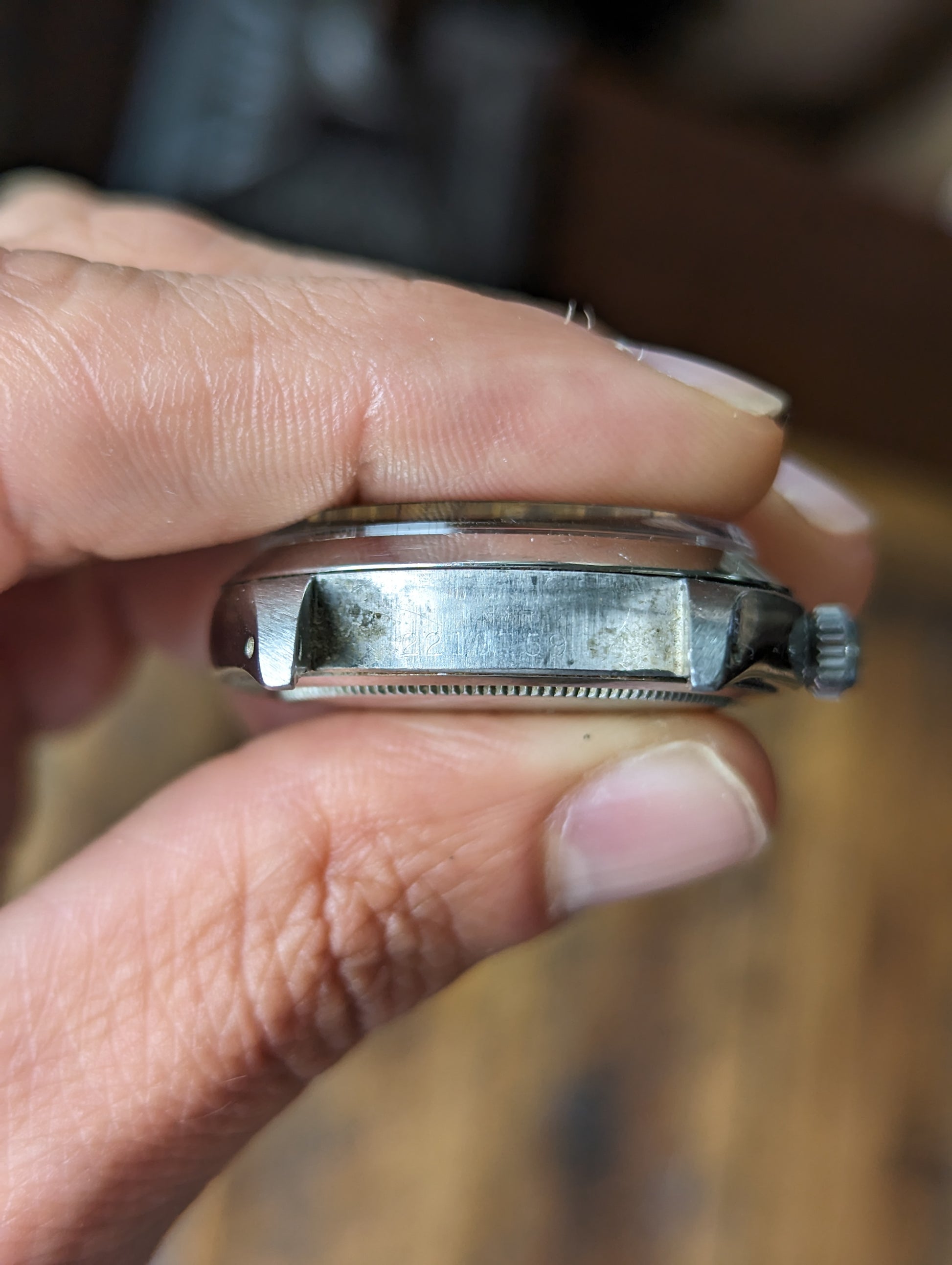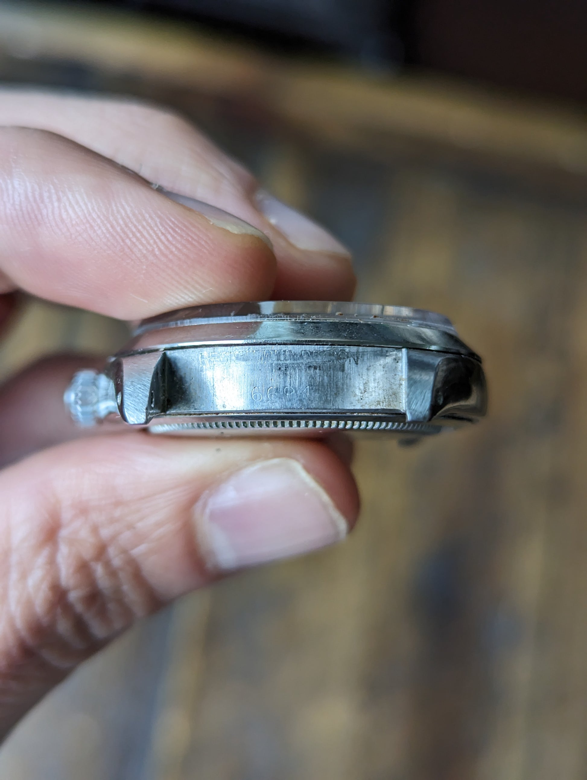 CASE: The steel 34mm case is in good shape for its age. Its been polished in the past. All four lugs illustrate the brushed polished finish. The case presents with wear commensurate for its 54 years of age.Â