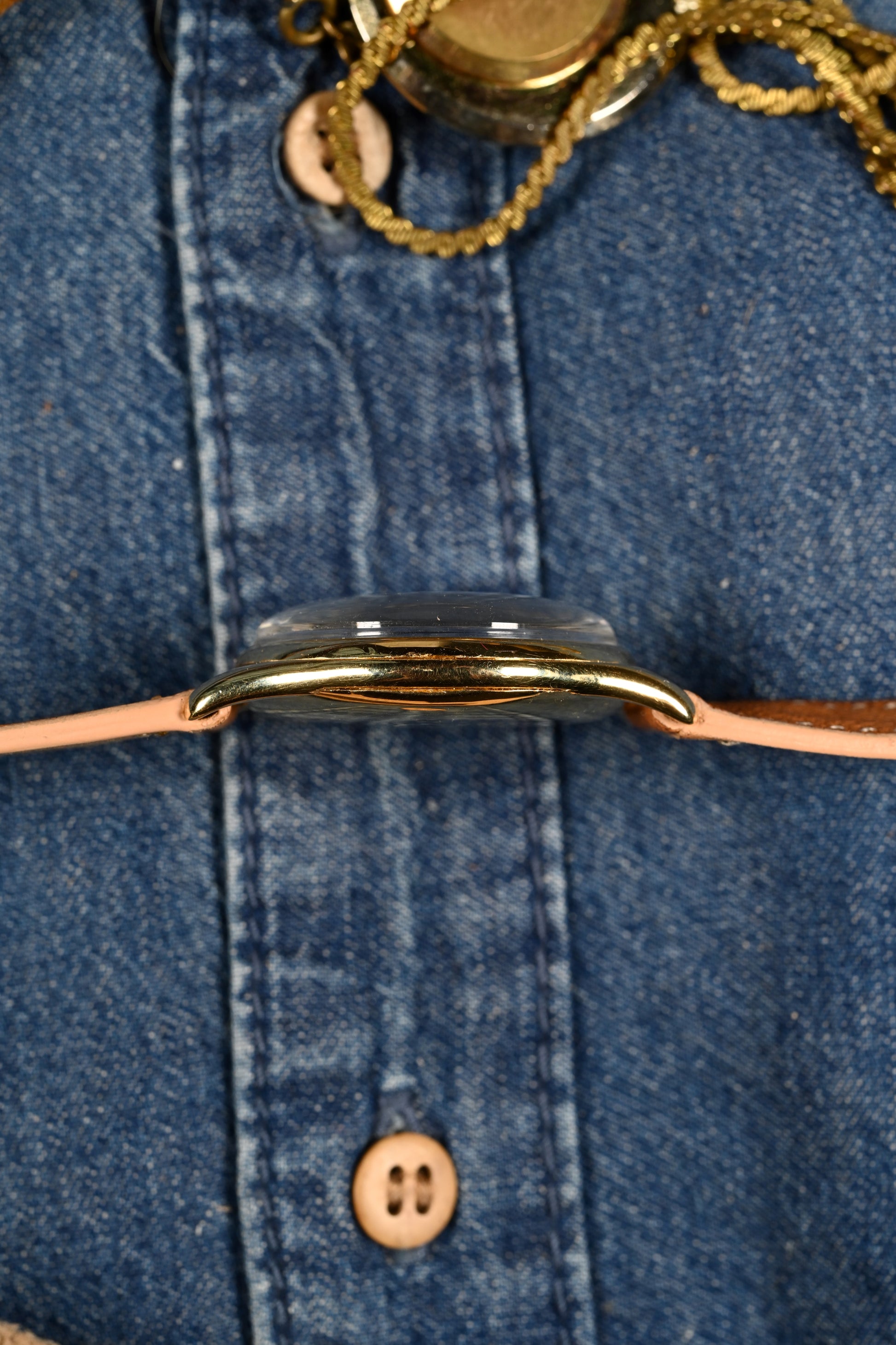 DIAL: An original V&C gilt dial. It goes without saying that Gilt dials are exceedingly rare - Vacheron is no exception. The lacquer on the dial excibits cracking under a loupe or magnification. The original black dial has turned brown in certain areas. This specific patination is dubbed as turning "tropical" by collectors. It's likeness is subjective and based on individual preferences. Generally speaking, tropical dials are highly sought after and often command premiums.