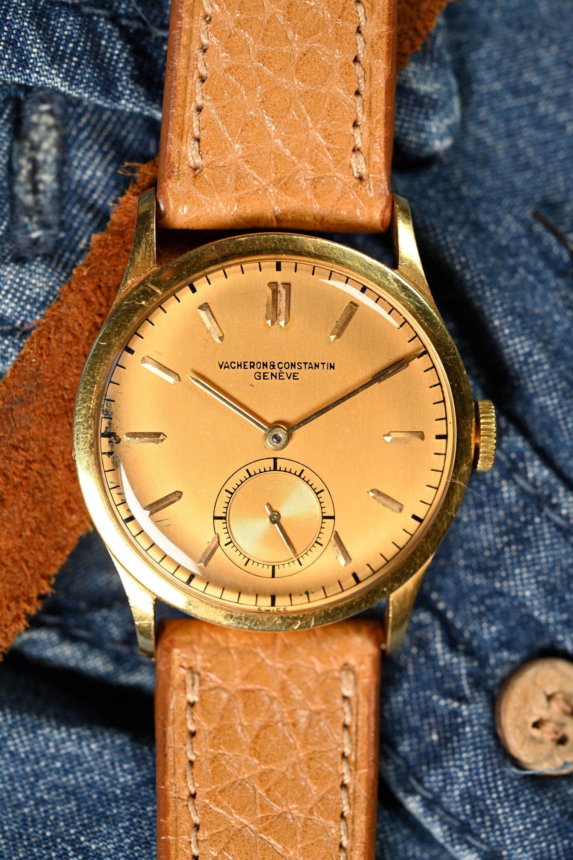 MOVEMENT: Vacheron manually wound caliber 453. Vacheron's finishing prowess that they had come to be known for by the mid twentieth century is on full display as we see a myriad of finishing techniques including cotes de Genève, pearlage, anglage and black polishing. The movement was serviced in 02/2025. The watch will come with a one year mechanical warranty dated from 02/2025.