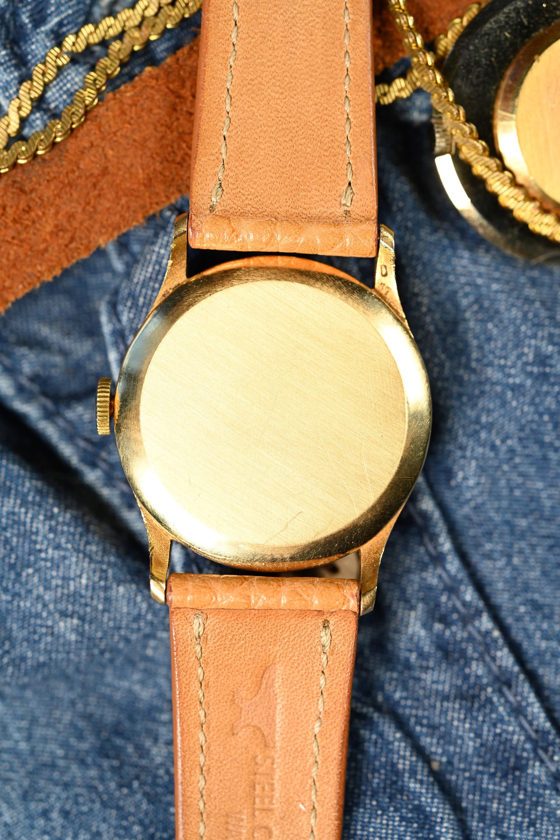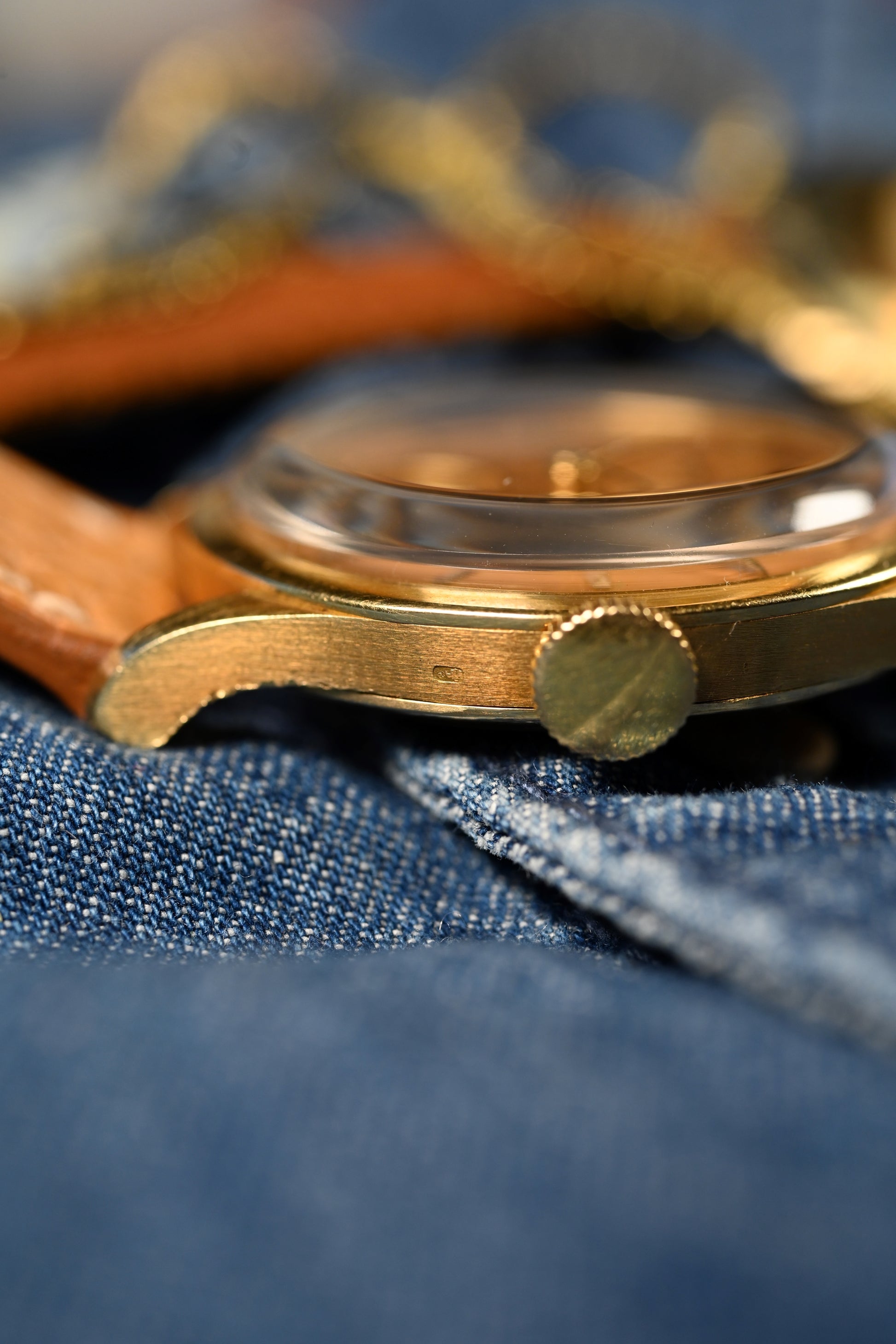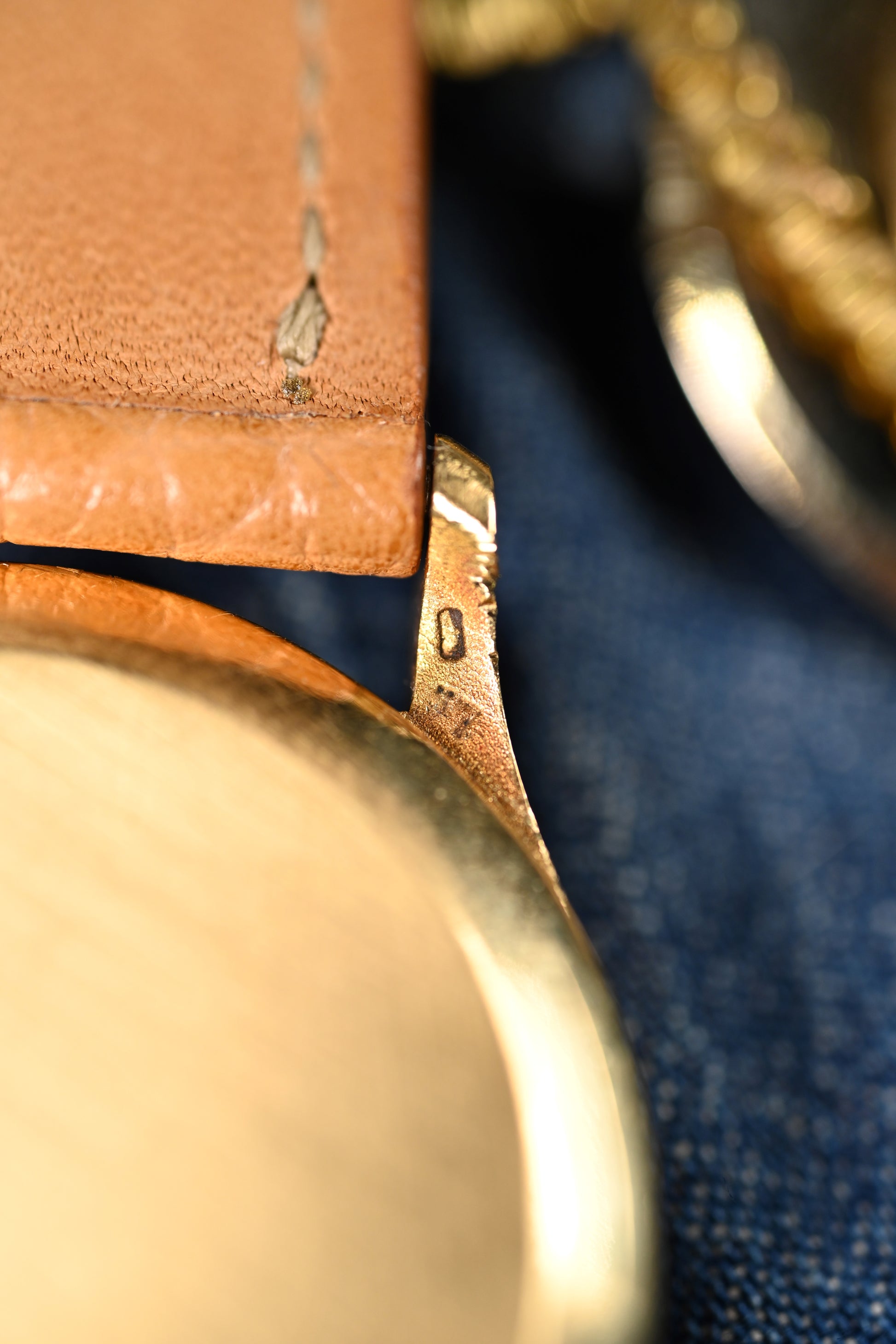 CASE: The 34mm solid 18kt yellow gold case is in good shape. The case has a very light polish in its lifetime yet the case is incredibly strong. The hallmarks are easily identified and remain quite deep. The midcase illustrates the maisons original satin finish. The caseback illustrates the original brushed finish. The case is 2x signed and matching. The crown was replaced some time in the past.