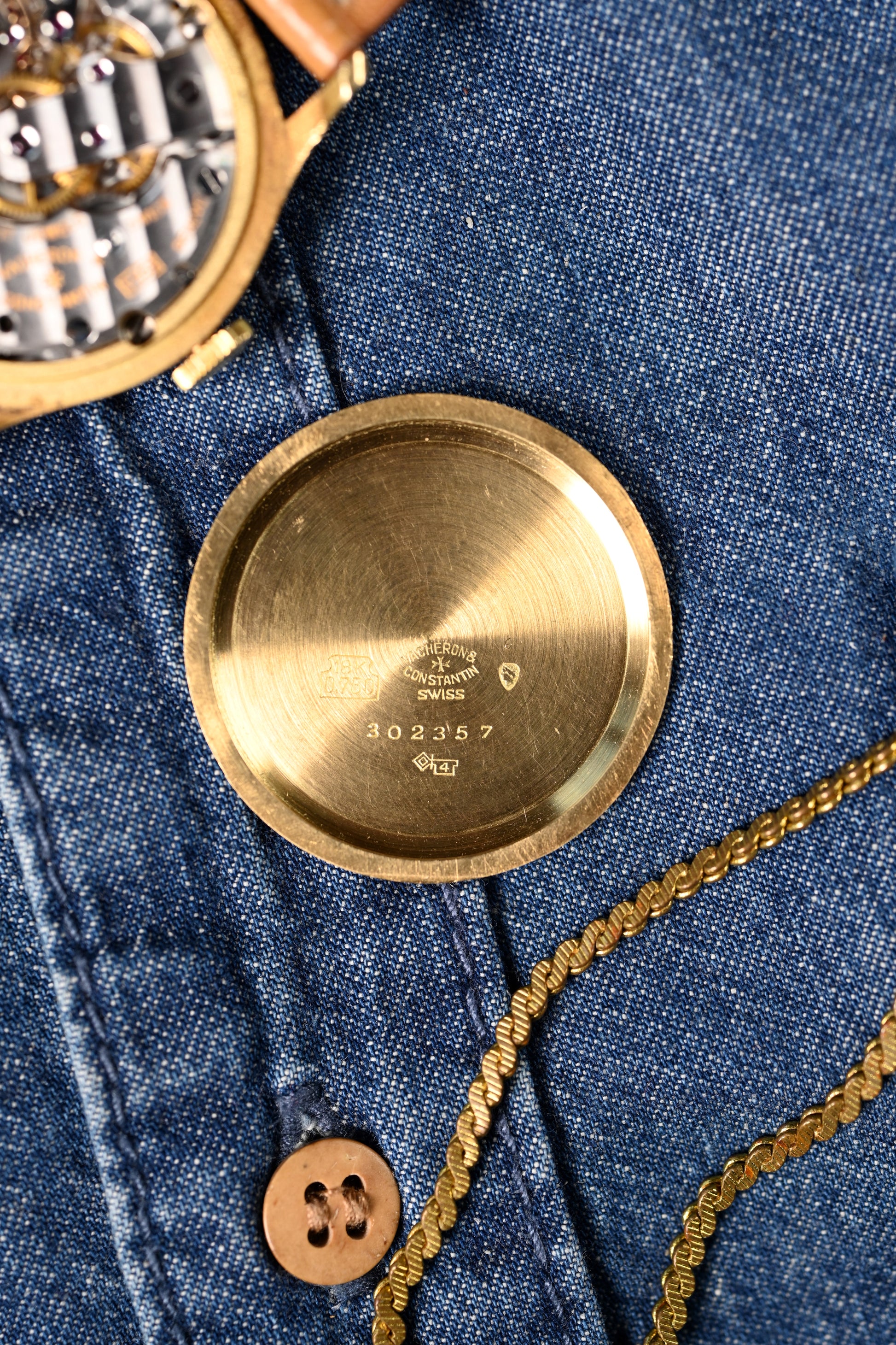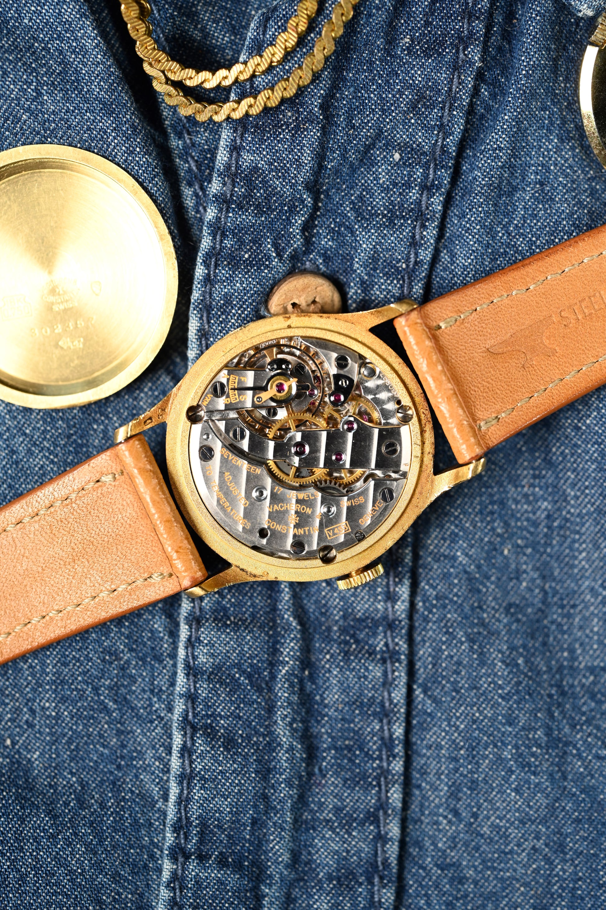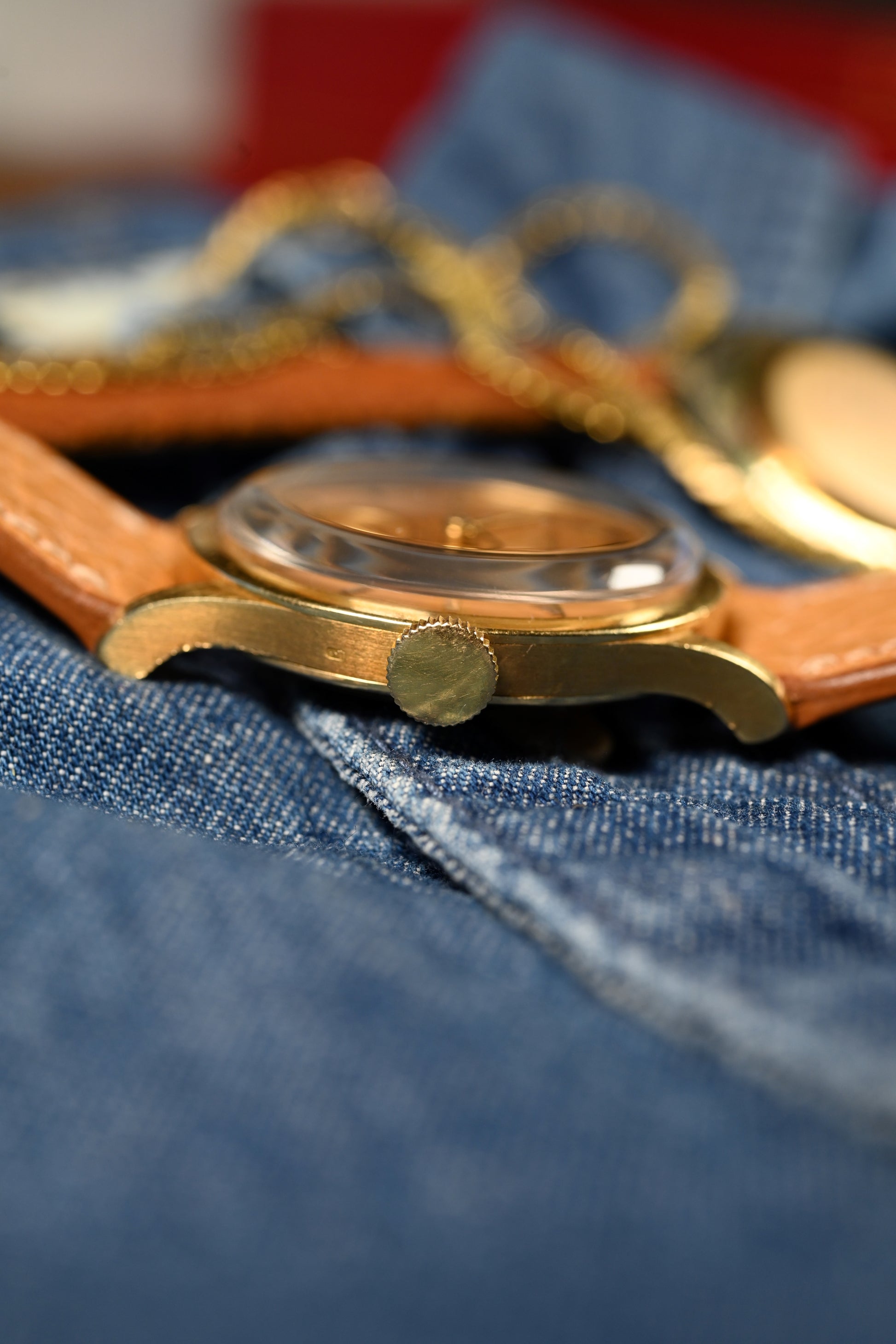 CASE: The 34mm solid 18kt yellow gold case is in good shape. The case has a very light polish in its lifetime yet the case is incredibly strong. The hallmarks are easily identified and remain quite deep. The midcase illustrates the maisons original satin finish. The caseback illustrates the original brushed finish. The case is 2x signed and matching. The crown was replaced some time in the past.