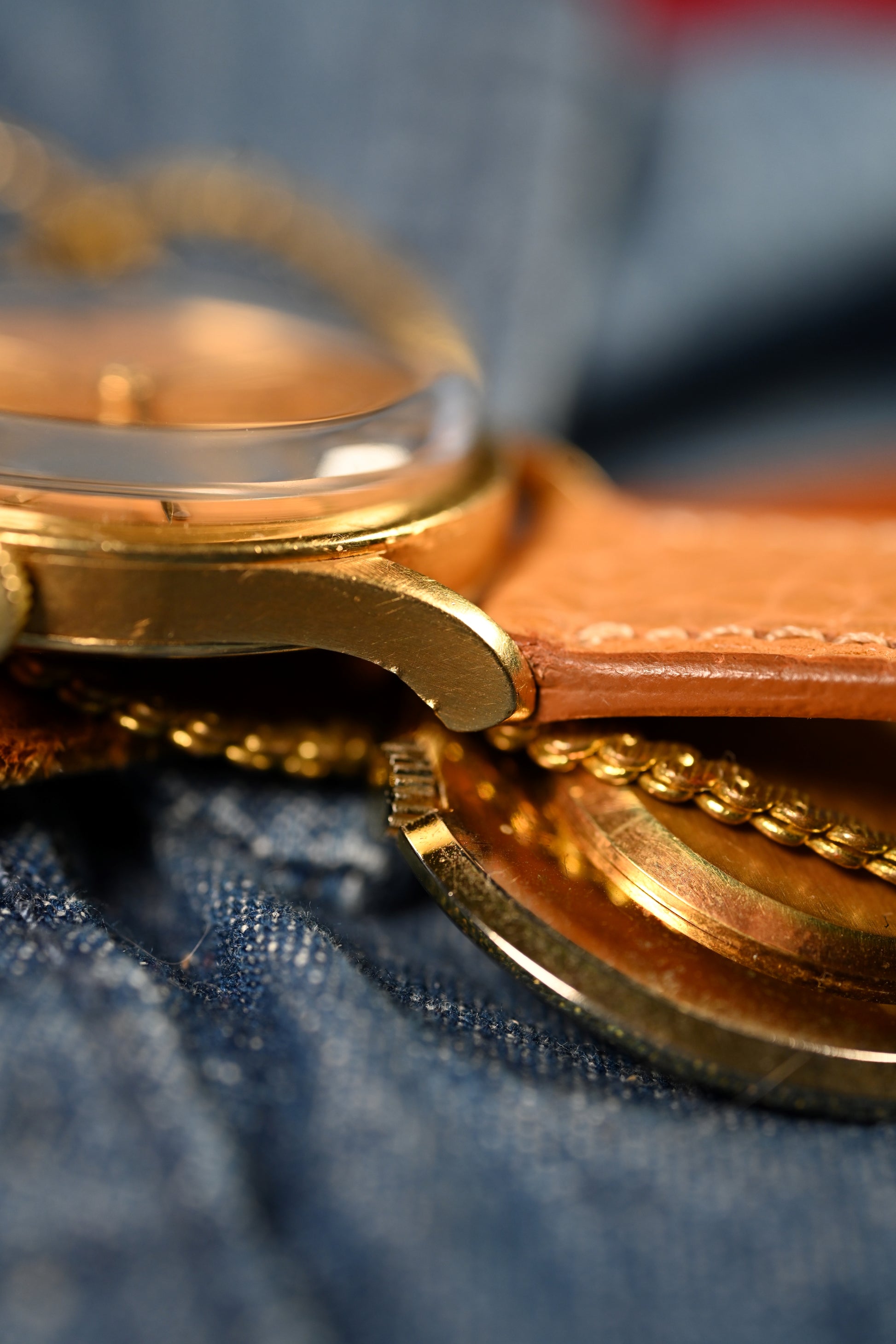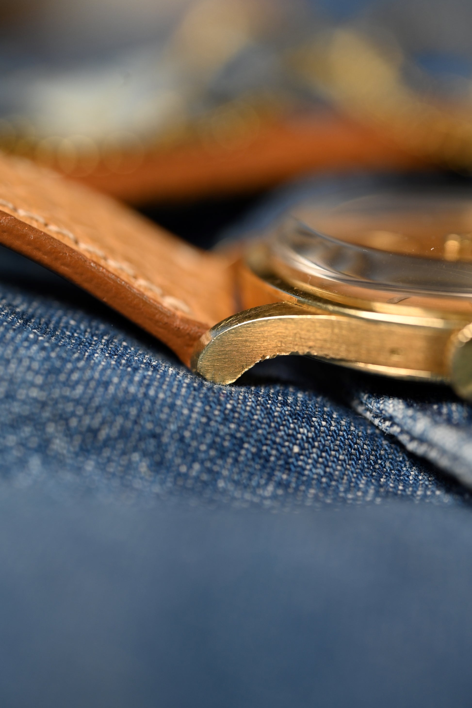 BRACELET: We have paired this rare configuration of a 4073 with our "Patimeni" strap - a handmade, tan, pebbled calfskin strap handcrafted by a single artisan in the heart of Italy. Italy has developed a reputation for their premium leather goods now for decades. Rest assured this strap is of the highest quality.