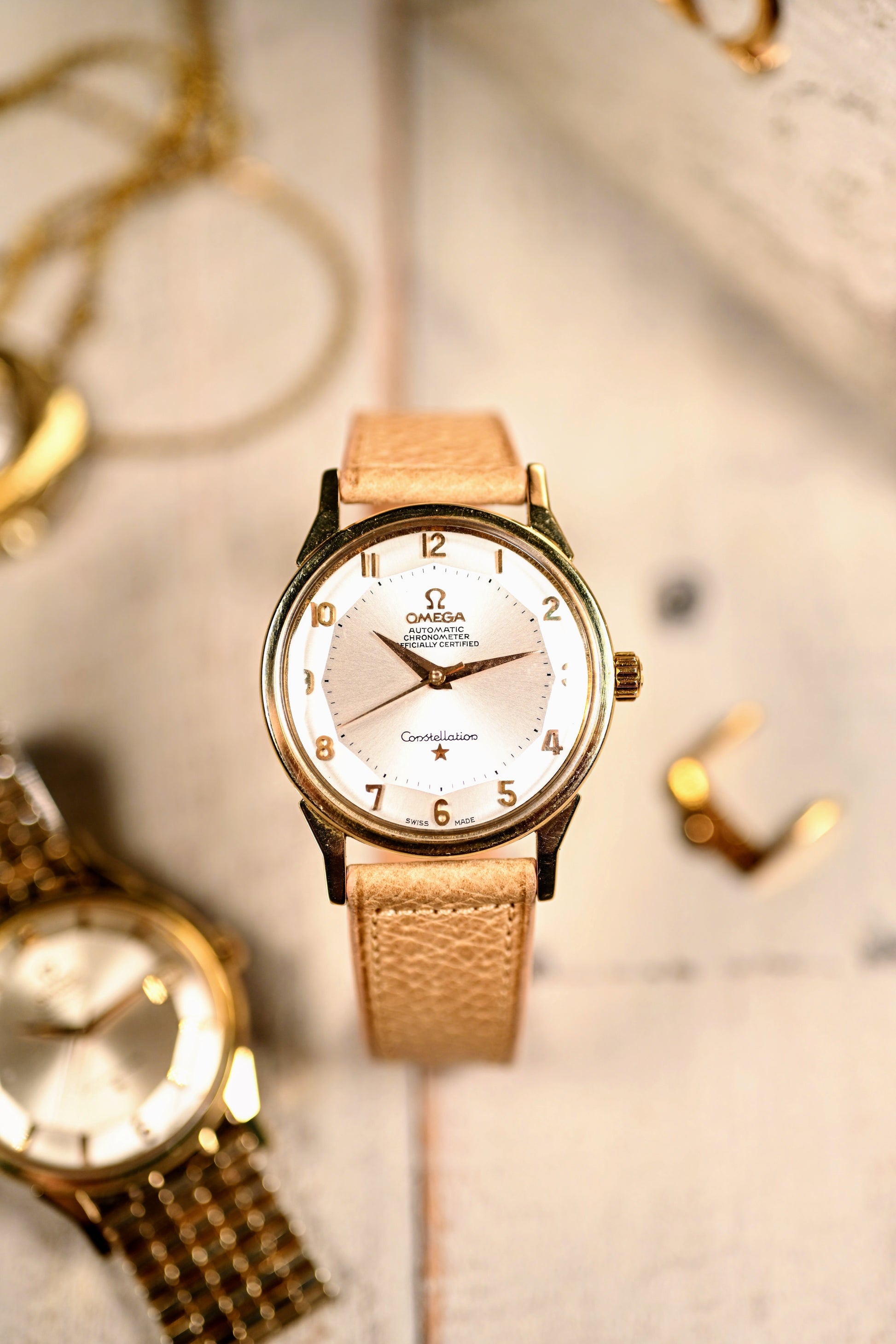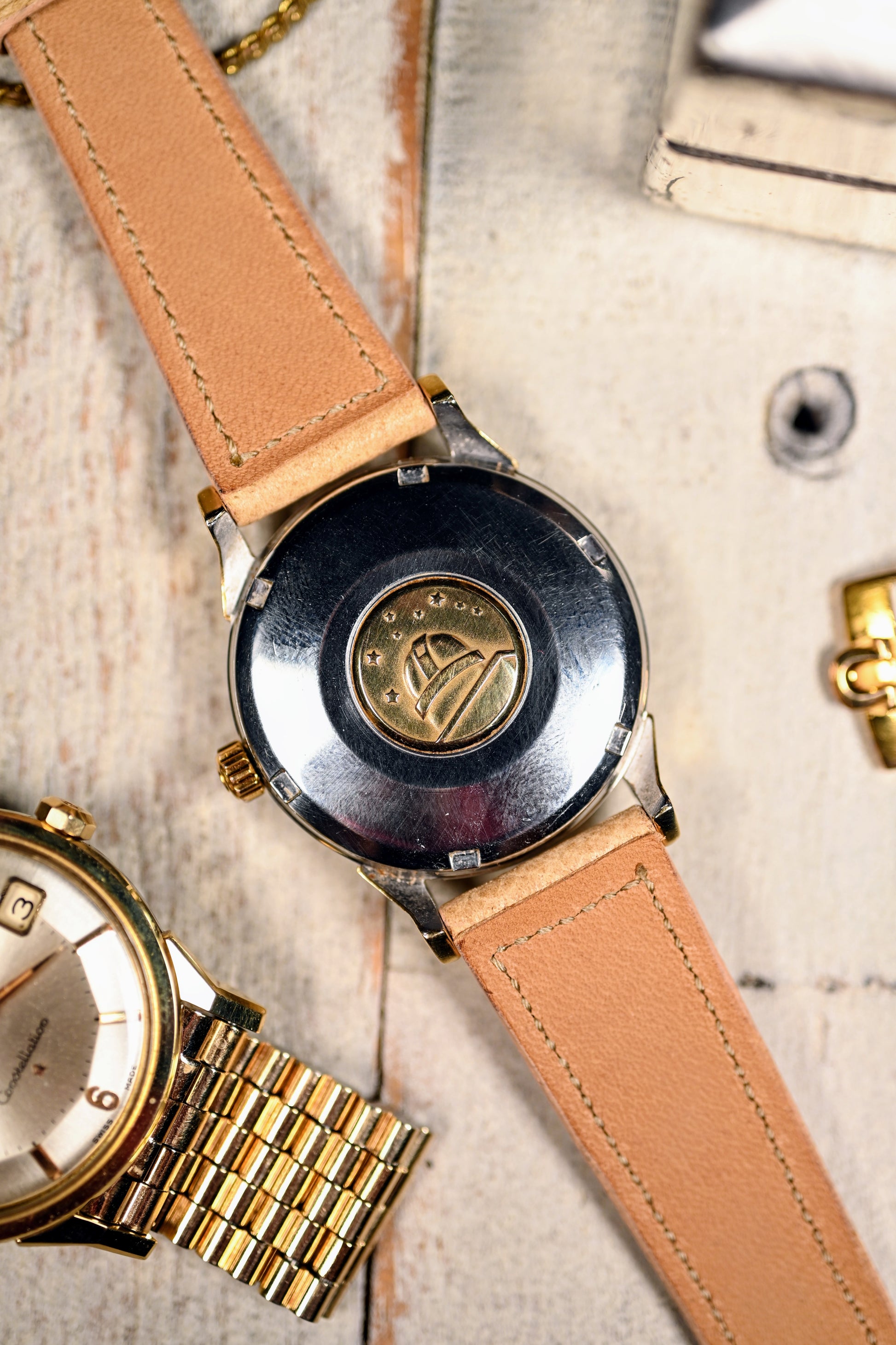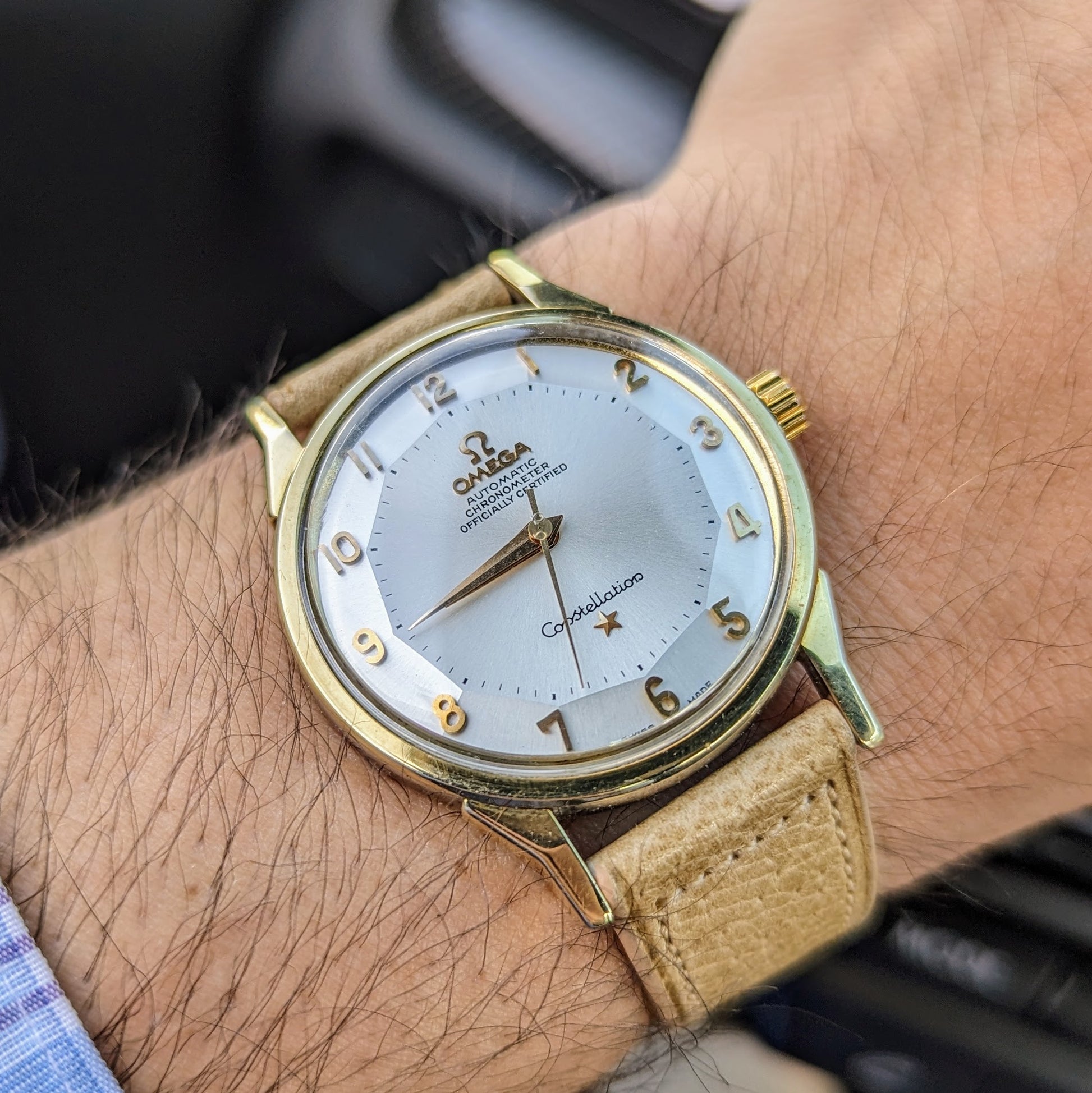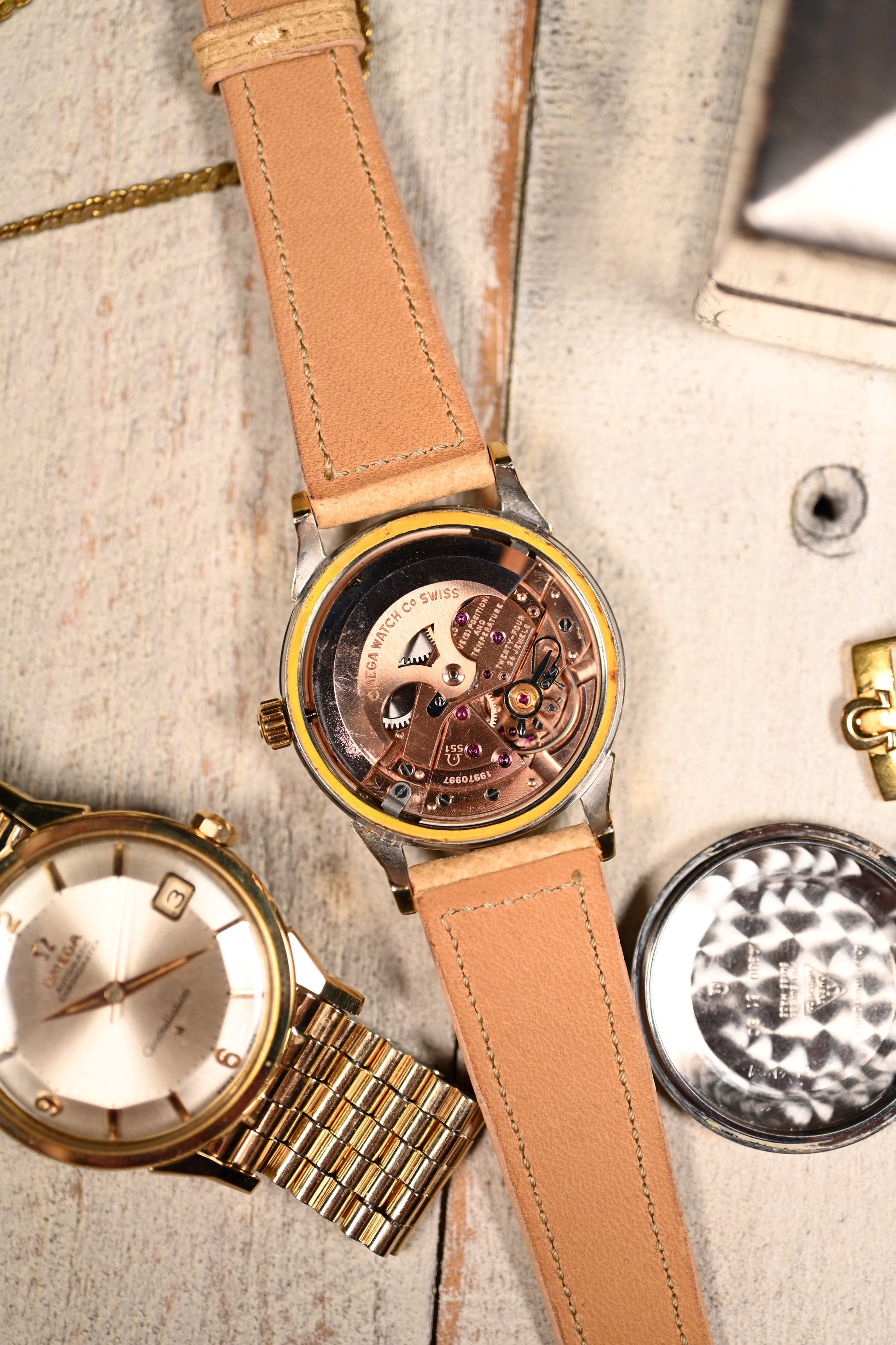 Omega introduced its “Constellation” line in the early 1950’s starting with the reference 2648. The Constellation was Omega’s top-of-the-line model, offering chronometre certified bumper automatic movements and a medallion on the caseback depicting an observatory with 8 stars - each of which represent the 8 records omega set Geneva observatory trials.