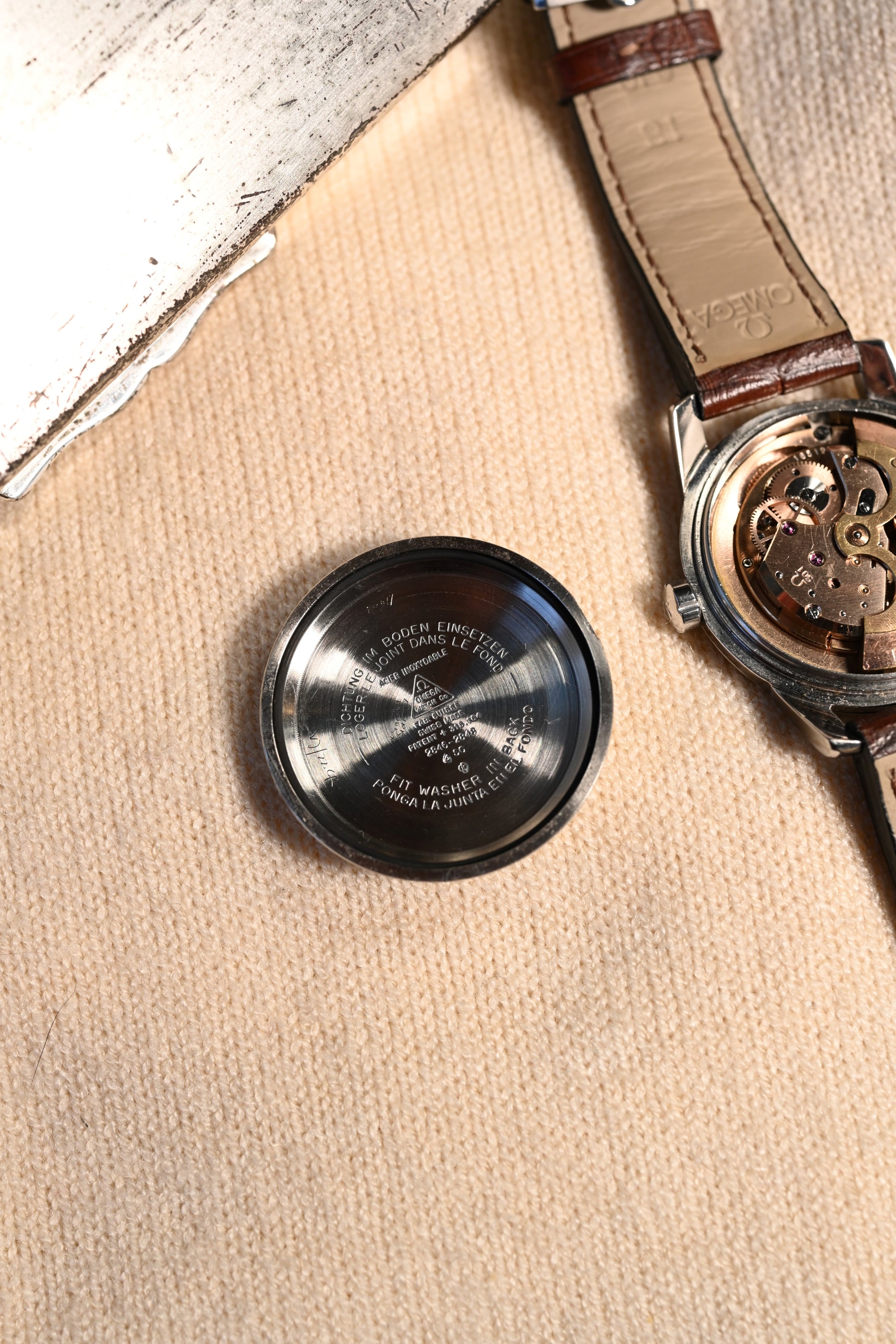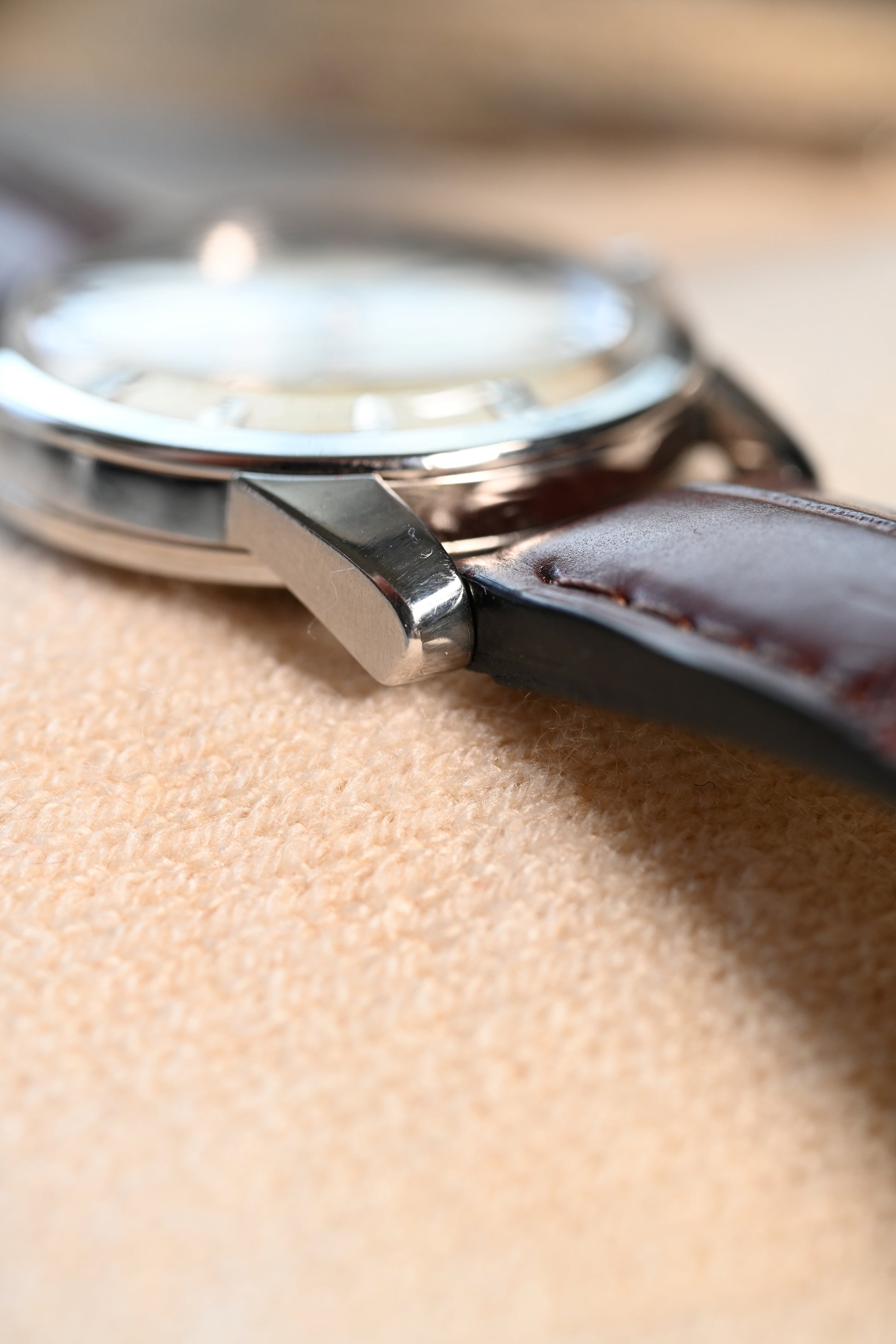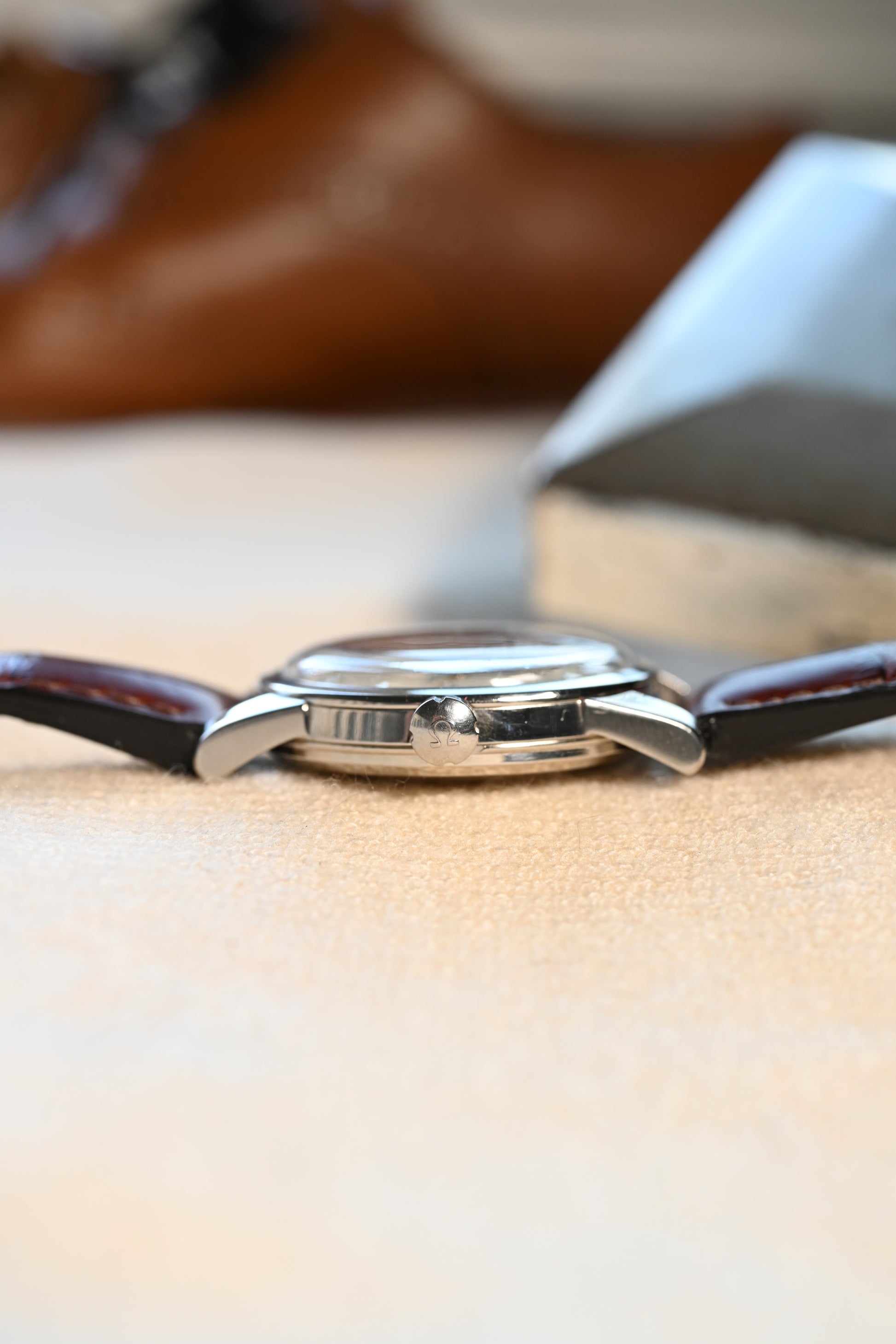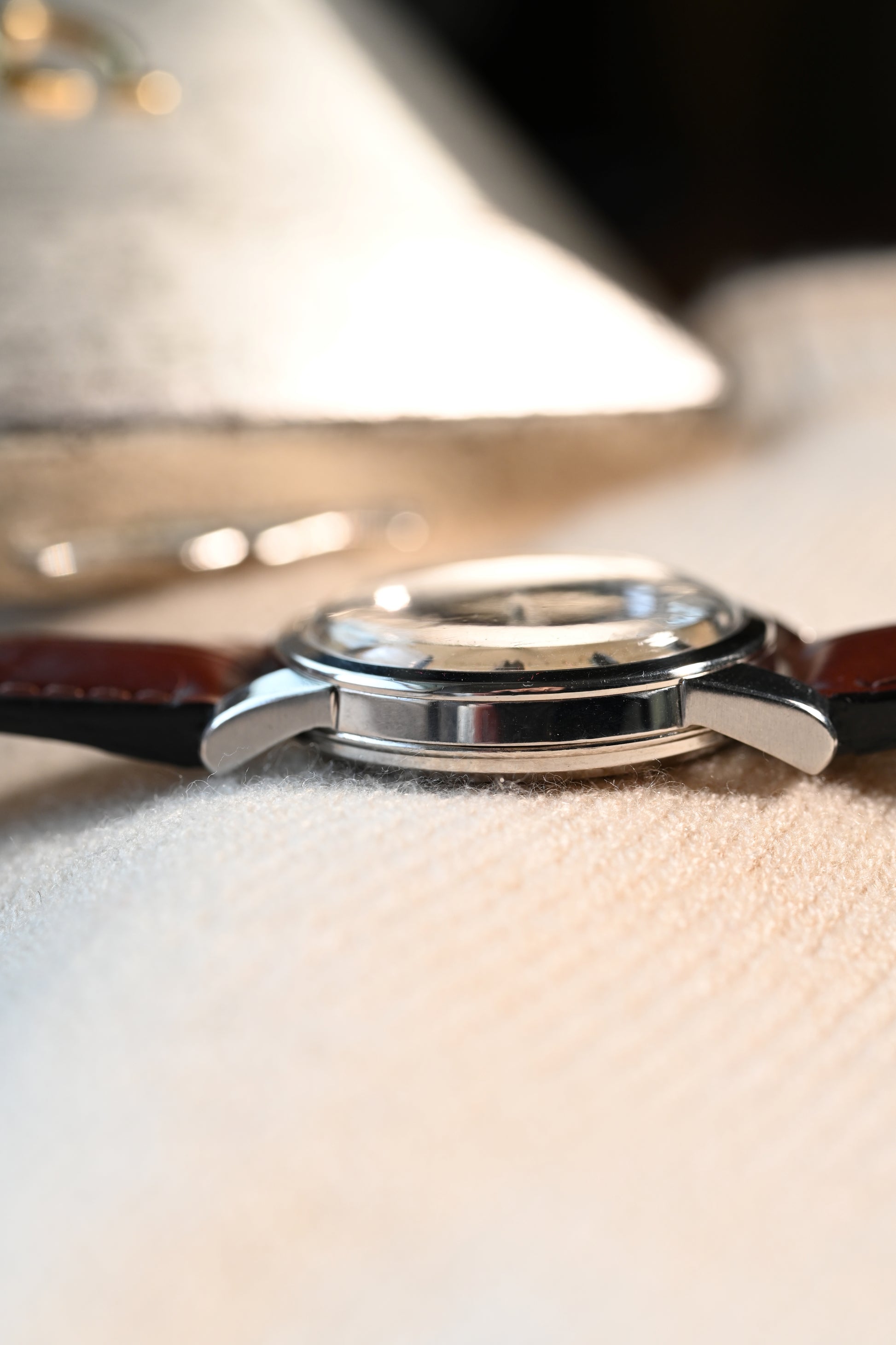 DIAL: An original silver dial with contrast brushing around the outer edge giving the watch a two tone appearance in certain lighting. The dial presents with even patina in the center while the outer edge remains relatively clean. The dial is a non-luminous variant and features coffin style hour markers with dauphine hands.